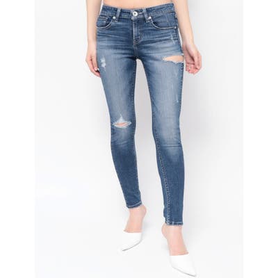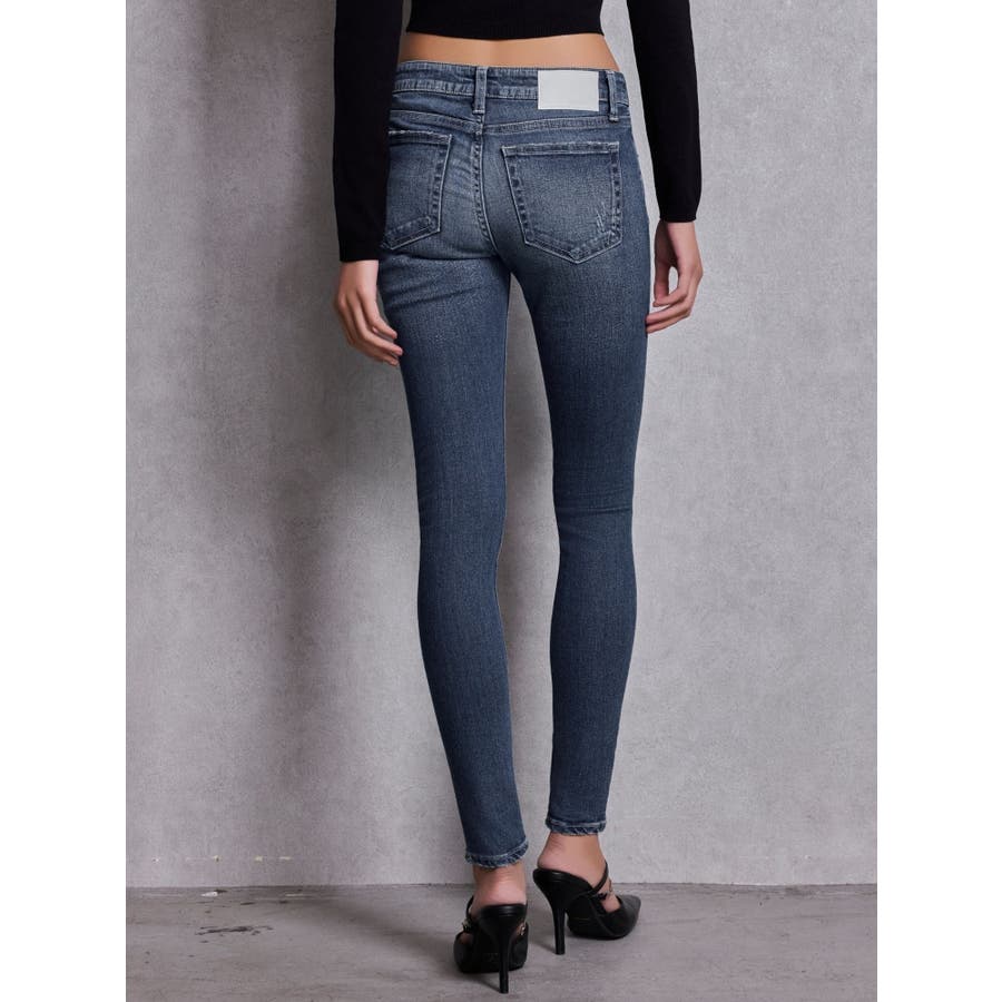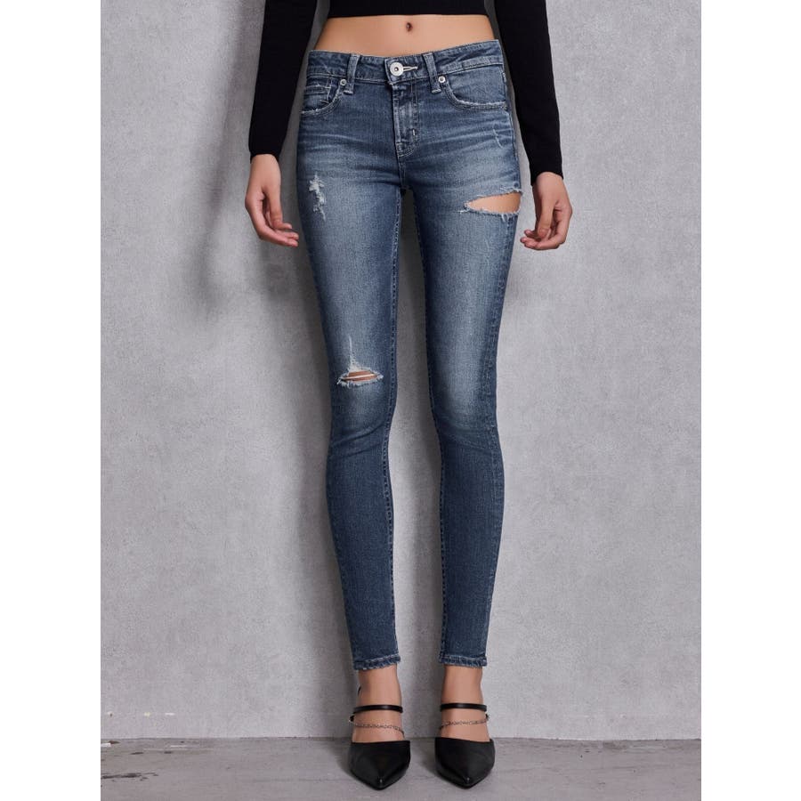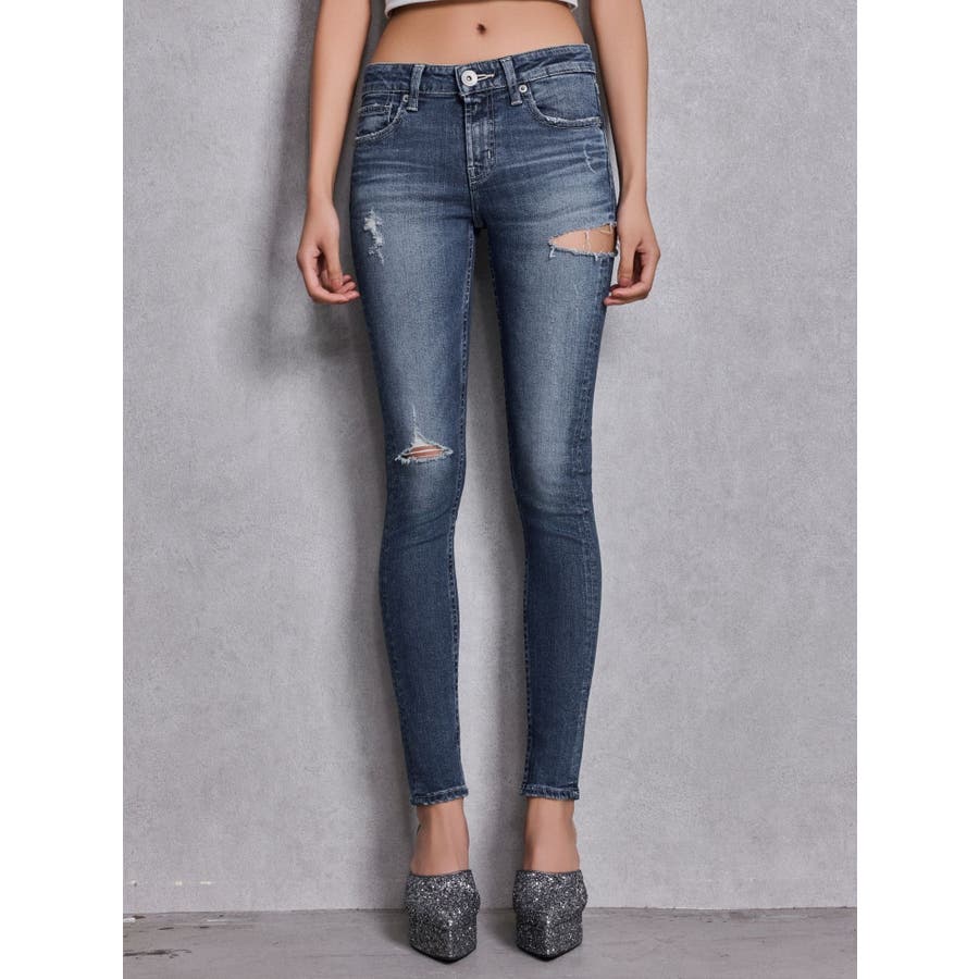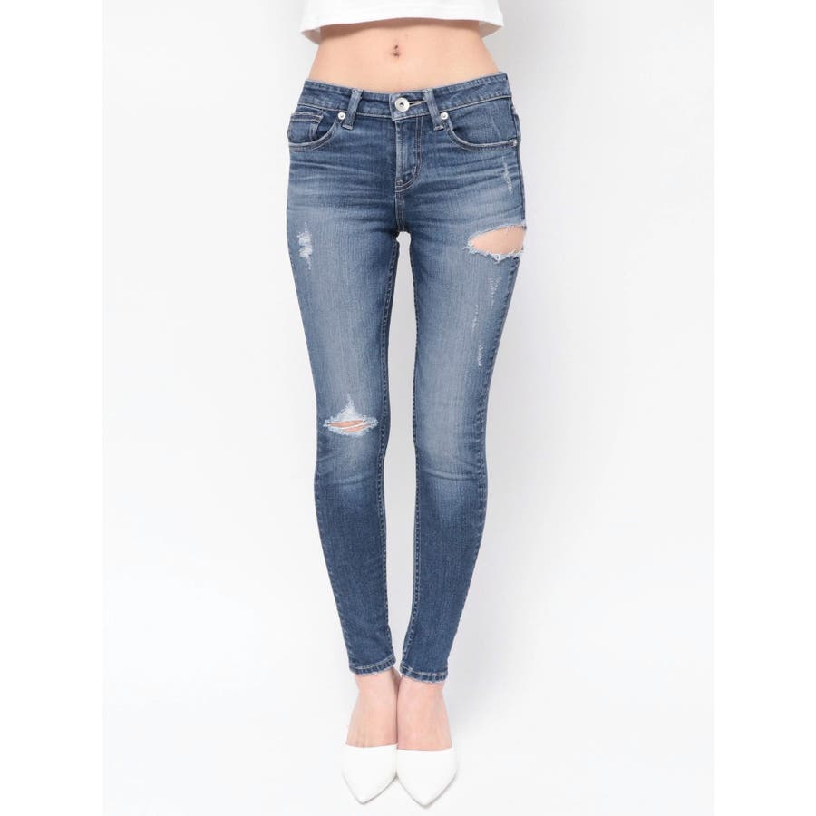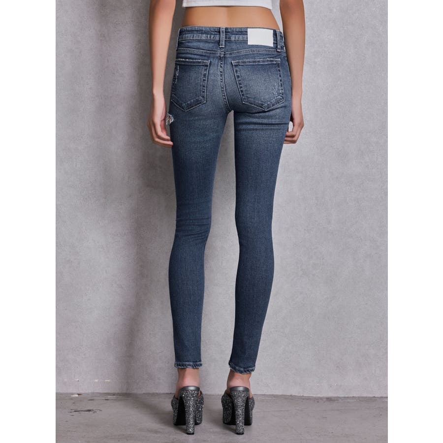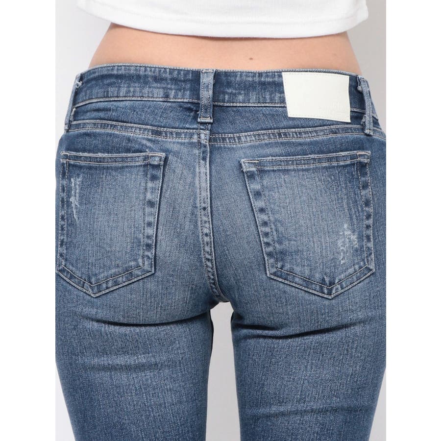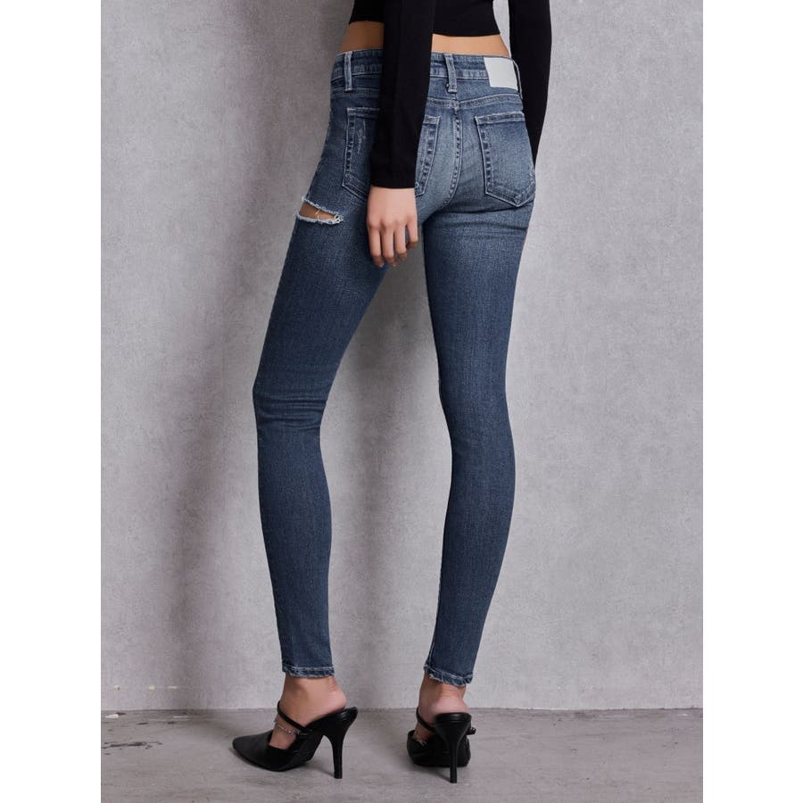 ジャストウエストSIDE RIPPEDスキニーデニムパンツ