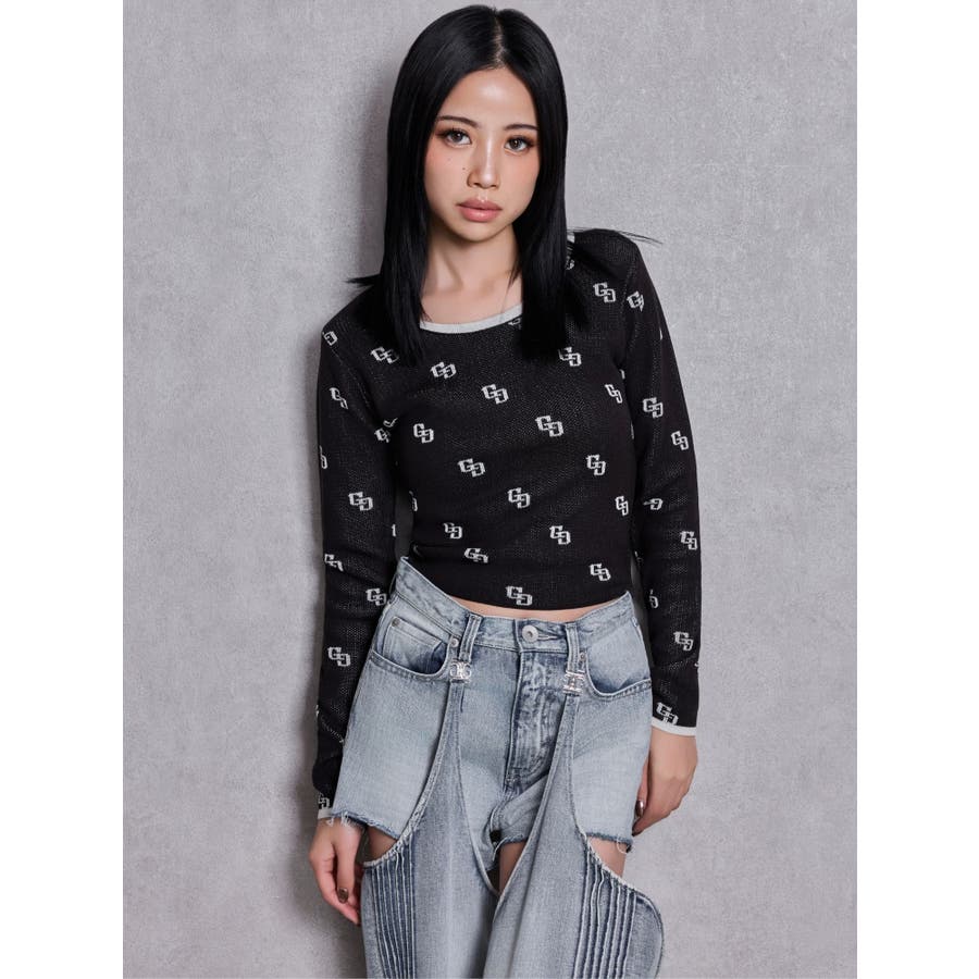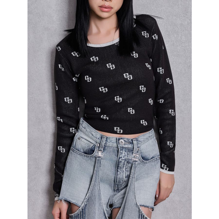 GG patternタイトニットトップス