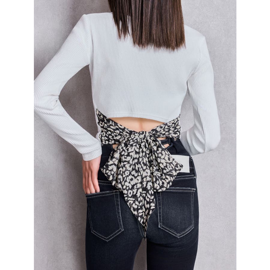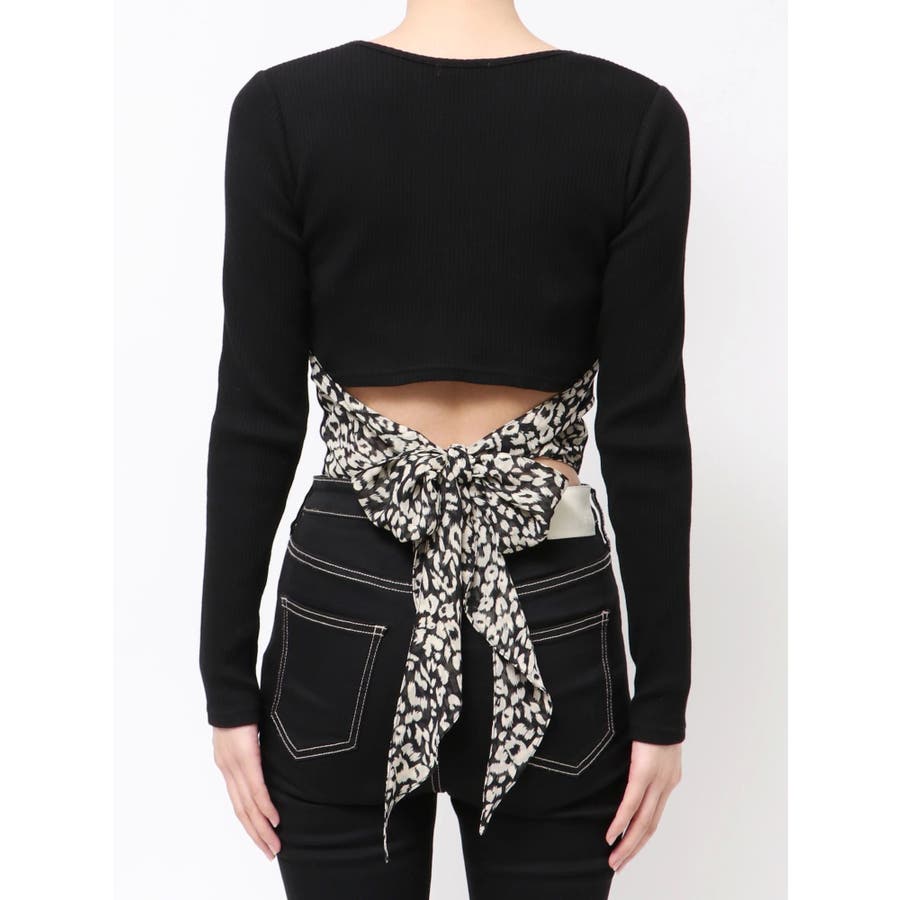 ■デザイン リブ素材のタイトシルエットの長袖です。 バックスタイルにはレオパード柄の、ボリュームが出るようにデザインしたリボンをつけています。 ■生地感 やや肉厚のリブ素材。 レオパードのリボンはシアー感のある素材。 ■スタイリング バックリボンがポイントなので、ボトムはシンプルなシルエットボトムがお勧めです。 ・・・・・・・・・・・・・・・・・・・・・・ 透け感:なし 伸縮性:あり 生地の厚さ:普通 サイズ感:細身 裏地:なし ポケット:なし ・・・・・・・・・・・・・・・・・・・・・・ ※着用画像はフラッシュの加減で実際の製品と色味等が異なる場合がございますので、 生地のズームアップ画像をご確認ください。 ※ご利用の端末画面の設定により実際の商品と色味が異なる場合がございます。 ■商品のお気に入り登録 再入荷通知やラスト1点、お得なプライスダウンの情報も受け取ることができます。 ぜひご登録ください◎