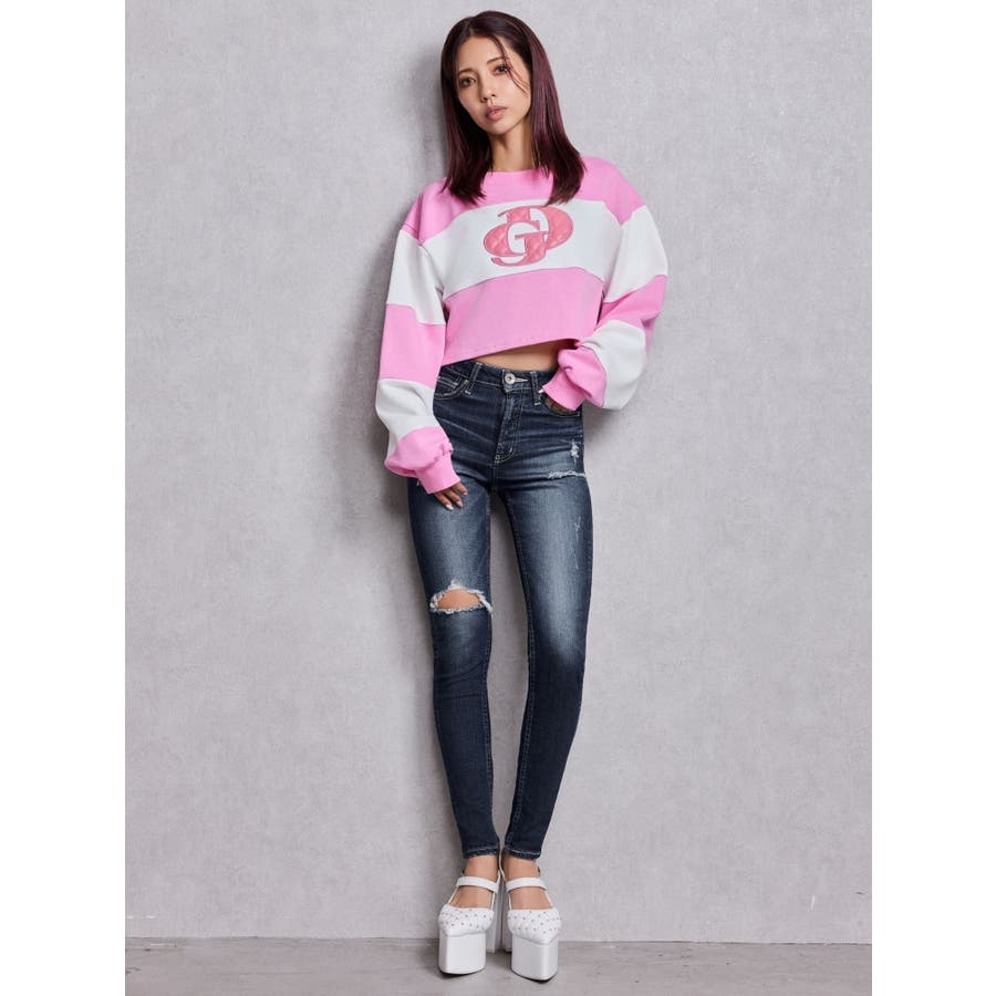 ■デザイン ボーダーデザインとGDのフェイクレザーパッチが特徴的なアイテム。 ゆるっとしたシルエットなので身体のシルエットをぼやかしてくれます。 明るいカラーのアイテムなので春になっても着用していただけるアイテムになっています。 ■スタイリング ハイウエストのスキニーに合わせるのがGYDAらしいですが、 ワイドパンツに合わせると一気にトレンド感がでておすすめです。 ■商品のお気に入り登録 再入荷通知やラスト1点、お得なプライスダウンの情報も受け取ることができます。 ぜひご登録ください◎ ・・・・・・・・・・・・・・・・・・・・・・ ※着用画像はフラッシュの加減で実際の製品と色味等が異なる場合がございますので、生地のズームアップ画像をご確認ください。 ※ご利用の端末画面の設定により実際の商品と色味が異なる場合がございます。