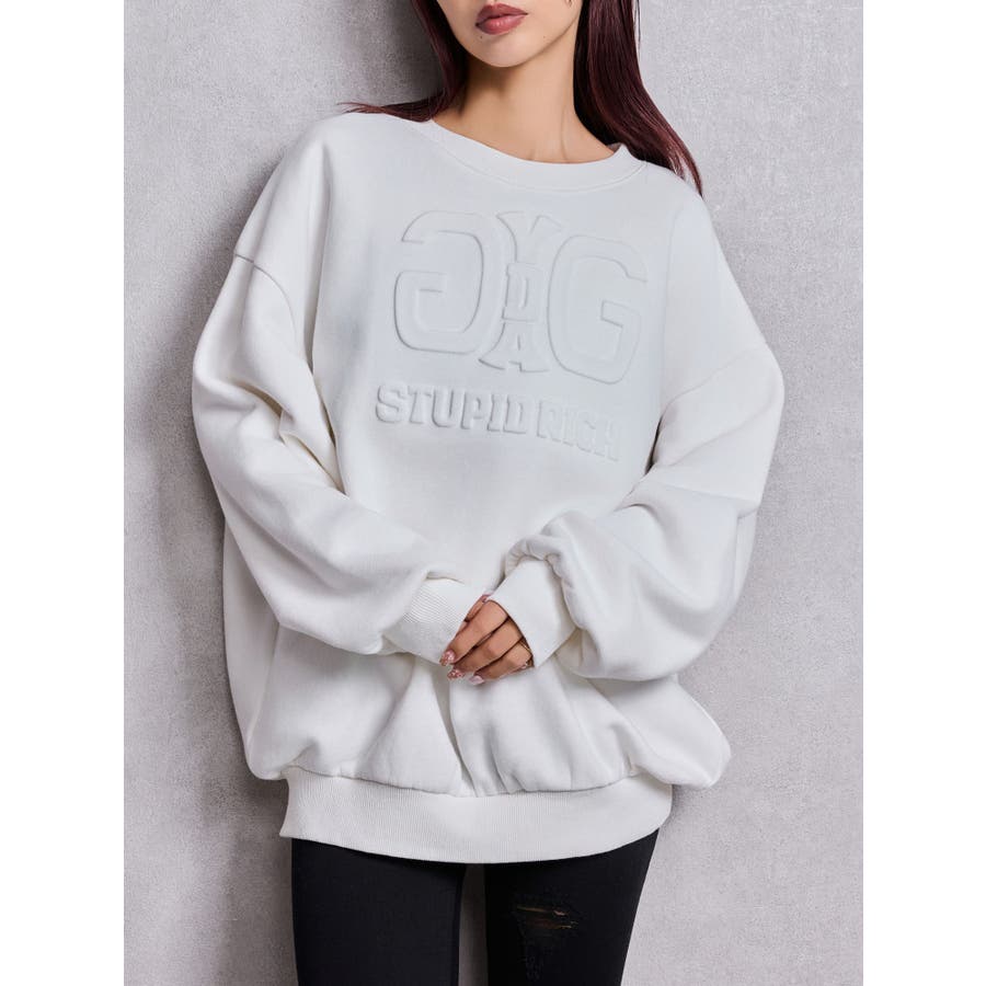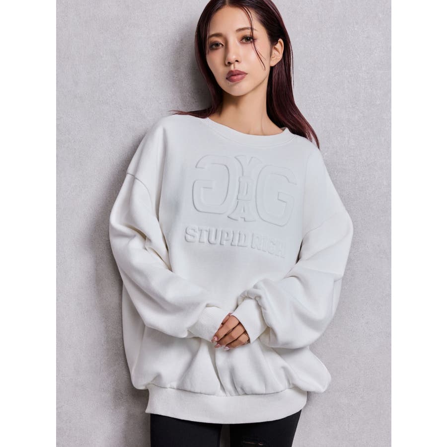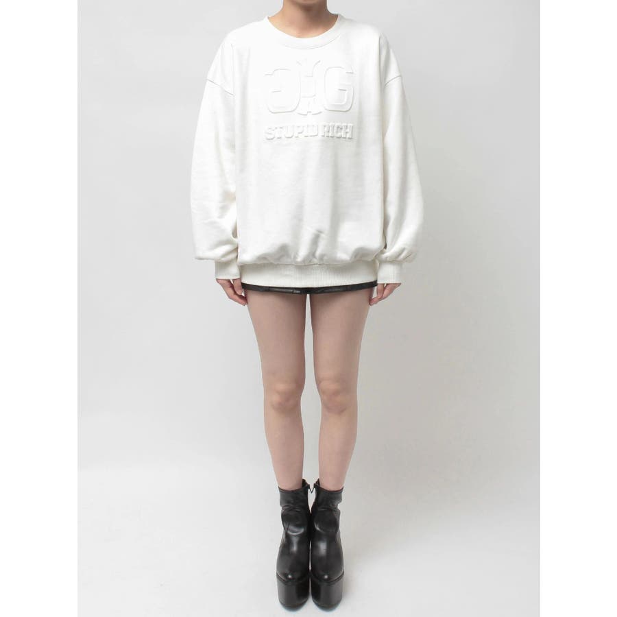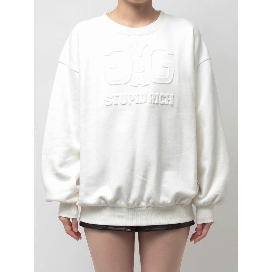 商品コメント: シンプルな程よいBIGサイズのトップスです。 オリジナルロゴが大きめでエンボス加工という凹凸のある表情感ある加工で目立ちすぎないのもポイント!! 飽きる事なく毎日のコーデに使い回せます。 コーデ: ミニボトムでメリハリの良いコーデがおすすめです。