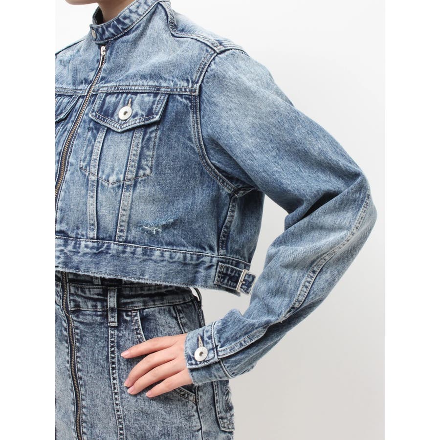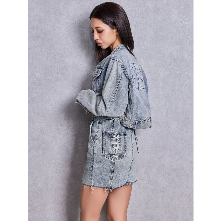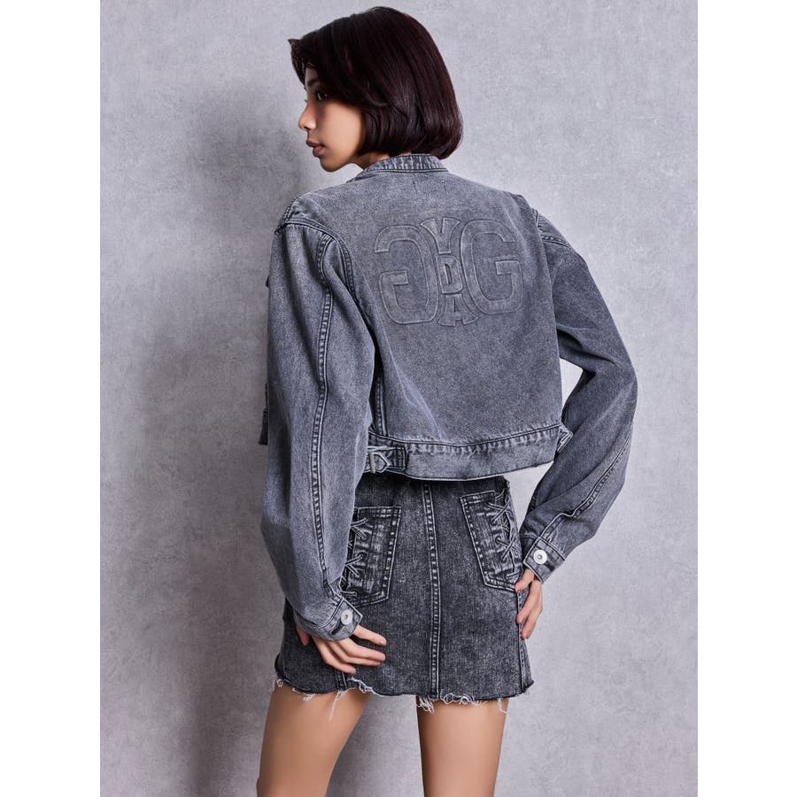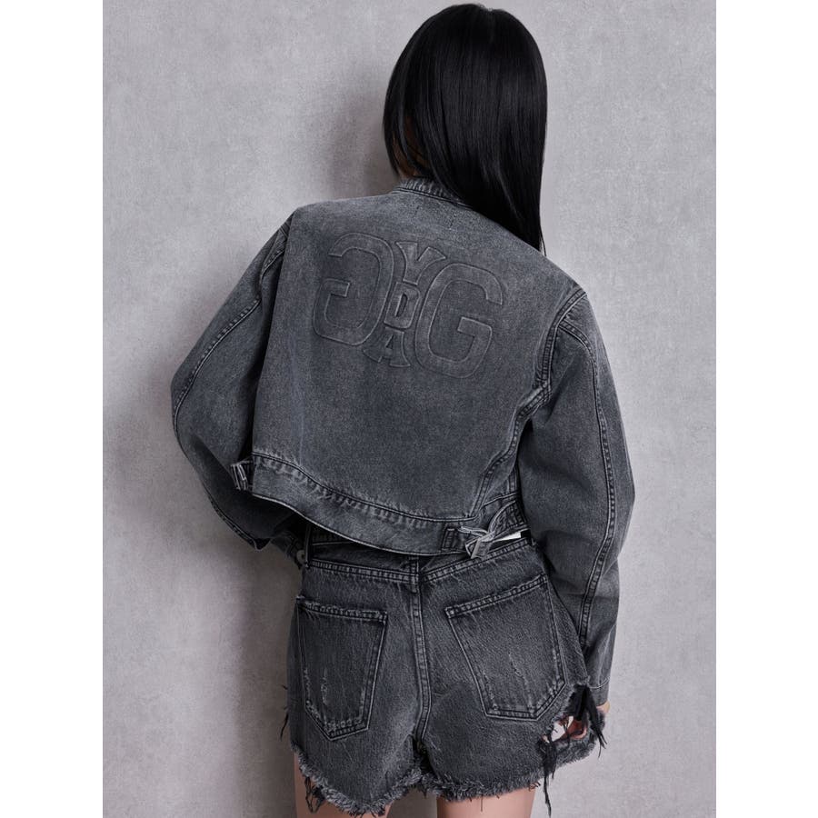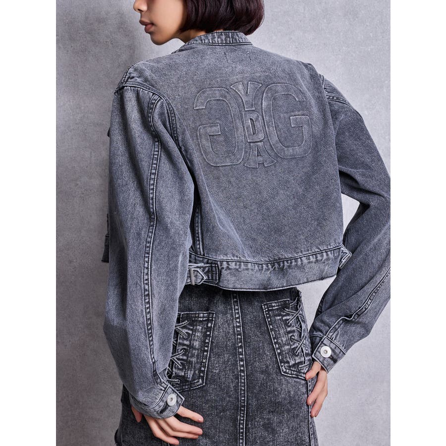 Symmery GYDA EMBOSSノーカラーデニムショートブルゾン