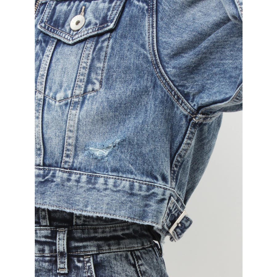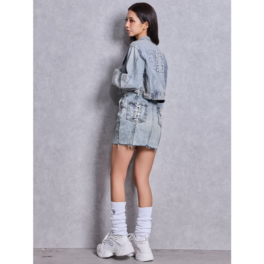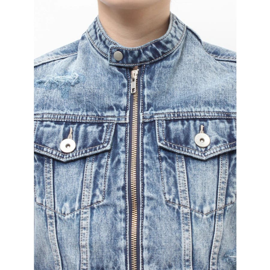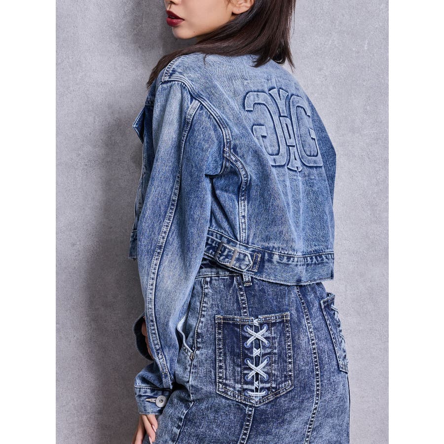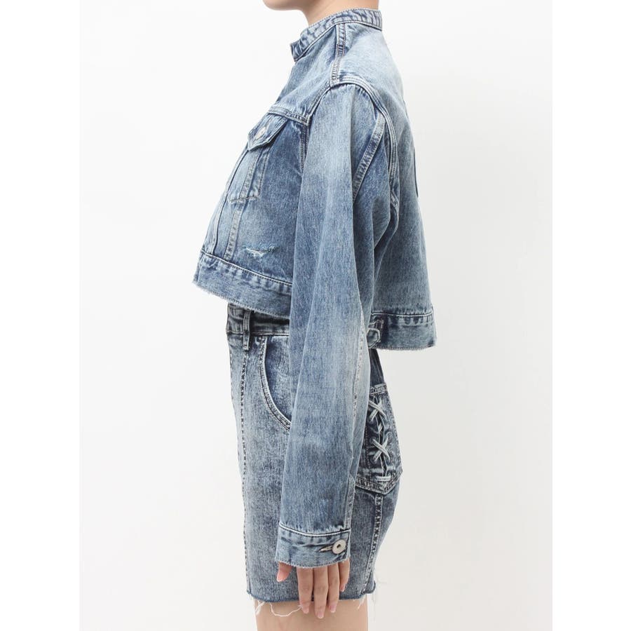 Symmery GYDA EMBOSSノーカラーデニムショートブルゾン