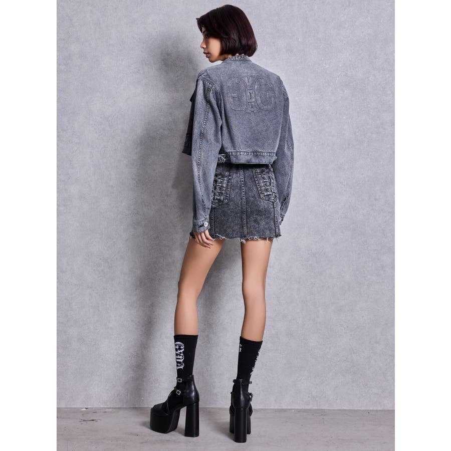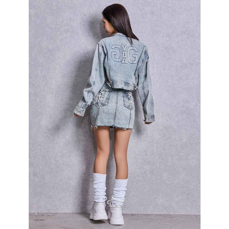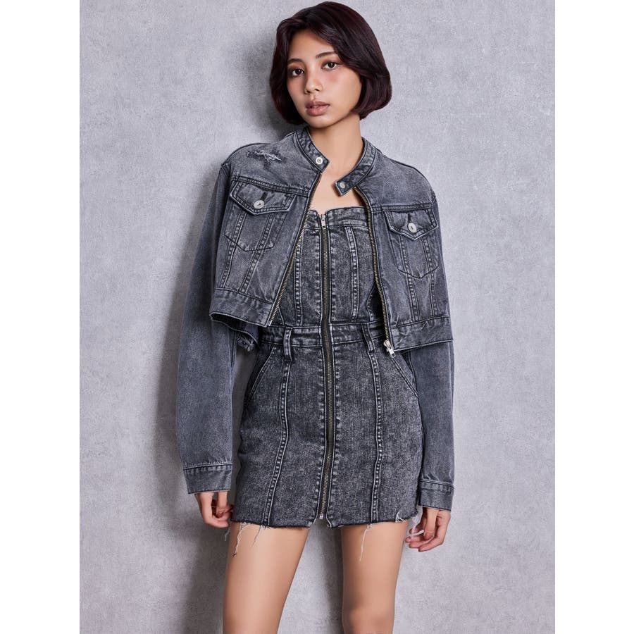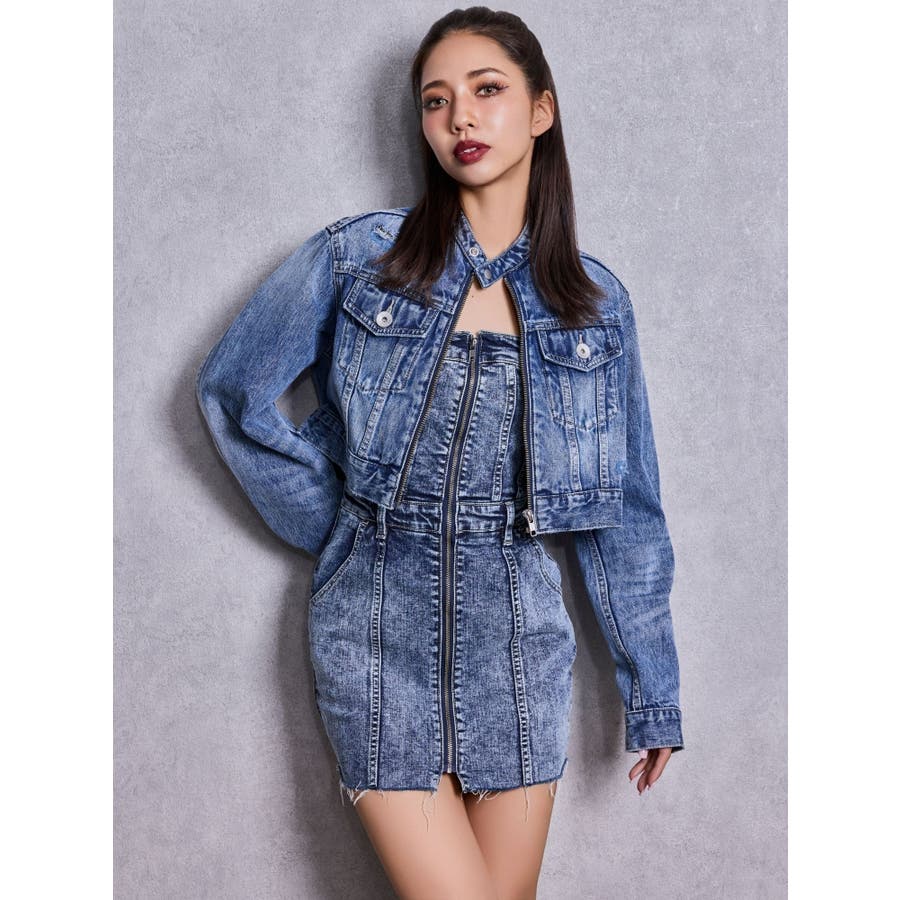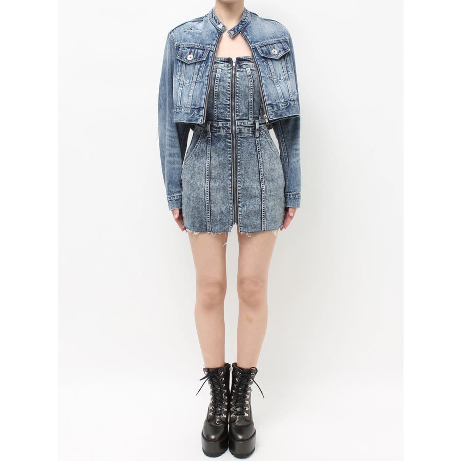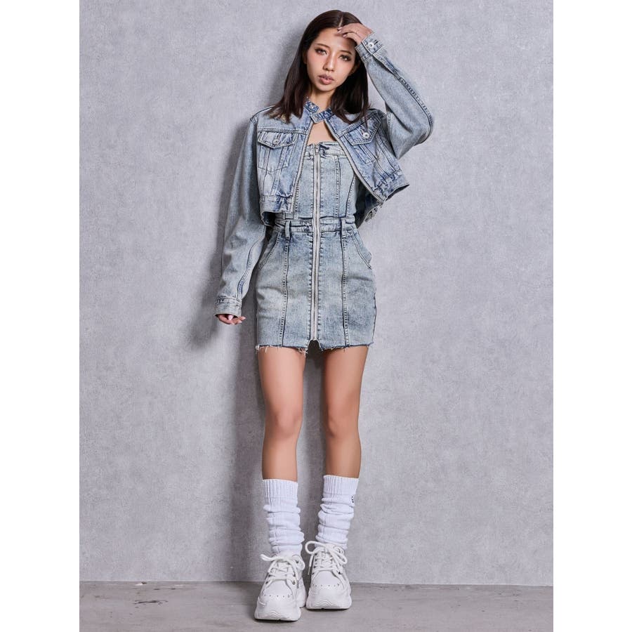 ■セットアップアイテムはこちら Symmetry GYDAフロントZIPスカートライクデニムタイトミニワンピース ■デザイン デニム素材に、ケミカル加工を施し、後ろに大きくSymmetry GYDAのエンボスでデザインしています。 GYDAでは珍しいノーカラーのバイカージャケットのようなシルエットで、すっきりしたショートタイトのボディーが特徴的な1着。 フロントファスナーで着脱もしやすいです。 ■スタイリング シリーズ展開しているデニムワンピース合わせがマスト。br> ハイウエストボトムなどとも相性抜群です。 ■商品のお気に入り登録 再入荷通知やラスト1点、お得なプライスダウンの情報も受け取ることができます。 ぜひご登録ください◎ ・・・・・・・・・・・・・・・・・・・・・・ ※着用画像はフラッシュの加減で実際の製品と色味等が異なる場合がございますので、生地のズームアップ画像をご確認ください。 ※ご利用の端末画面の設定により実際の商品と色味が異なる場合がございます。