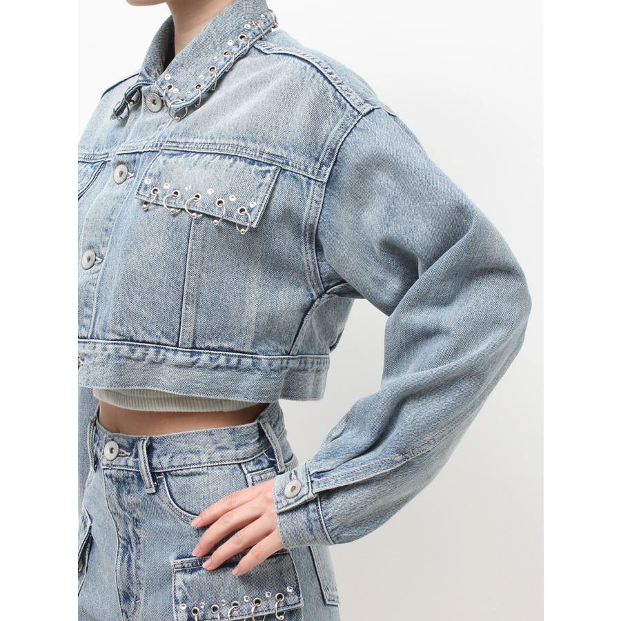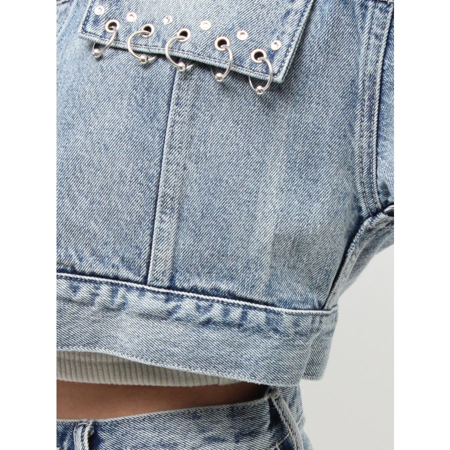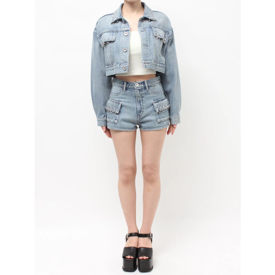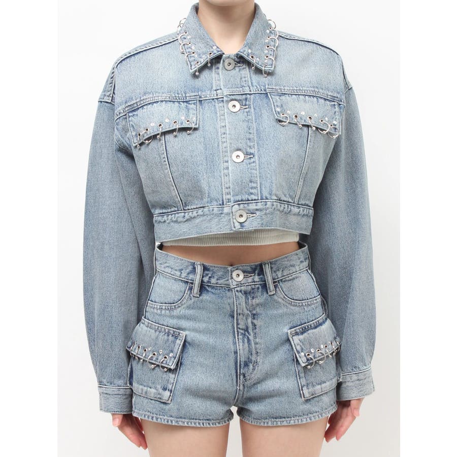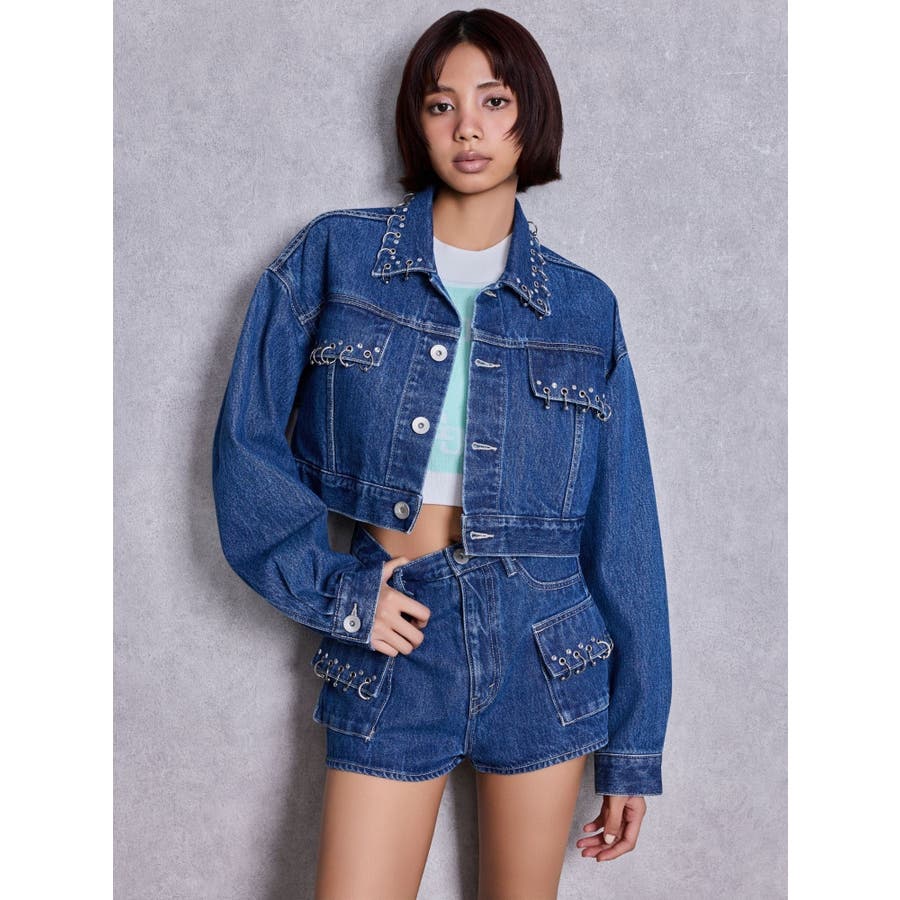 ■セットアップアイテムはこちら ring bijou studsデザインデニムショートパンツ ■デザイン トレンドのショート丈でスタイルアップを叶えるデニムジャケット。 シルバーのリングとビジュースタッズデザインがエッジィで、ストリートなムードをプラスしてくれる1着です。 ■スタイリング インナーをチラ見せして、抜け感あるコーデを楽しむのがおすすめ。 セットアップで着こなせば、一気に旬顔スタイルが完成。 ■商品のお気に入り登録 再入荷通知やラスト1点、お得なプライスダウンの情報も受け取ることができます。 ぜひご登録ください◎ ・・・・・・・・・・・・・・・・・・・・・・ ※着用画像はフラッシュの加減で実際の製品と色味等が異なる場合がございますので、生地のズームアップ画像をご確認ください。 ※ご利用の端末画面の設定により実際の商品と色味が異なる場合がございます。