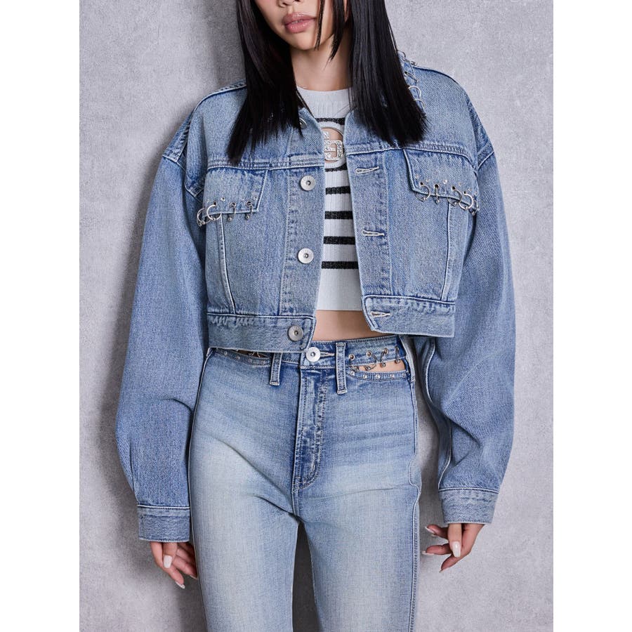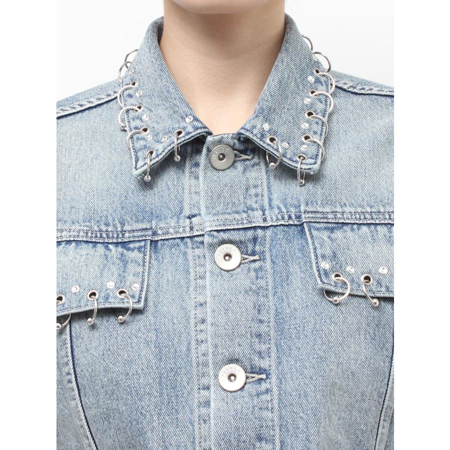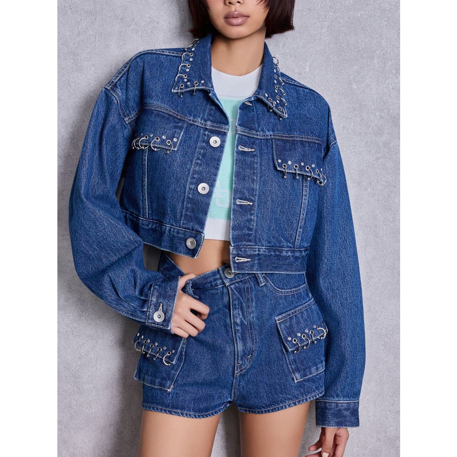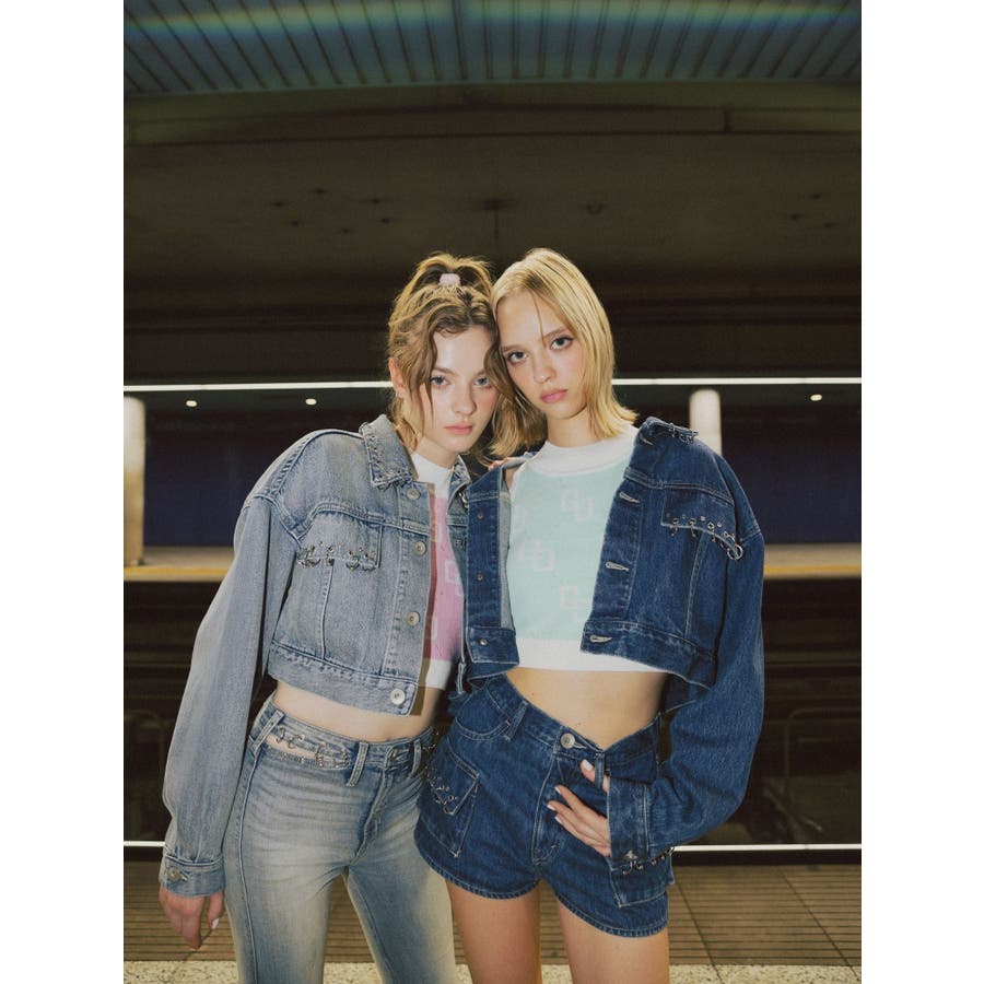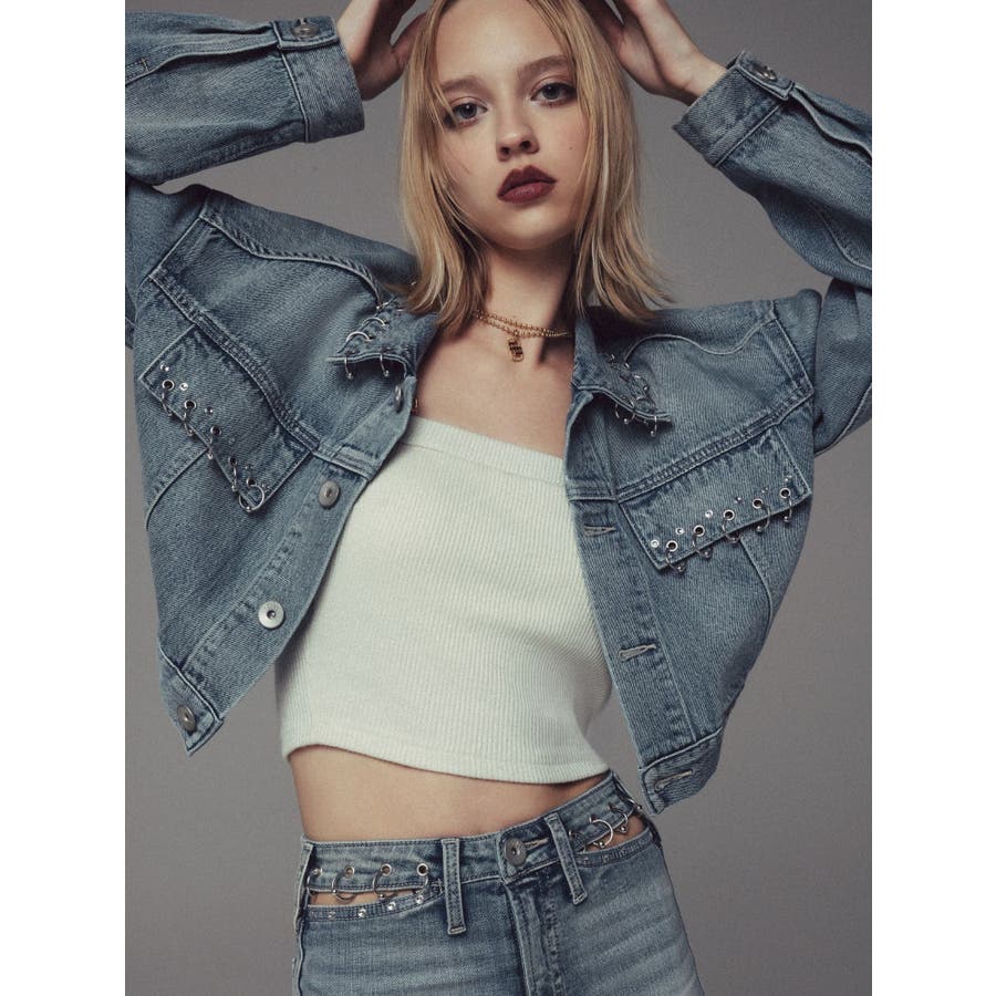■セットアップアイテムはこちら ring bijou studsデザインデニムショートパンツ ■デザイン トレンドのショート丈でスタイルアップを叶えるデニムジャケット。 シルバーのリングとビジュースタッズデザインがエッジィで、ストリートなムードをプラスしてくれる1着です。 ■スタイリング インナーをチラ見せして、抜け感あるコーデを楽しむのがおすすめ。 セットアップで着こなせば、一気に旬顔スタイルが完成。 ■商品のお気に入り登録 再入荷通知やラスト1点、お得なプライスダウンの情報も受け取ることができます。 ぜひご登録ください◎ ・・・・・・・・・・・・・・・・・・・・・・ ※着用画像はフラッシュの加減で実際の製品と色味等が異なる場合がございますので、生地のズームアップ画像をご確認ください。 ※ご利用の端末画面の設定により実際の商品と色味が異なる場合がございます。