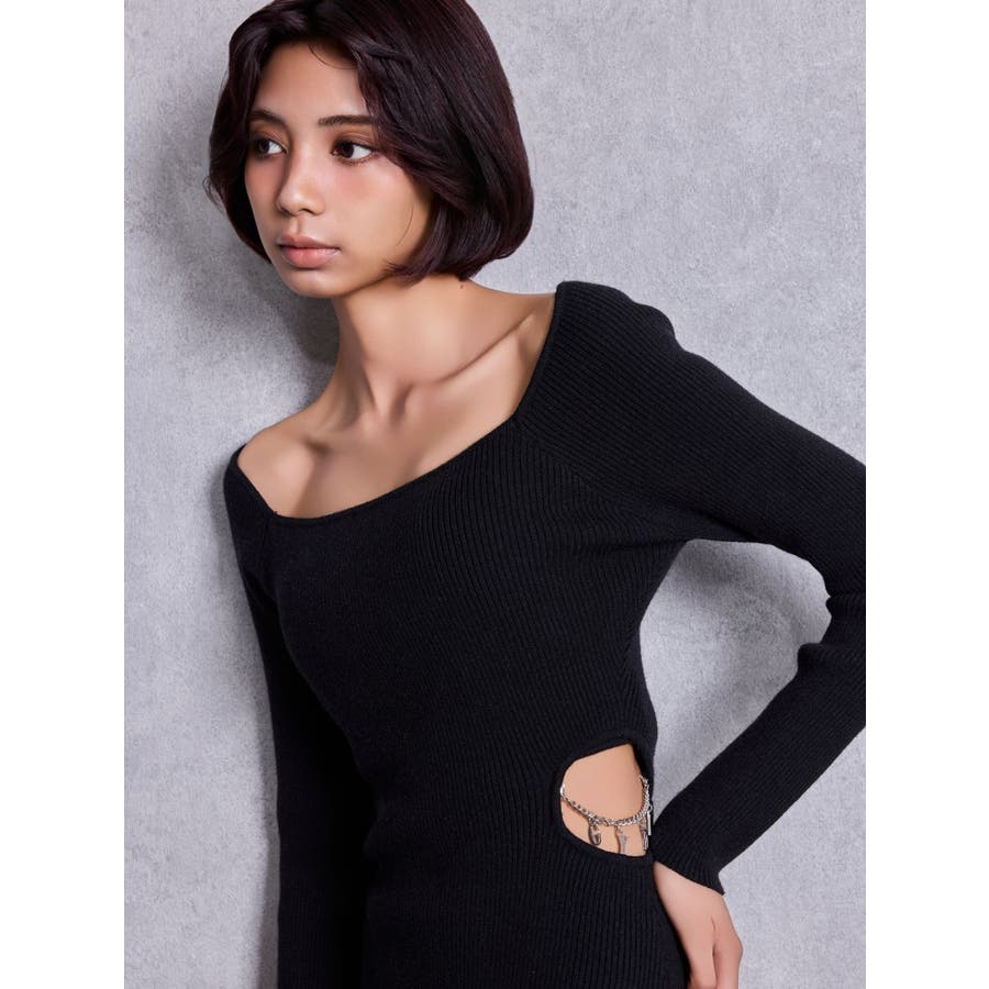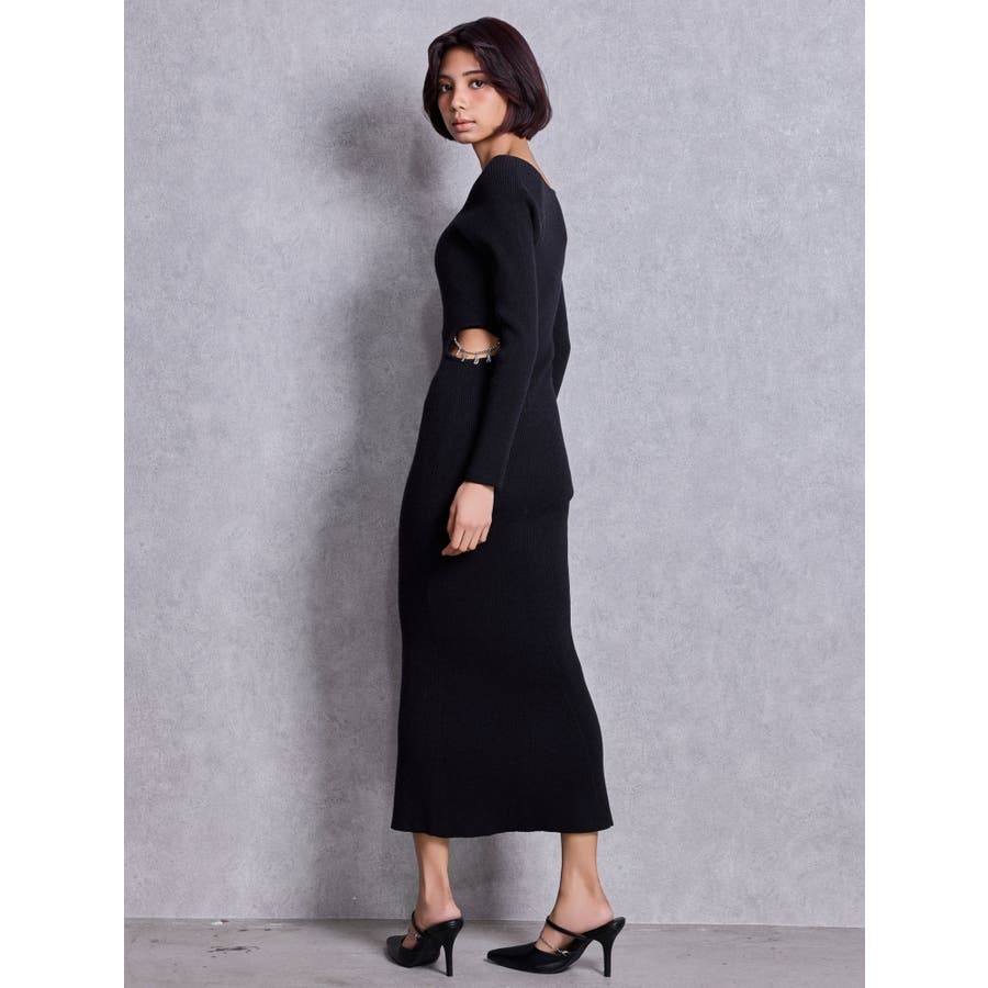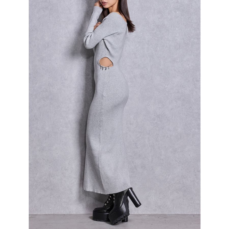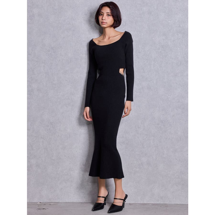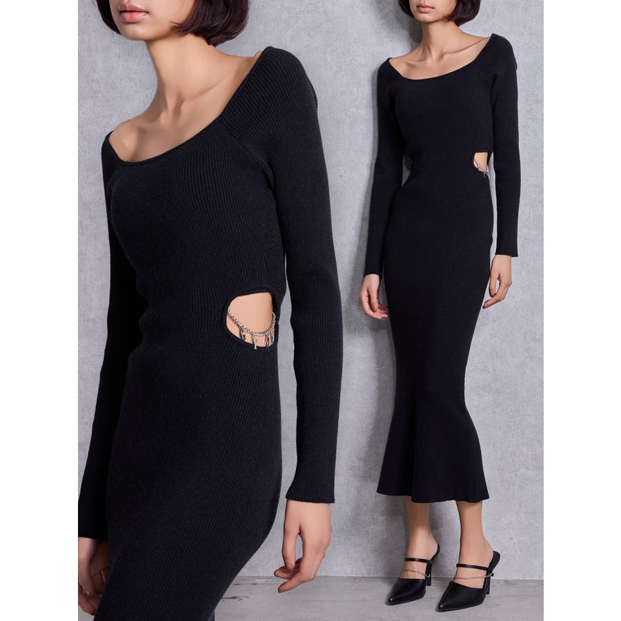 GYDA chain SIDE OPENロングフレアニットワンピース