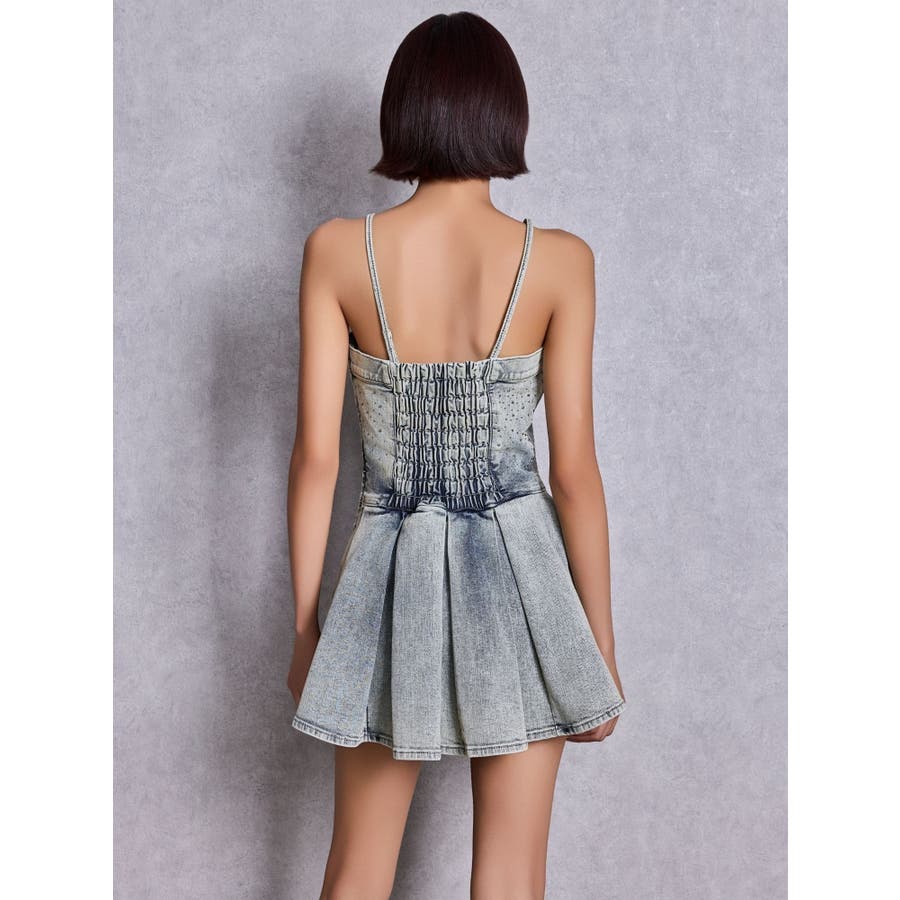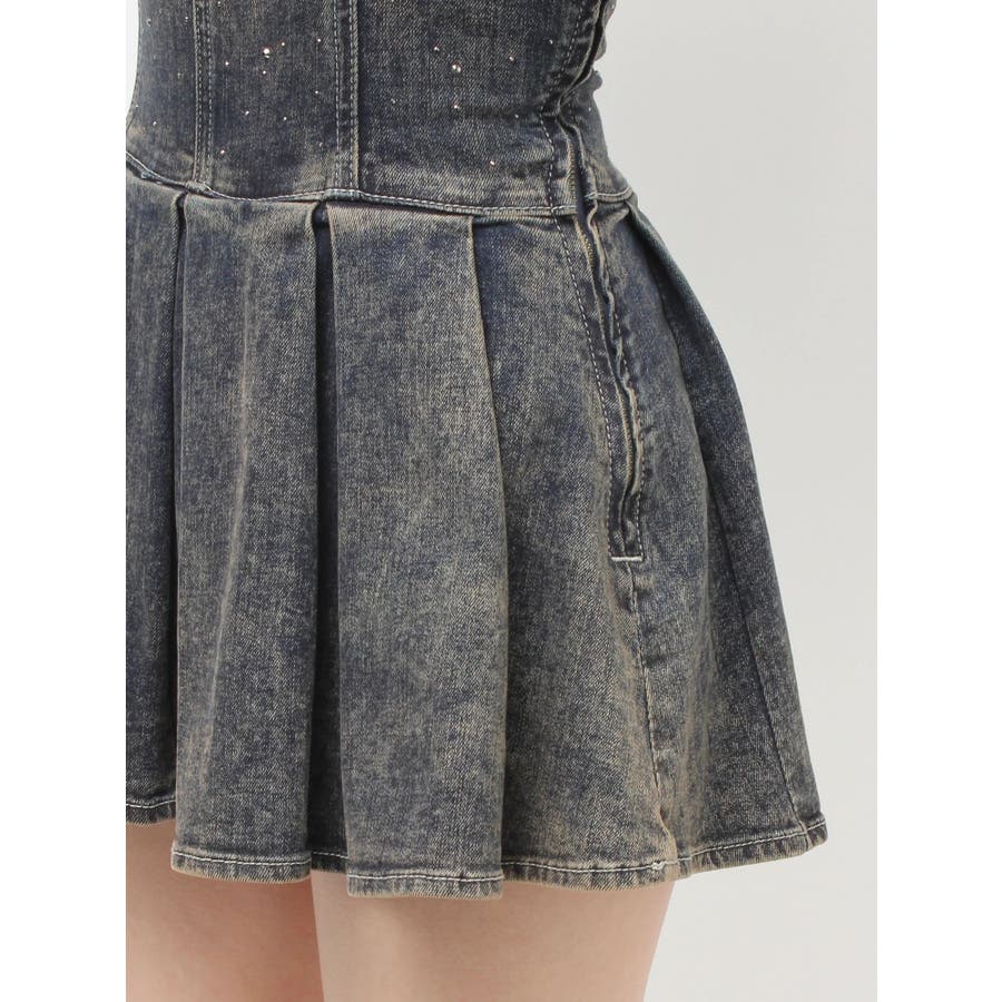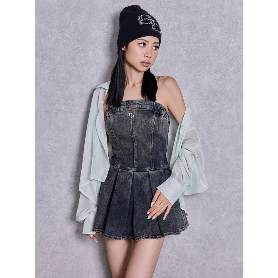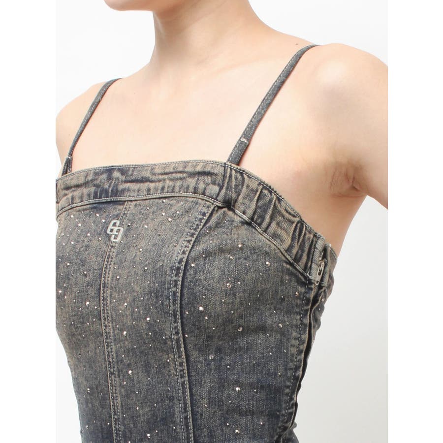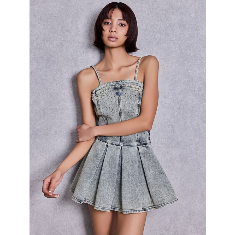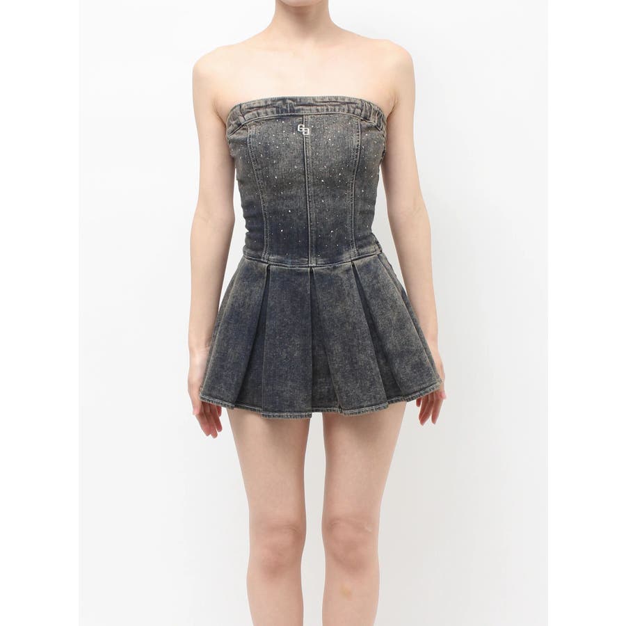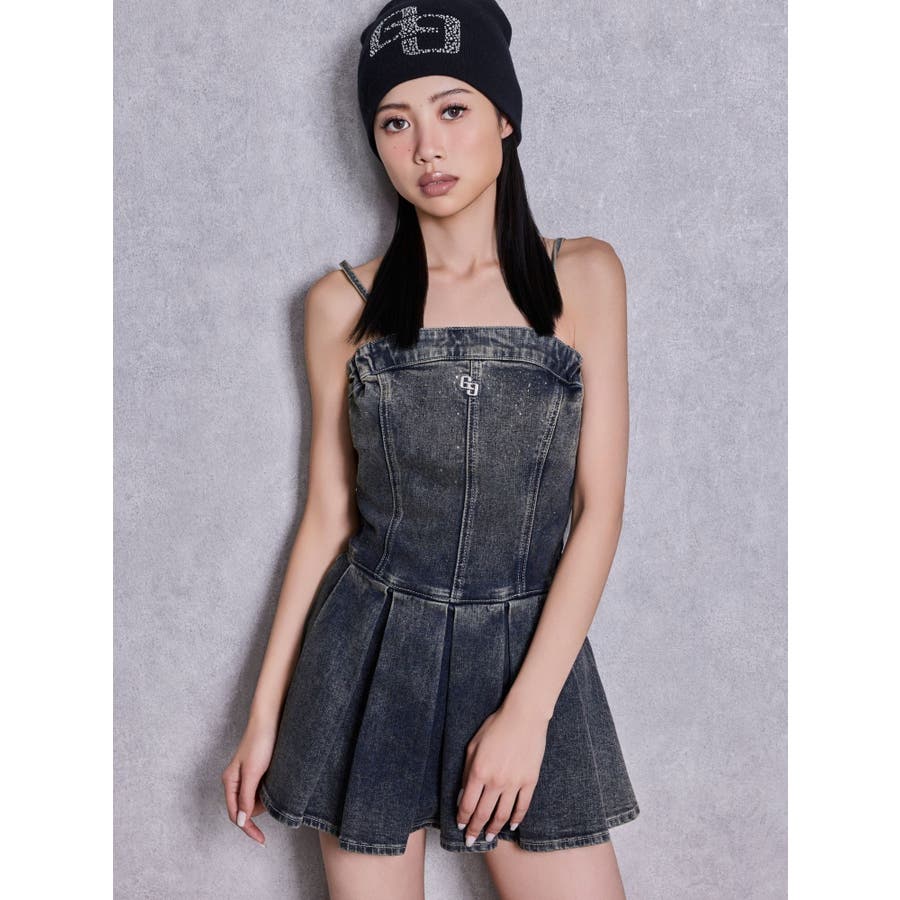 ■デザイン 上身にビジューを施し、フロントにGG刺繍入りのデザイン、 ボトム部分はプリーツ加工を施し、1枚で完成されるデニムワンピースアイテム。 後ろ身はシャーリングで胸元の安定感や、着脱しやすいサイドファスナー仕様。 肩紐取り外しもでき◎ インナーショーツ付きでミニ丈でも安心して着用して頂けます。 ■スタイリング シアーシャツの羽織合わせがおススメです。 ■商品のお気に入り登録 再入荷通知やラスト1点、お得なプライスダウンの情報も受け取ることができます。 ぜひご登録ください◎ ・・・・・・・・・・・・・・・・・・・・・・ ※着用画像はフラッシュの加減で実際の製品と色味等が異なる場合がございますので、生地のズームアップ画像をご確認ください。 ※ご利用の端末画面の設定により実際の商品と色味が異なる場合がございます。