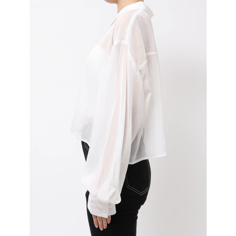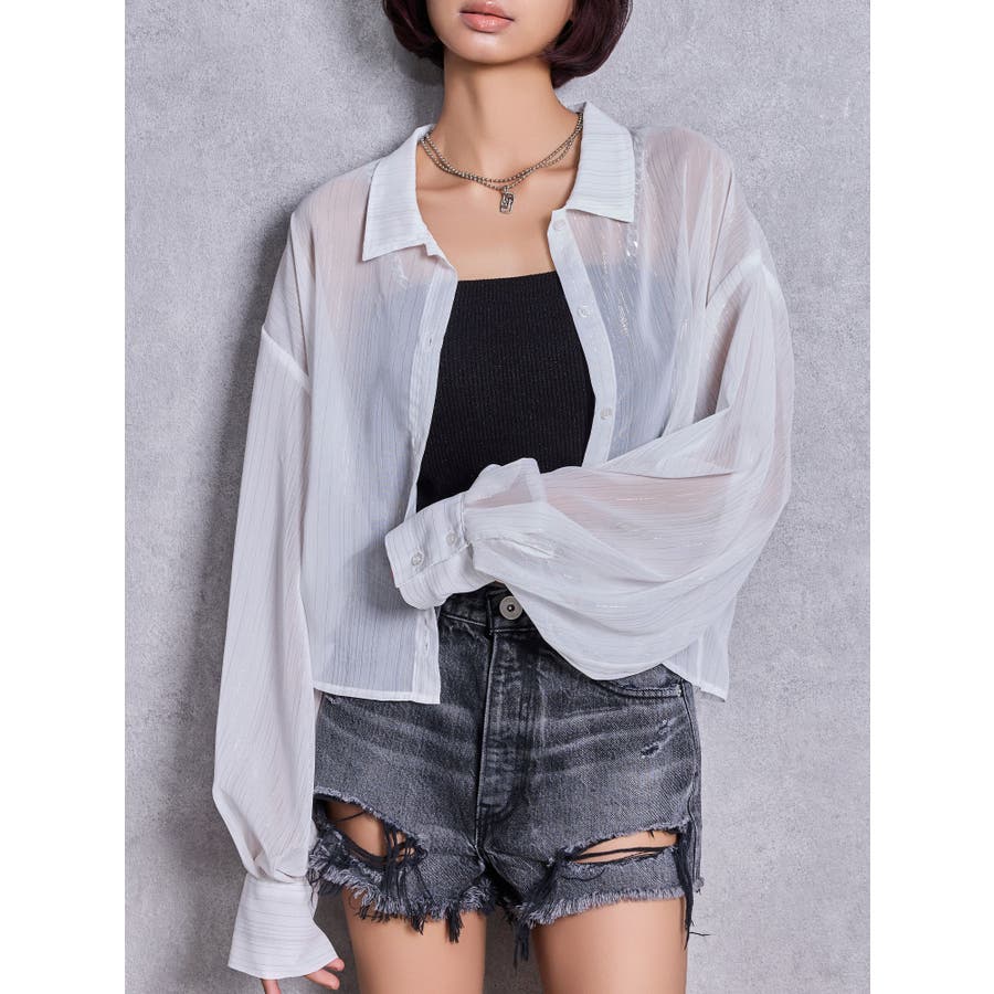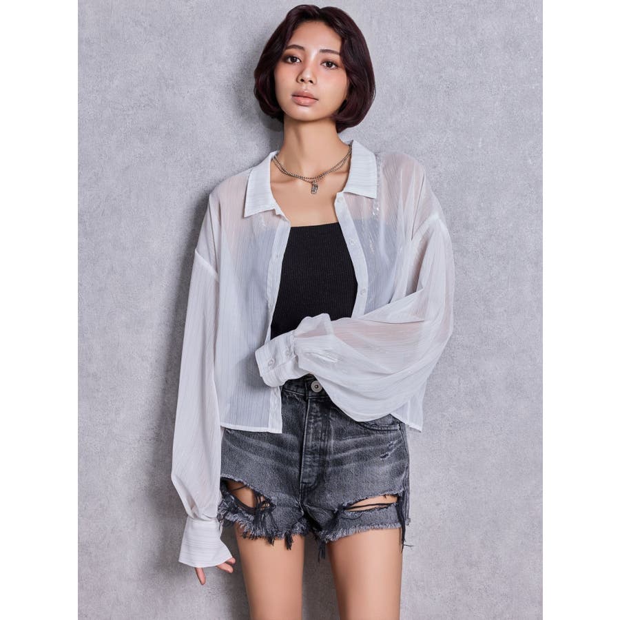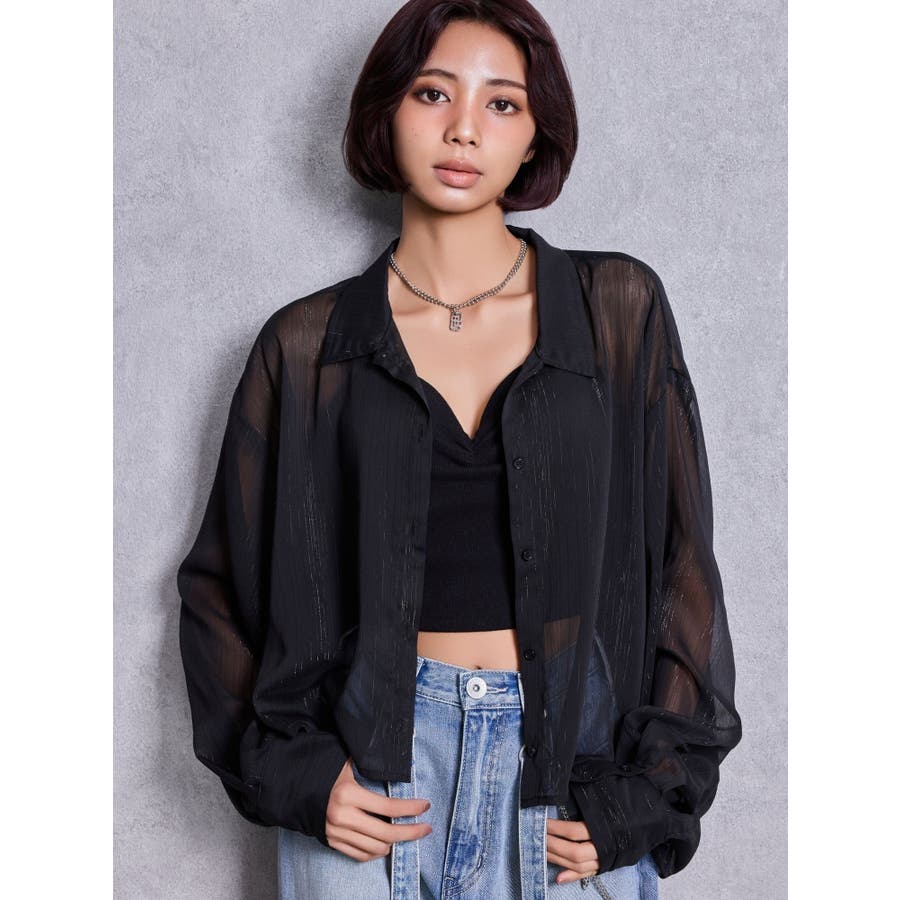 ■デザイン すっきりと合わせやすい、人気のシアーシャツからトレンドのランダムストライプが登場! GYDAらしいラメのランダムストライプなので気軽にトレンドを取り入れていただけます。 ウエストが細く見えるショート丈でスタイルアップ効果もあります。 程よい艶のあるシアー素材でコーディネートにアクセントをプラスしてくれます。 ■スタイリング ハイウエストのボトムやタイトワンピースとの相性抜群です。 ボトムスタイルの時はキャミやタンク合わせで透け感を楽しむとGYDAらしくておすすめです。 ■商品のお気に入り登録 再入荷通知やラスト1点、お得なプライスダウンの情報も受け取ることができます。 ぜひご登録ください◎ ・・・・・・・・・・・・・・・・・・・・・・ ※着用画像はフラッシュの加減で実際の製品と色味等が異なる場合がございますので、生地のズームアップ画像をご確認ください。 ※ご利用の端末画面の設定により実際の商品と色味が異なる場合がございます。