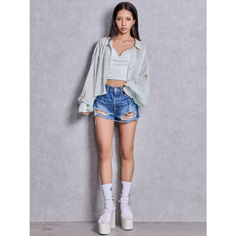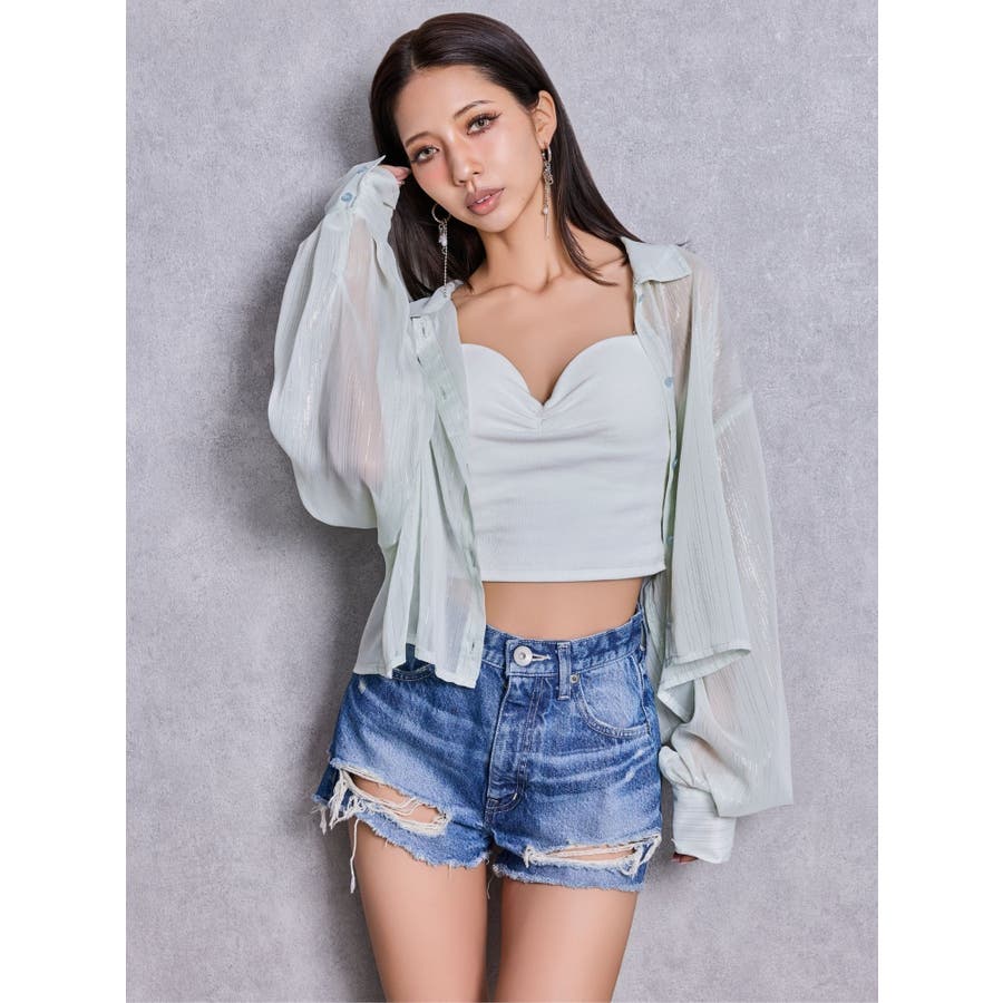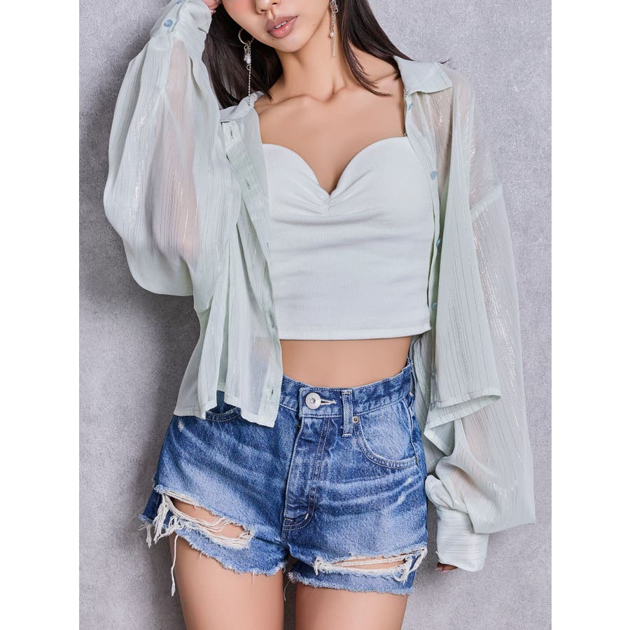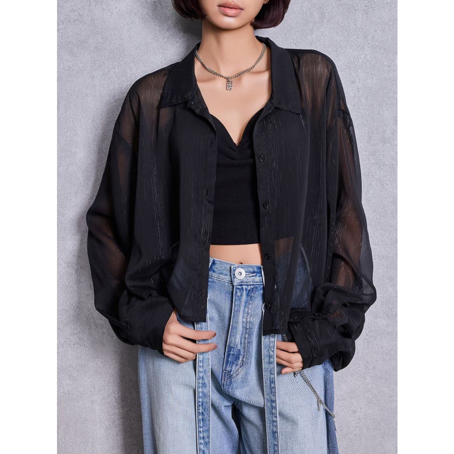 ■デザイン すっきりと合わせやすい、人気のシアーシャツからトレンドのランダムストライプが登場! GYDAらしいラメのランダムストライプなので気軽にトレンドを取り入れていただけます。 ウエストが細く見えるショート丈でスタイルアップ効果もあります。 程よい艶のあるシアー素材でコーディネートにアクセントをプラスしてくれます。 ■スタイリング ハイウエストのボトムやタイトワンピースとの相性抜群です。 ボトムスタイルの時はキャミやタンク合わせで透け感を楽しむとGYDAらしくておすすめです。 ■商品のお気に入り登録 再入荷通知やラスト1点、お得なプライスダウンの情報も受け取ることができます。 ぜひご登録ください◎ ・・・・・・・・・・・・・・・・・・・・・・ ※着用画像はフラッシュの加減で実際の製品と色味等が異なる場合がございますので、生地のズームアップ画像をご確認ください。 ※ご利用の端末画面の設定により実際の商品と色味が異なる場合がございます。