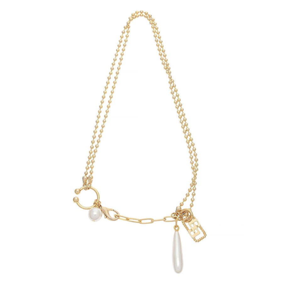 ■デザイン 【JEYSUS ORIGINAL ACCESSORIESどちらも神様という意味を持つJesus/GYDAをかけた、JEYSUS.デザインから細部まで拘ったGYDA ORIGINAL ACCESSORIES】 首後ろ調整部分に施したイミテーションパール/トップに付いたGGメッキ/ダブルのボールチェーンデザインに拘ったネックレスです。 ■商品のお気に入り登録 再入荷通知やラスト1点、お得なプライスダウンの情報も受け取ることができます。 ぜひご登録ください◎ ・・・・・・・・・・・・・・・・・・・・・・ ※着用画像はフラッシュの加減で実際の製品と色味等が異なる場合がございますので、生地のズームアップ画像をご確認ください。 ※ご利用の端末画面の設定により実際の商品と色味が異なる場合がございます。