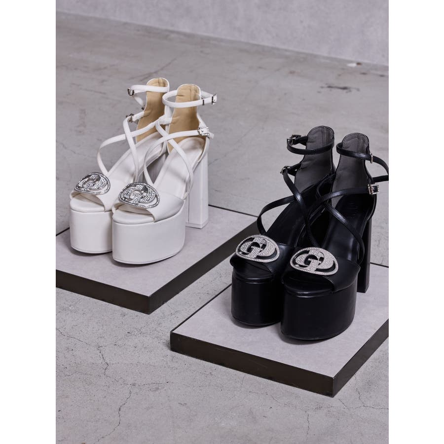 ■デザイン 取り外し可能なGDbijouMOLDがついたサンダルです。 ベルト部分の金具もキラキラ金具になっているので横からみても盛れるデザインになっています。 ■スタイリング 足首までデザインがあるのでミニボトムスやミニワンピースと合わせるのがおすすめです。 クロスデザインになっているので脚をきれいに見せてくれます。 【サイズ】 S(22.5cm)/ストーム:6.6cm, ヒール:13.1cm L:(24.5cm)/ストーム:6.6cm, ヒール:13.1cm ■商品のお気に入り登録 再入荷通知やラスト1点、お得なプライスダウンの情報も受け取ることができます。 ぜひご登録ください◎ ・・・・・・・・・・・・・・・・・・・・・・ ※着用画像はフラッシュの加減で実際の製品と色味等が異なる場合がございますので、生地のズームアップ画像をご確認ください。 ※ご利用の端末画面の設定により実際の商品と色味が異なる場合がございます。