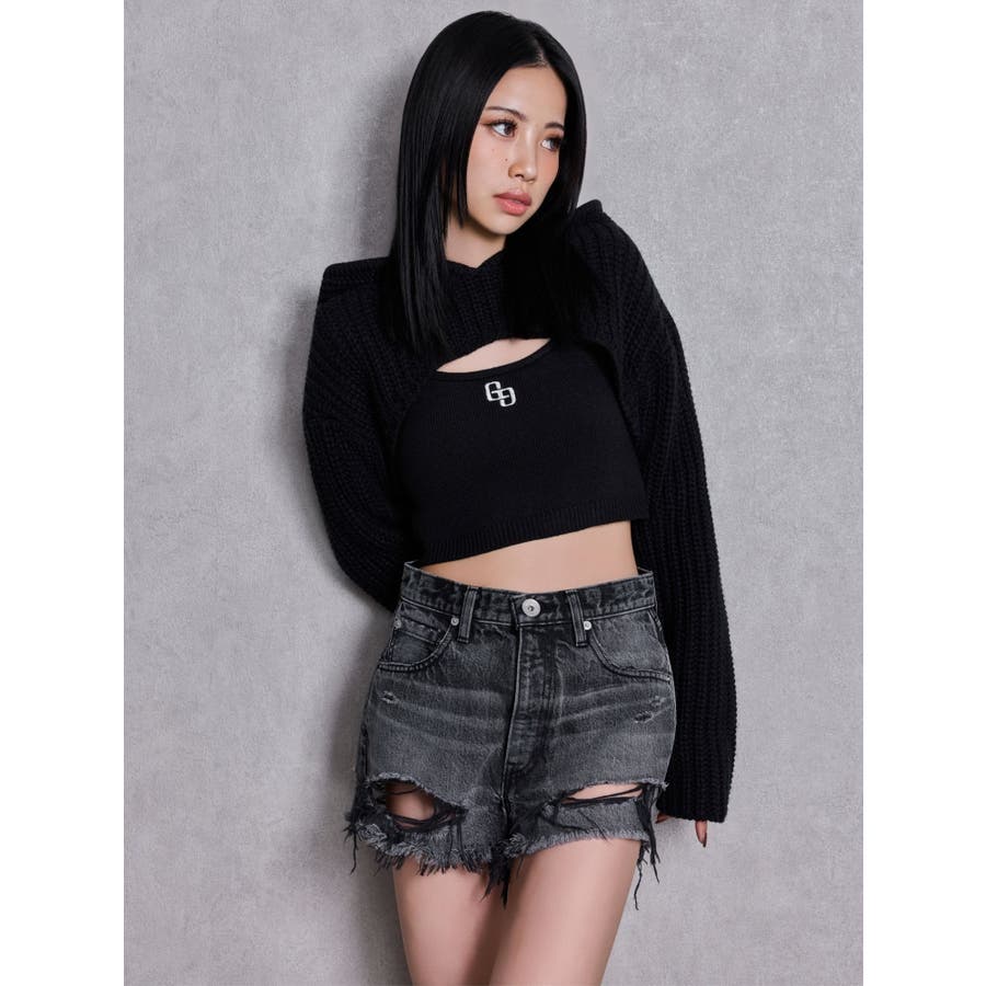 ■デザイン GYDA定番のBACK RIPPEDデニムショートパンツ。 SEXYなダメージ加工・BACK RIPPEDがGYDAらしい1本です。 横糸にはスラブ糸を使用、染色はインディゴと硫化染料を組み合わせて染色をしており、 ヴィンテージデニムの様な本格的な色落ちとスラブ感が楽しめるデニムです。 生地感は、MADE IN JAPAN KV-0164-W-2Sコットンスラブデニムを使用。 ウエスト周りはぴったりしたサイズ感。裾巾は広めに設定しています。 今シーズンは、新色のブラックを追加しています。 ■スタイリング オーバーサイズのトップス合わせや、ビスチェ×シャツ合わせなど、デイリーユース使いに最適なアイテムです。 ■商品のお気に入り登録 再入荷通知やラスト1点、お得なプライスダウンの情報も受け取ることができます。 ぜひご登録ください◎ ・・・・・・・・・・・・・・・・・・・・・・ ※着用画像はフラッシュの加減で実際の製品と色味等が異なる場合がございますので、生地のズームアップ画像をご確認ください。 ※ご利用の端末画面の設定により実際の商品と色味が異なる場合がございます。