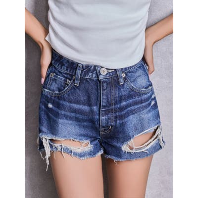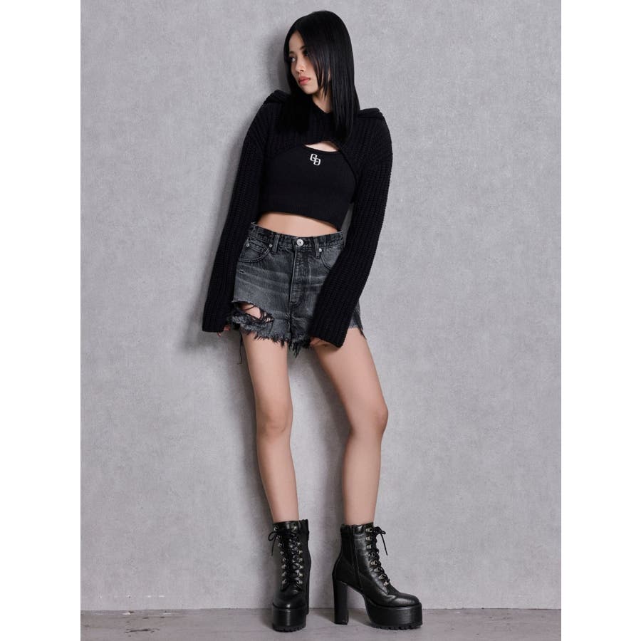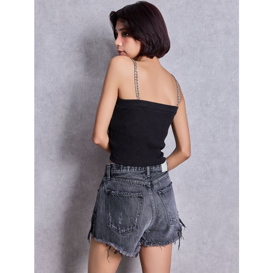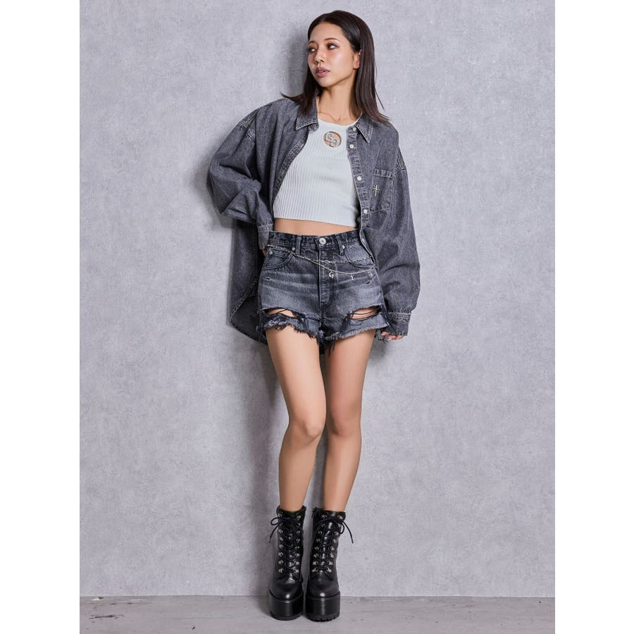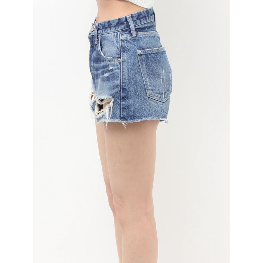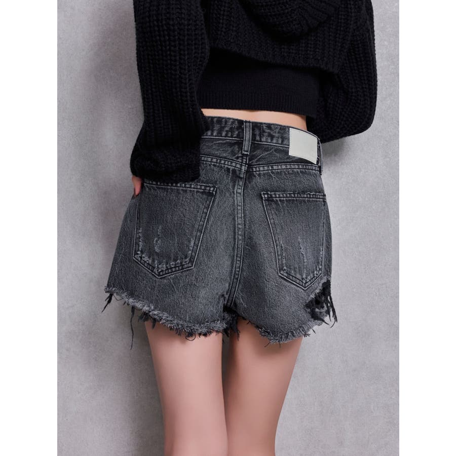 ハイウエストBACK RIPPEDデニムショートパンツ