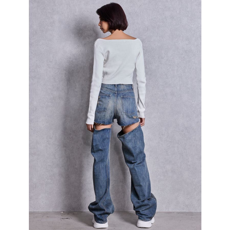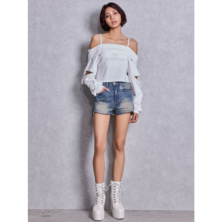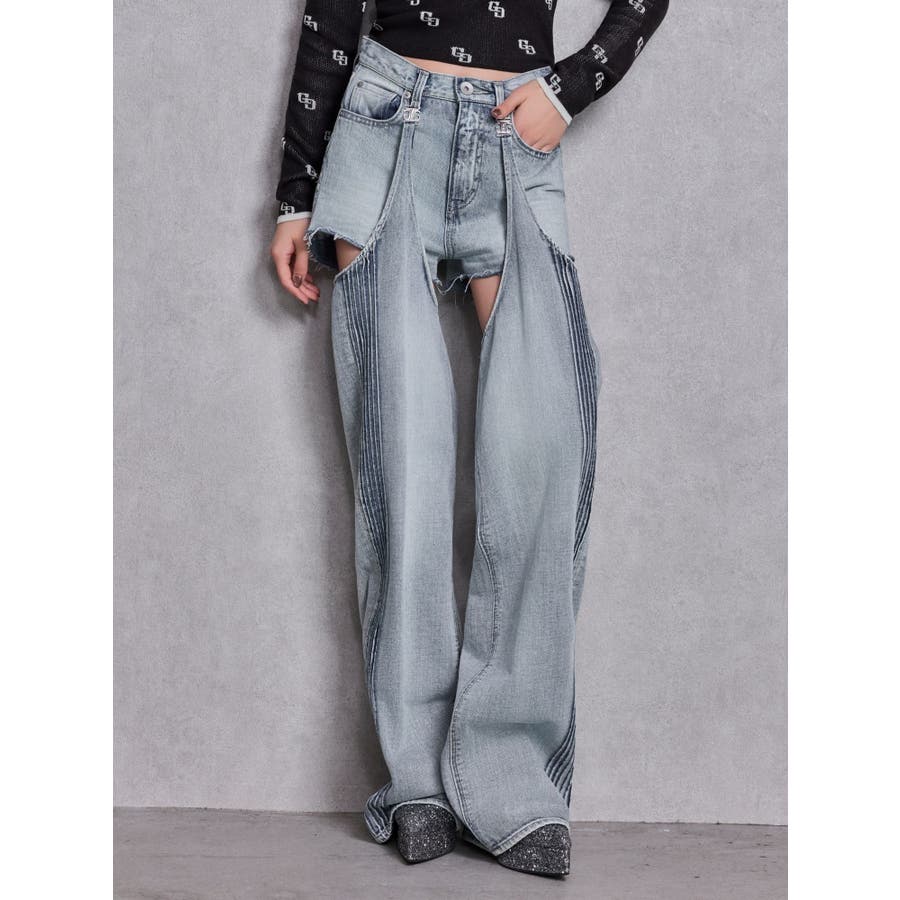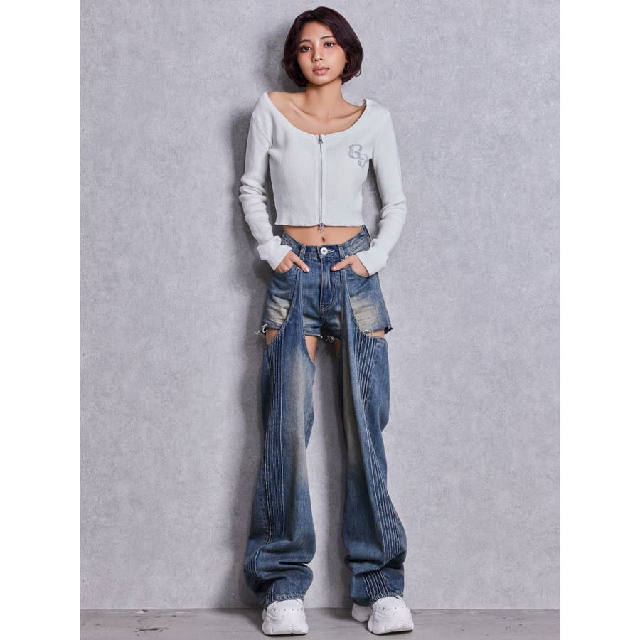 ■デザイン 前ベルトループ部分にSymmetry GYDAメッキを付け、 取り外し可能のレッグ部分を取ると、デニムショートパンツとしても着回しできる2WAYデザインなのが拘りポイントのデニムアイテムです。 レッグ部分は、ラインプリーツ加工を施し、後ろは繋がっていない肌みせ仕様になっているので、 更に脚長効果のあるGYDAらしさたっぷりのセクシーな1本です。 ■スタイリング ハイウエストなのでショートトップスや、インできるタイトトップス合わせが◎ ■商品のお気に入り登録 再入荷通知やラスト1点、お得なプライスダウンの情報も受け取ることができます。 ぜひご登録ください◎ ・・・・・・・・・・・・・・・・・・・・・・ ※着用画像はフラッシュの加減で実際の製品と色味等が異なる場合がございますので、生地のズームアップ画像をご確認ください。 ※ご利用の端末画面の設定により実際の商品と色味が異なる場合がございます。
