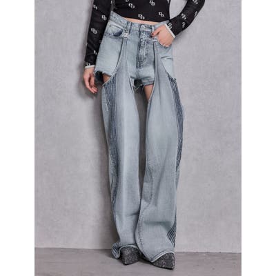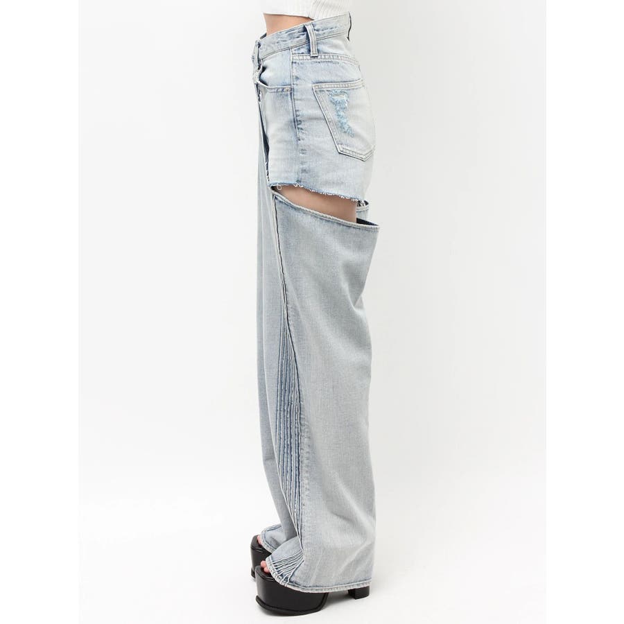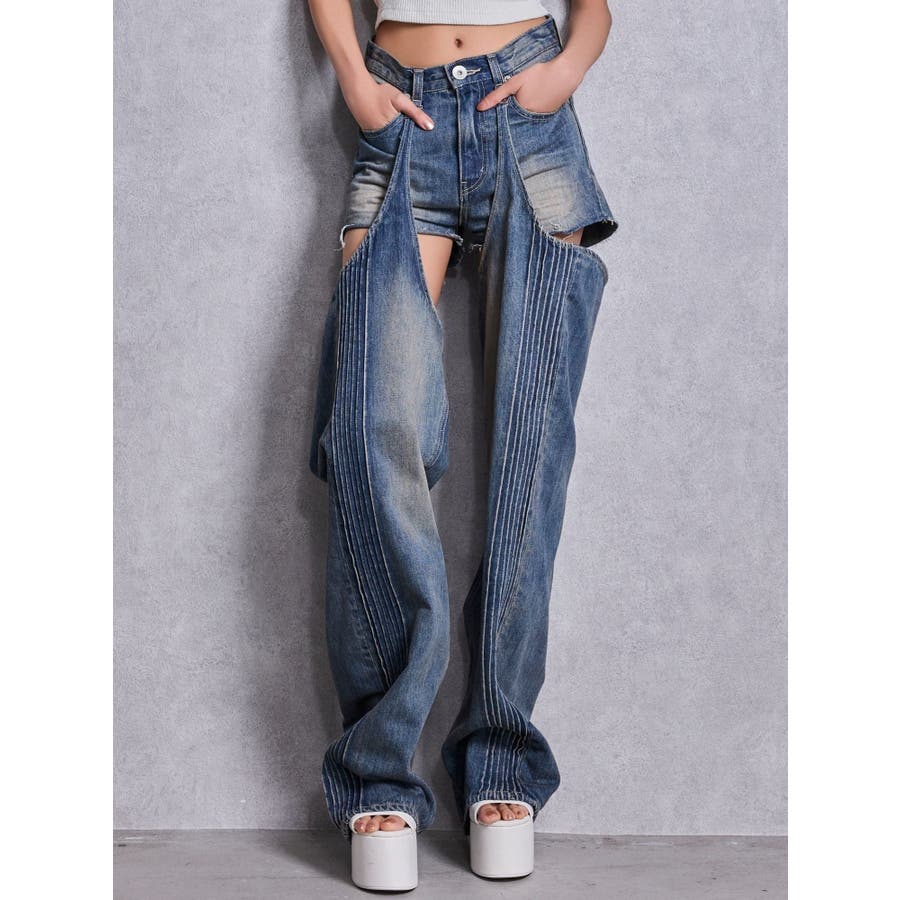 ハイウエストSymmetry GYDA 2WAYラインプリーツデニムパンツ
