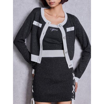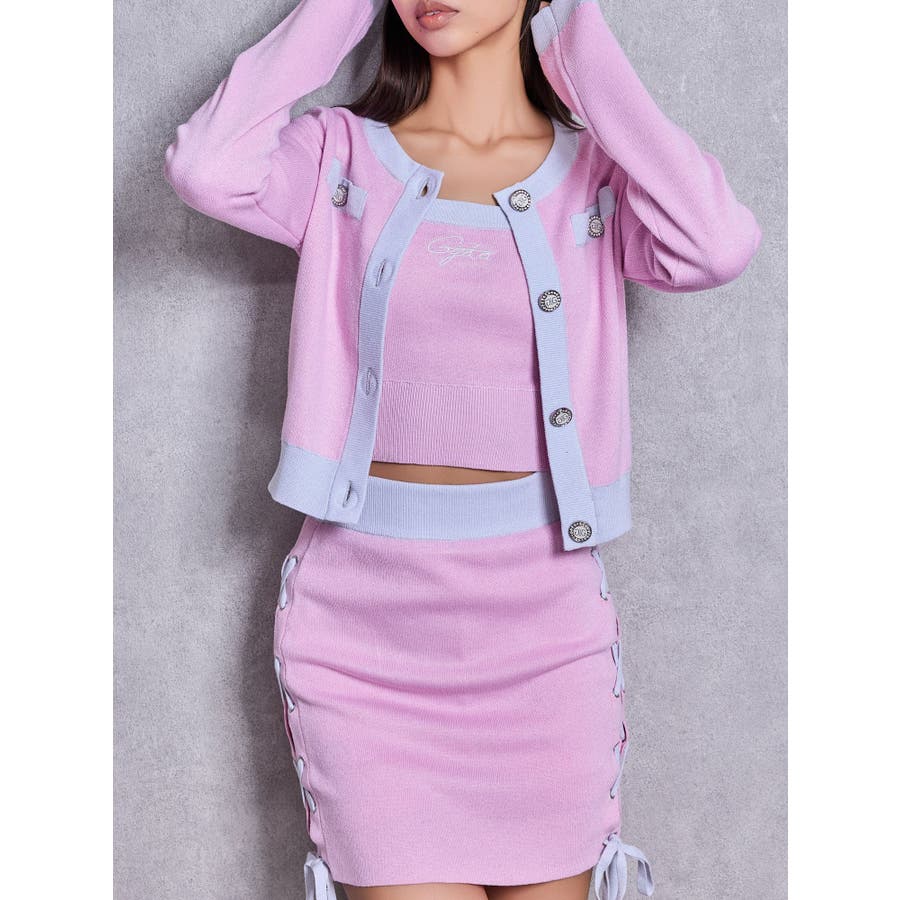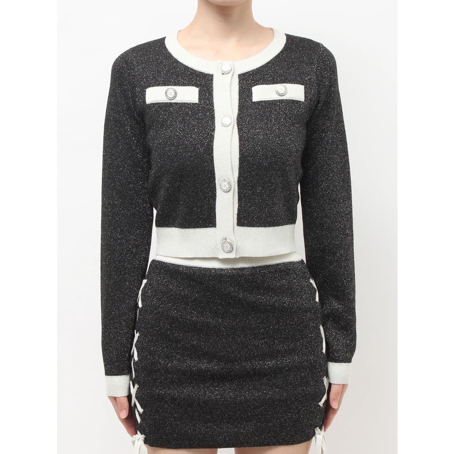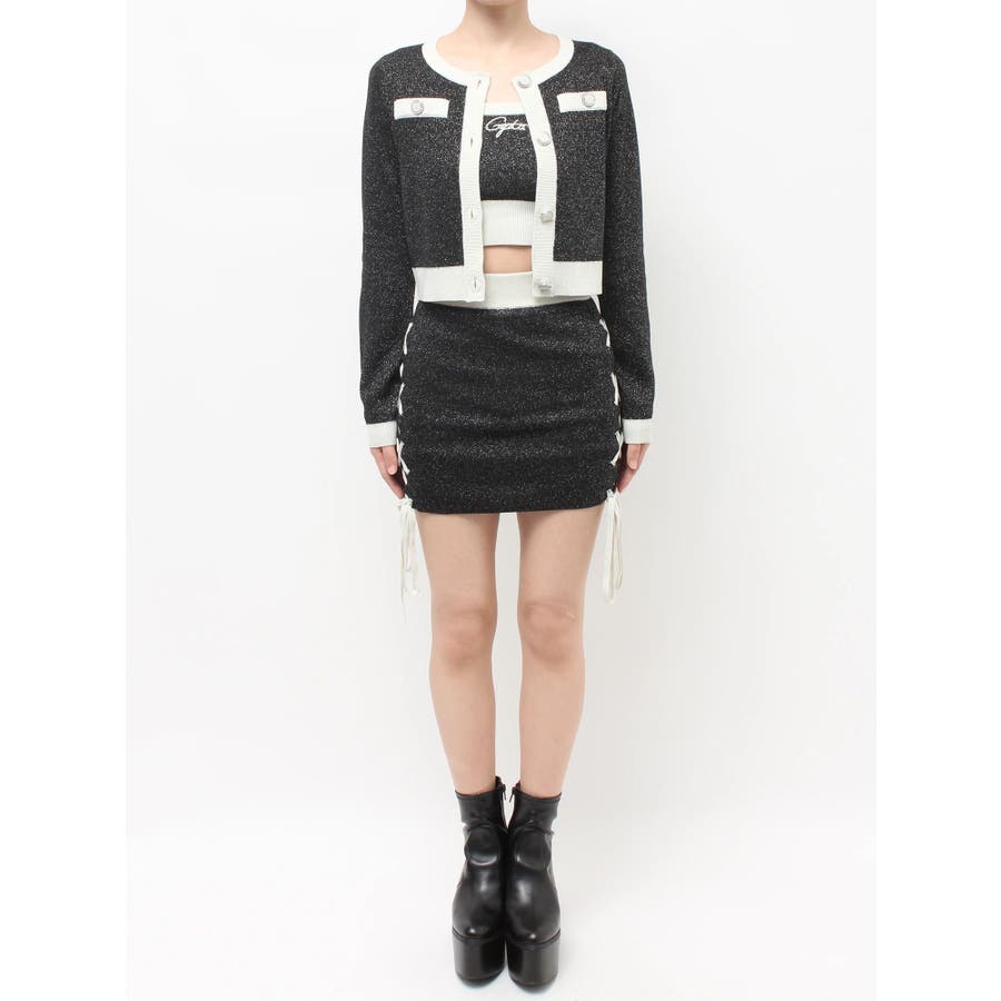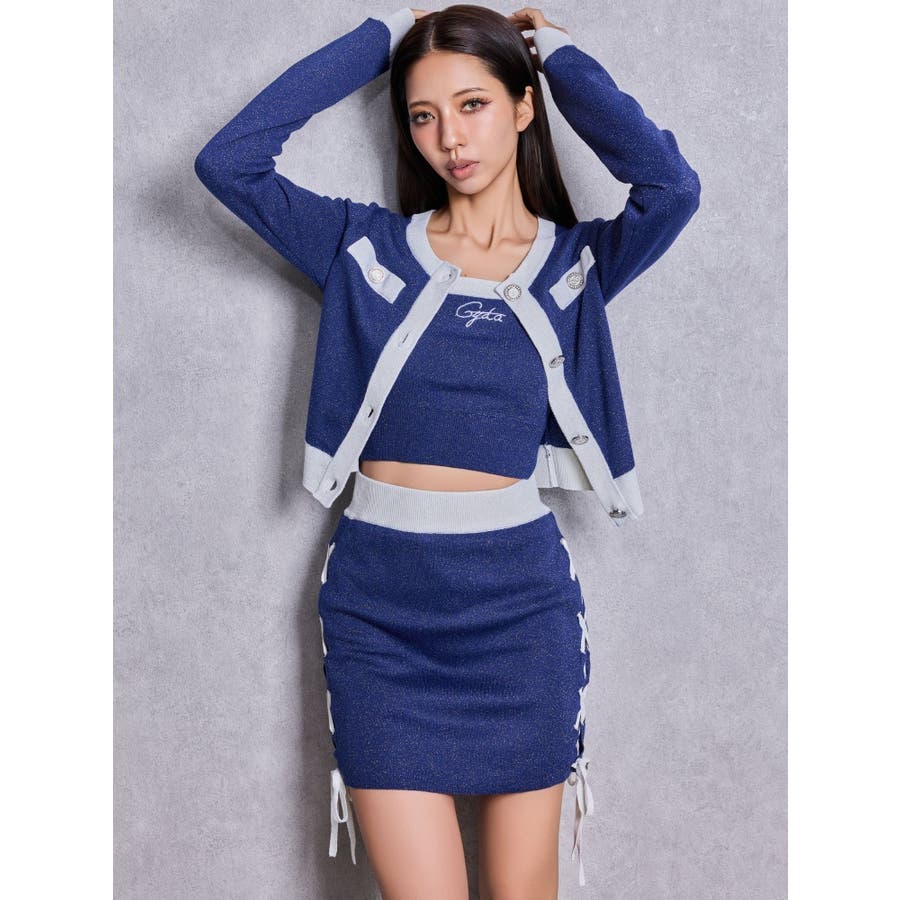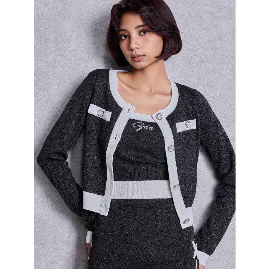 ■セットアップアイテムはこちら フロントレースアップラメニットスカートライクショートパンツ ■デザイン キラキラなラメ糸で編まれたキャミソールにSymmetry GYDAのボタンが付いたカーディガンがついたアンサンブルトップス。 セットアップのフロントレースアップスカートとあわせることでフロントレースアップが大きいアクセントになり、おしゃれ見え◎ カーディガンを開けて着用したりニットキャミ1枚で着用したときもロゴが見えるのでのっぺりせずバランスよく着用できます。 ■スタイリング セットアップのショートパンツ合わせはもちろん、デニムとあわせるときれいめコーデになり大人っぽく着用でき、着回し抜群です。 ■商品のお気に入り登録 再入荷通知やラスト1点、お得なプライスダウンの情報も受け取ることができます。 ぜひご登録ください◎ ・・・・・・・・・・・・・・・・・・・・・・ ※着用画像はフラッシュの加減で実際の製品と色味等が異なる場合がございますので、生地のズームアップ画像をご確認ください。 ※ご利用の端末画面の設定により実際の商品と色味が異なる場合がございます。