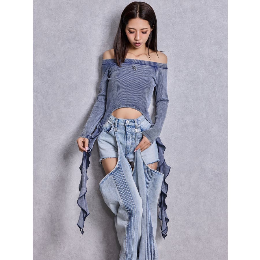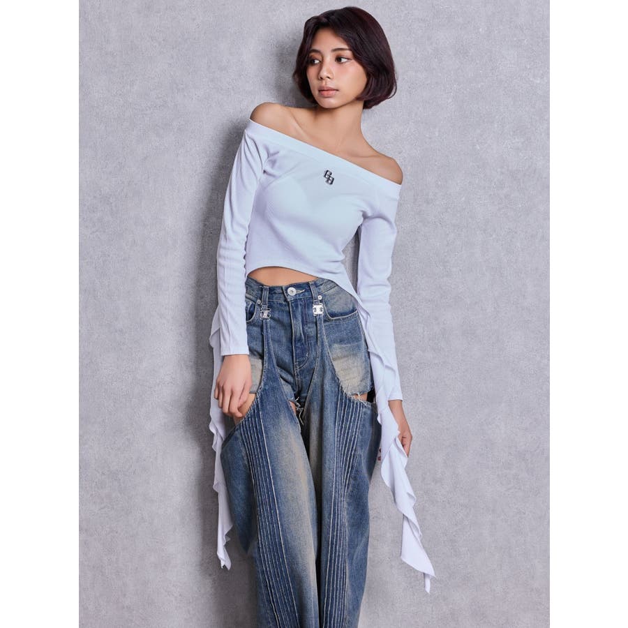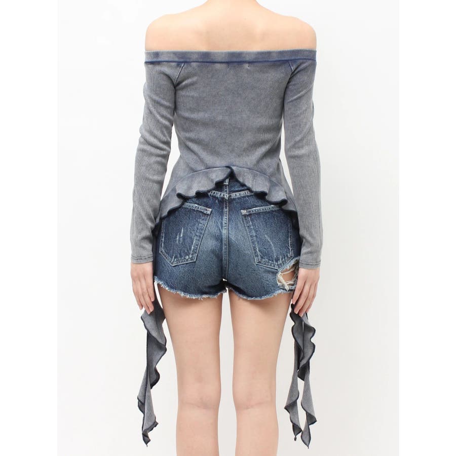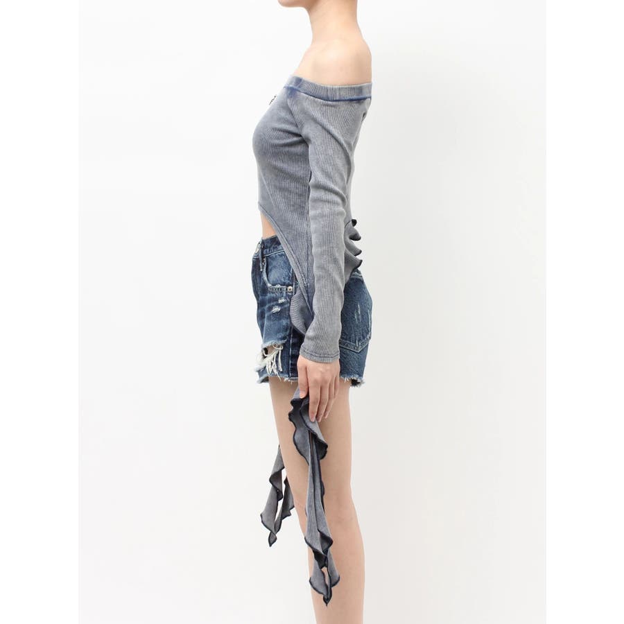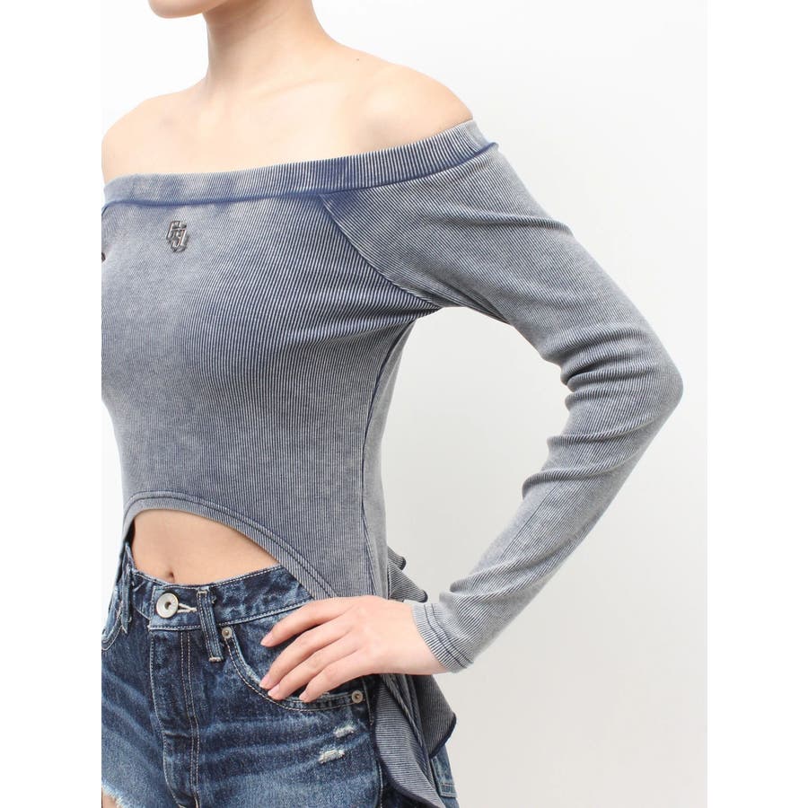 ■デザイン ボディラインを美しく見せるオフショルタイトボディーに、 サイドからフロントにかけて流れるようなドレープフリルデザインで、こなれ感と女性らしさをプラス。 ウォッシュ加工のヴィンテージライクな色味や、フロントのGGプレートもGYDAらしい1枚です。 ■スタイリング デニムやヒール合わせで、LAギャル感あるセクシーカジュアルに◎ ■商品のお気に入り登録 再入荷通知やラスト1点、お得なプライスダウンの情報も受け取ることができます。 ぜひご登録ください◎ ・・・・・・・・・・・・・・・・・・・・・・ ※着用画像はフラッシュの加減で実際の製品と色味等が異なる場合がございますので、生地のズームアップ画像をご確認ください。 ※ご利用の端末画面の設定により実際の商品と色味が異なる場合がございます。