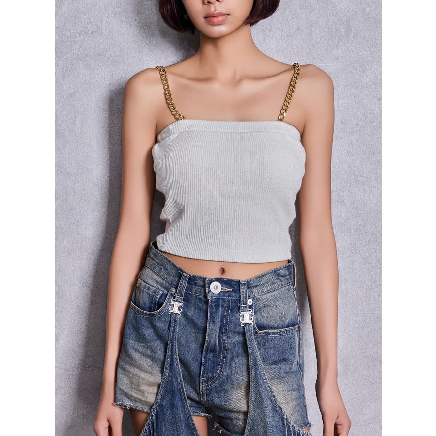■デザイン 取り外し可能なチェーンのストラップがデザインポイントのパット付きビスチェです。 今シーズンはラメテレコ生地にしているのがポイントです。 ■スタイリング デニムアイテムや布帛系のボトムとも相性抜群です。 ■商品のお気に入り登録 再入荷通知やラスト1点、お得なプライスダウンの情報も受け取ることができます。 ぜひご登録ください◎ ・・・・・・・・・・・・・・・・・・・・・・ ※着用画像はフラッシュの加減で実際の製品と色味等が異なる場合がございますので、生地のズームアップ画像をご確認ください。 ※ご利用の端末画面の設定により実際の商品と色味が異なる場合がございます。