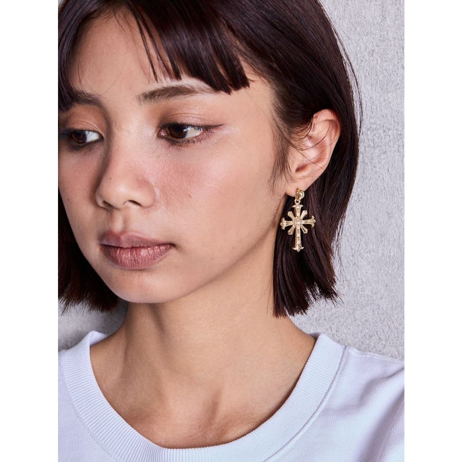 ■デザイン 【JEYSUS ORIGINAL ACCESSORIESどちらも神様という意味を持つJesus/GYDA(ジェイダ)をかけた、JEYSUS.デザインから細部まで拘ったGYDA ORIGINAL ACCESSORIES】 1つでボリューム感ある、sacred edge crossチャームがポイント。 リングを挟んでいるので、動くと揺れる仕様も存在感を放ち、裏側にはGG総柄の刻印入り。 耳元にプラスするだけで、アクセントを付けれるピアスです。 ■商品のお気に入り登録 再入荷通知やラスト1点、お得なプライスダウンの情報も受け取ることができます。 ぜひご登録ください◎ ・・・・・・・・・・・・・・・・・・・・・・ ※着用画像はフラッシュの加減で実際の製品と色味等が異なる場合がございますので、生地のズームアップ画像をご確認ください。 ※ご利用の端末画面の設定により実際の商品と色味が異なる場合がございます。