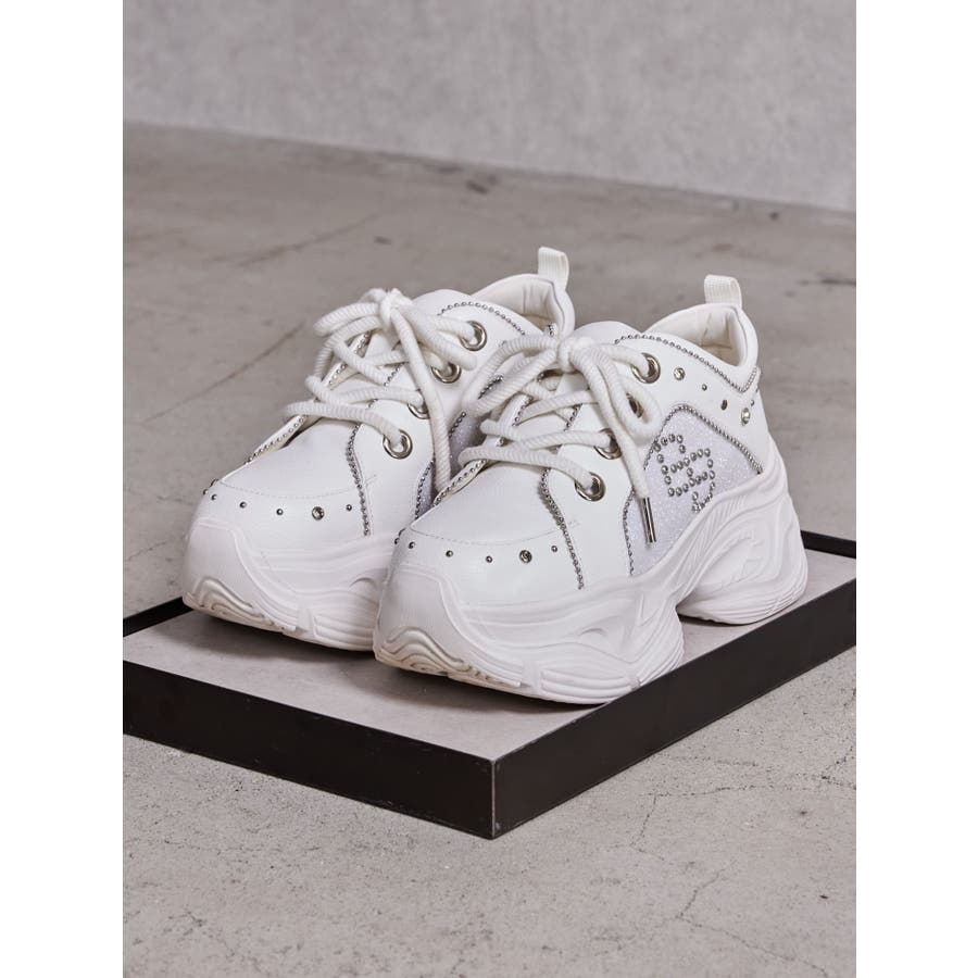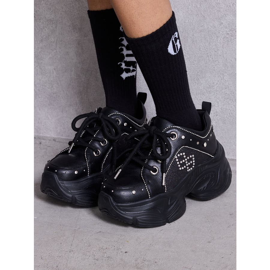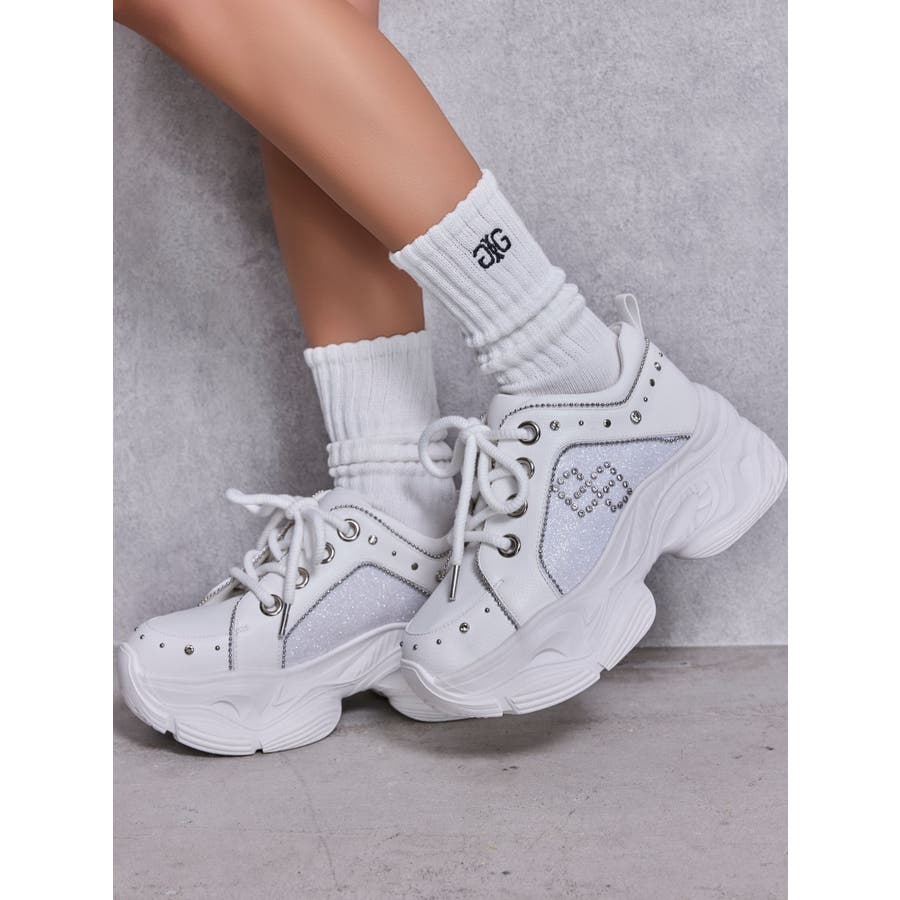 ■デザイン ラメ素材の切替、ビジューで象られたGGのモチーフ。 かかとにも散りばめられたビジューで高級感満載のスニーカーです。 トレンド感のある厚底なのでスタイルアップ効果抜群です。 厚底ソールですが、軽い素材なので長時間歩いても疲れにくくなっています。 ■スタイリング スキニーデニム合わせはもちろん、ミニボトムスにソックス合わせのコーデも春夏のシーズンっぽくおすすめです。 ■商品のお気に入り登録 再入荷通知やラスト1点、お得なプライスダウンの情報も受け取ることができます。 ぜひご登録ください◎ ・・・・・・・・・・・・・・・・・・・・・・ ※着用画像はフラッシュの加減で実際の製品と色味等が異なる場合がございますので、生地のズームアップ画像をご確認ください。 ※ご利用の端末画面の設定により実際の商品と色味が異なる場合がございます。