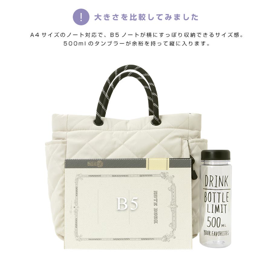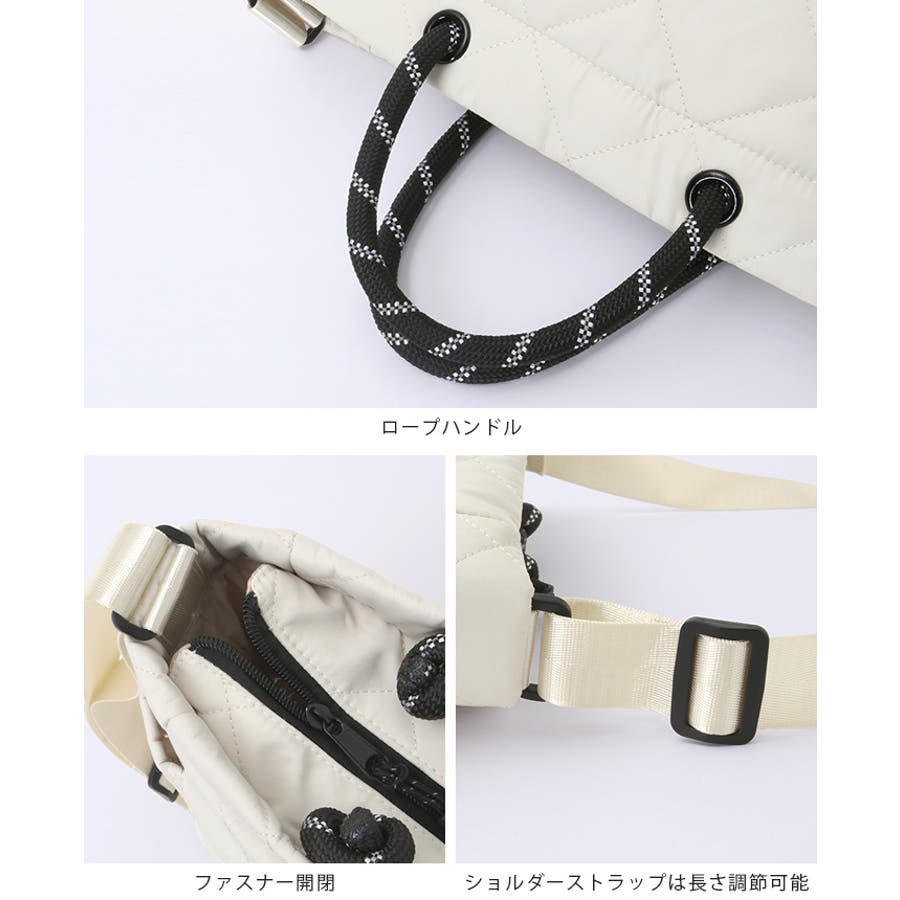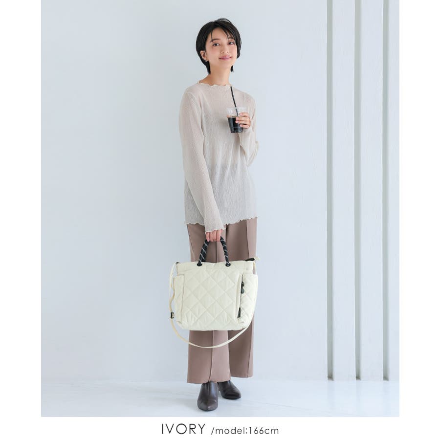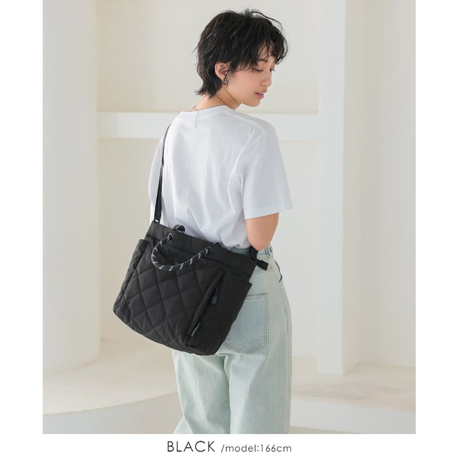 『大人のカジュアルライク。』ロープハンドルがアクセントの、2WAYキルティングトートバッグ。A4サイズのノートが横に入るサイズ感で、マチが広いので大容量◎ポケットが4つあるので小物整理にも便利。ショルダーストラップは幅が広く柔らかいので、肩の負担を軽減してくれます。普段使いにはもちろん、マザーズバッグとしてもおすすめです。