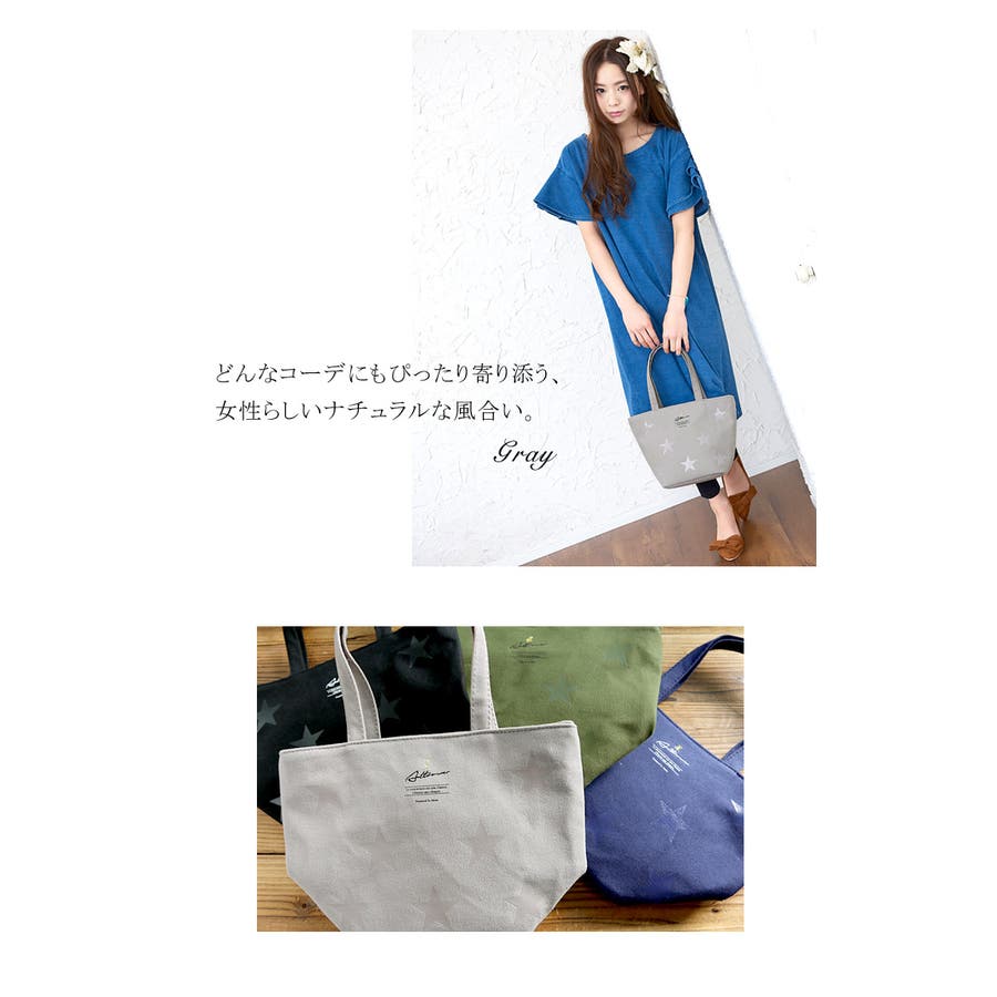 星柄をコーデに添えて。星プリント キャンバス ミニトートバッグステラ