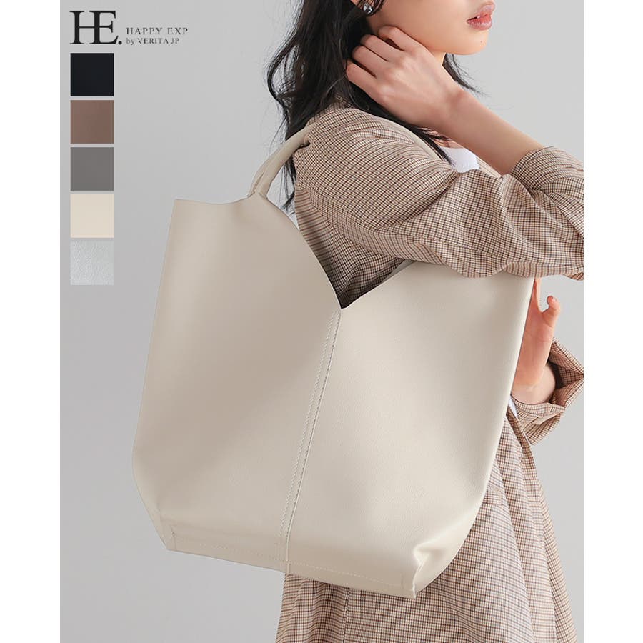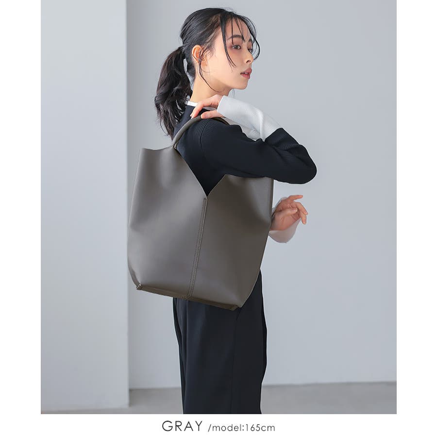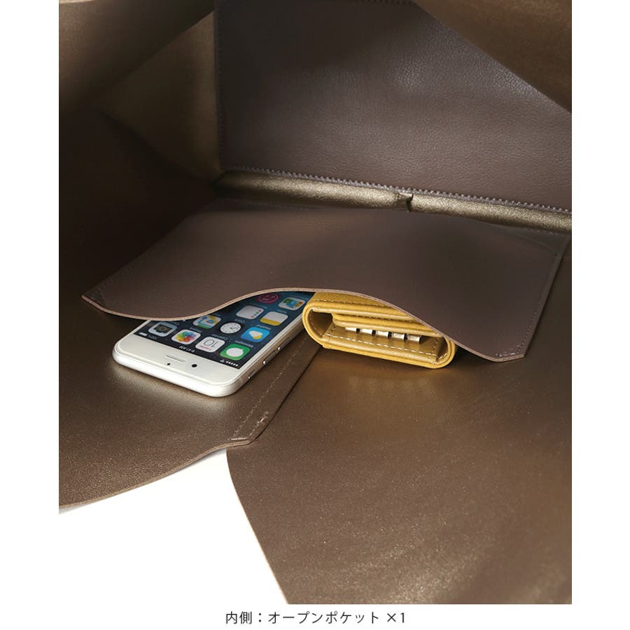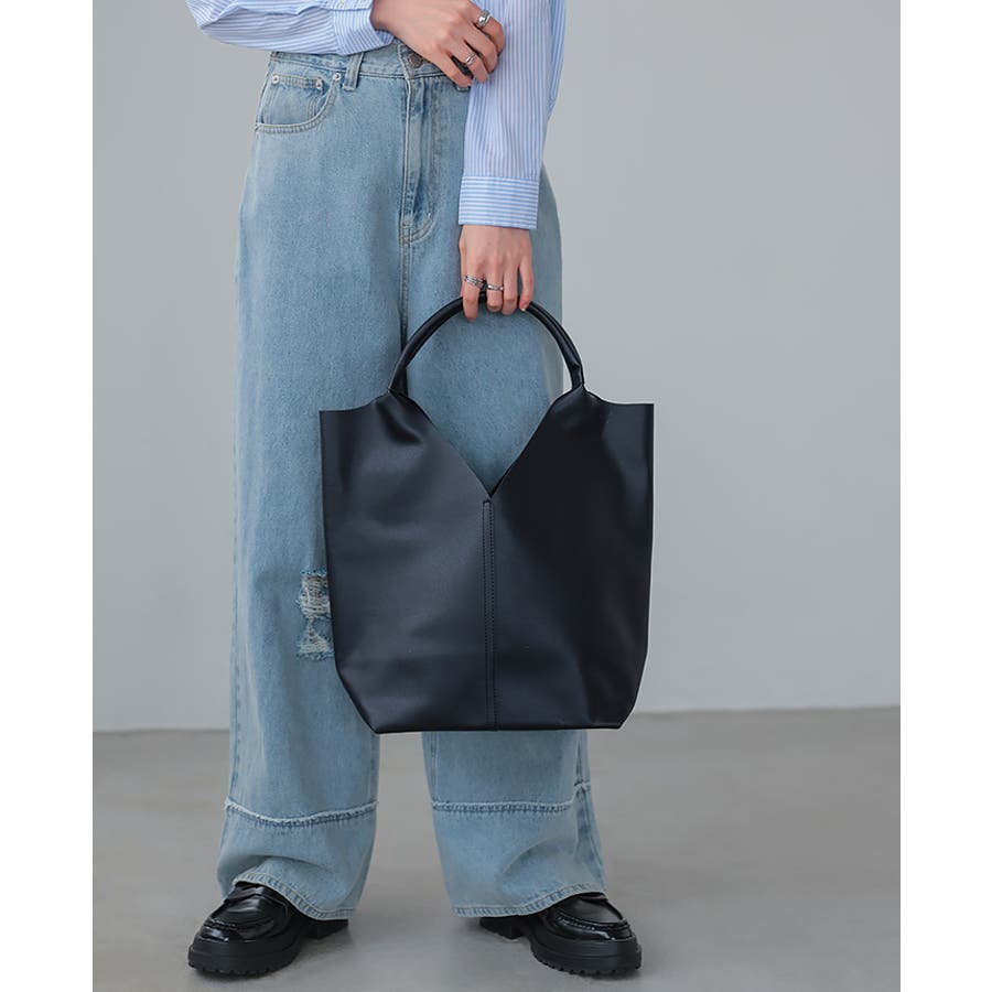 高級感のあるフェイクレザーを使い、1枚革で仕上げたようなトートバッグ。