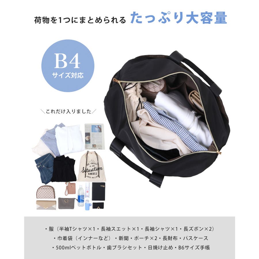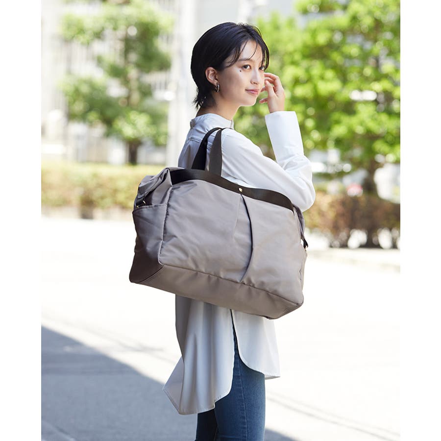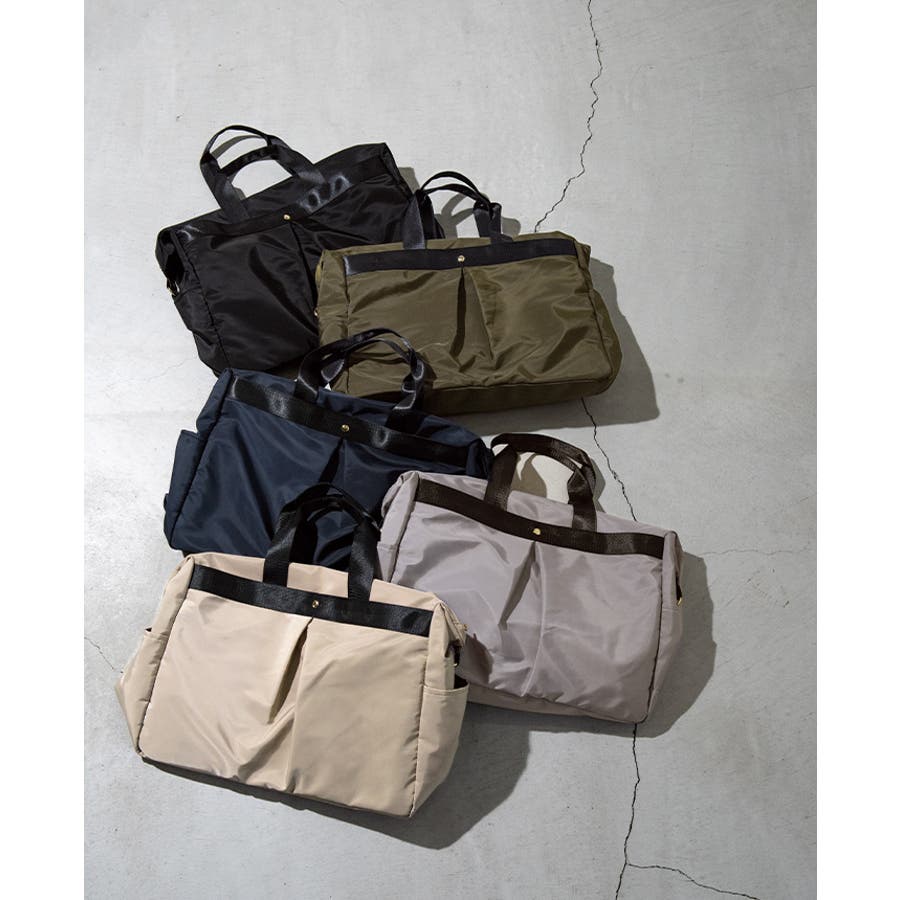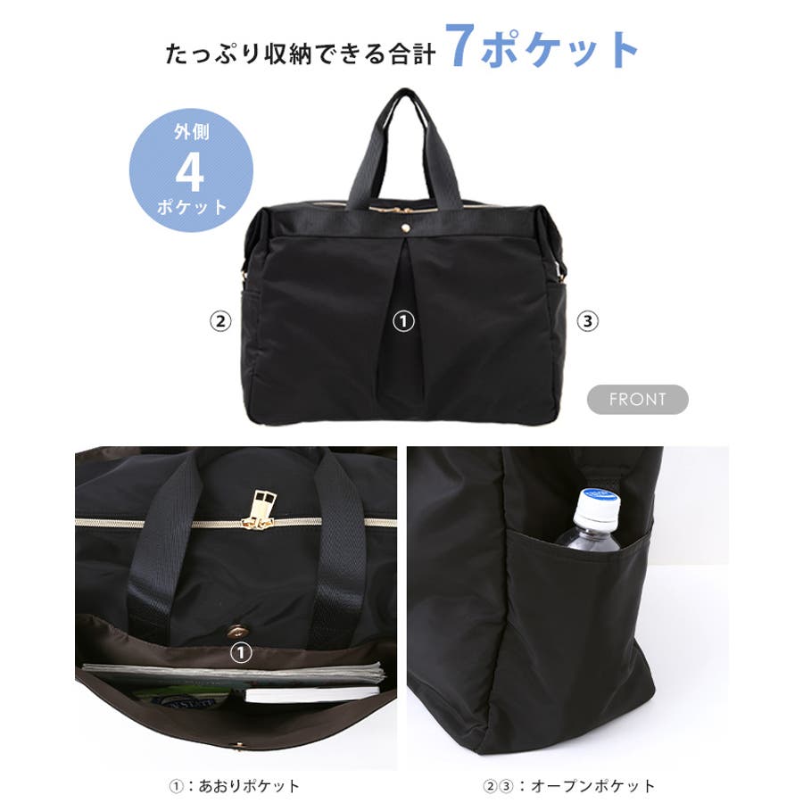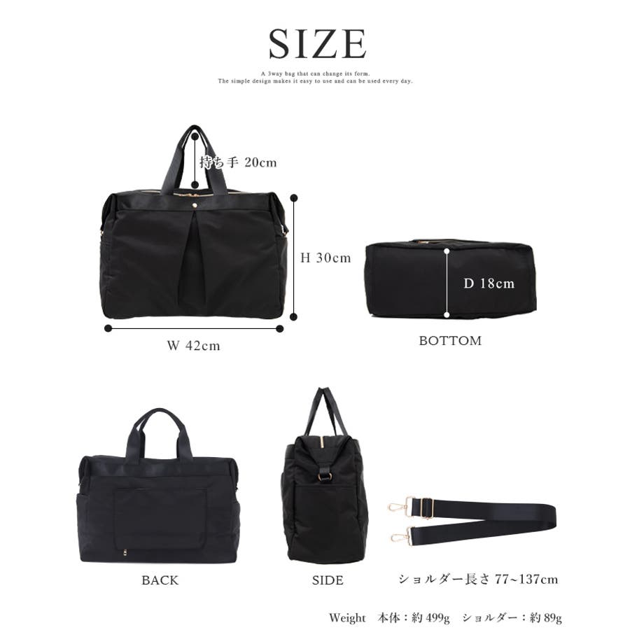 『男女問わず持てるシンプルデザイン。』高密度ポリエステル生地を使用した、軽量の3WAYデザインのボストンバッグ。両サイドのスナップボタンで、バッグの形を変えることが可能。小物がバッグの中で迷子にならない7ポケット付き。背面ポケットはキャリーオンになる仕様で機能性も抜群◎旅行バッグとしてはもちろん、ジムなど幅広いシーンで活躍してくれます。