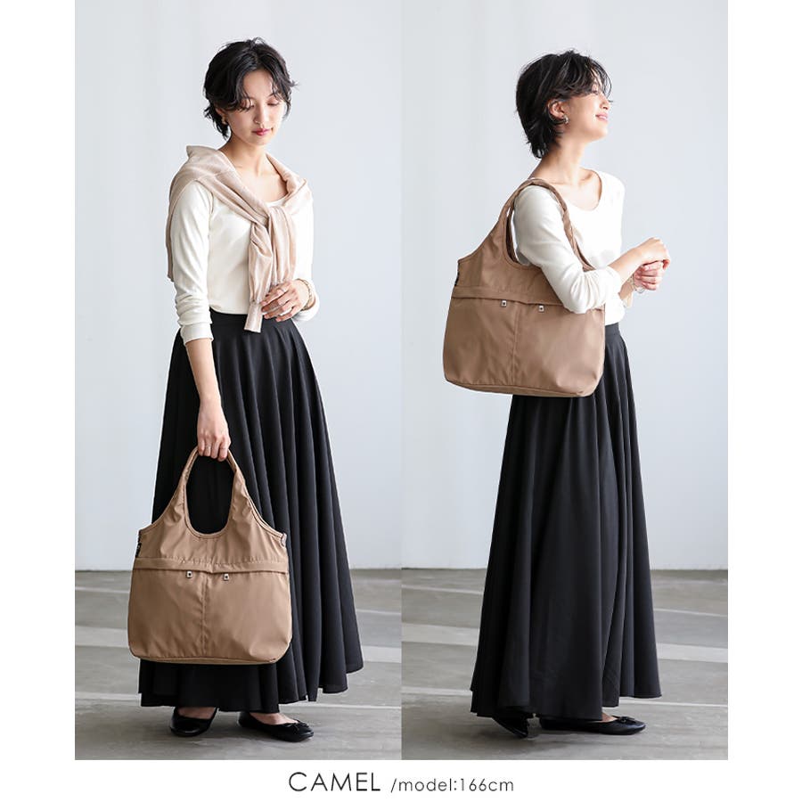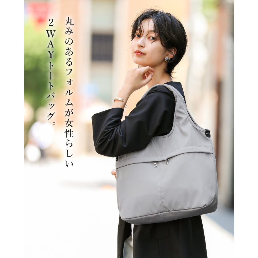 女性らしいコーデに馴染む、機能性バッグ。10ポケット2WAYバルーントートバッグ…