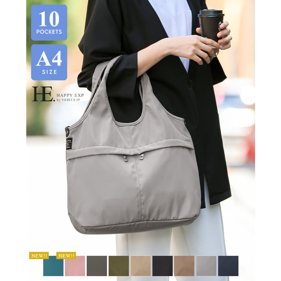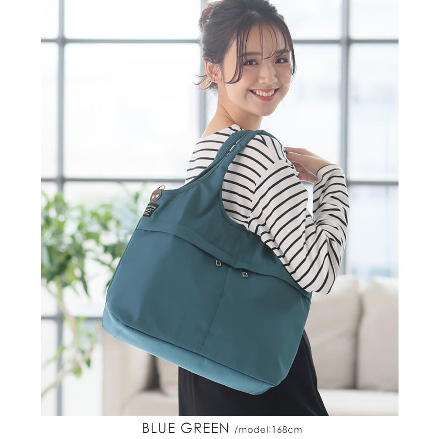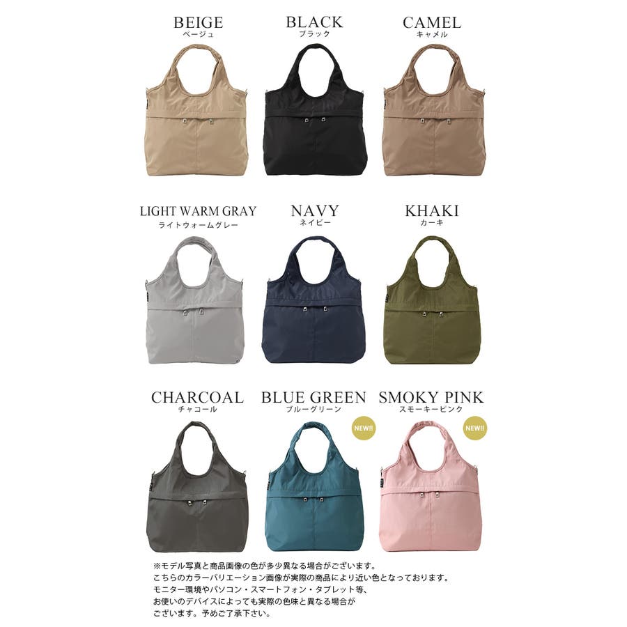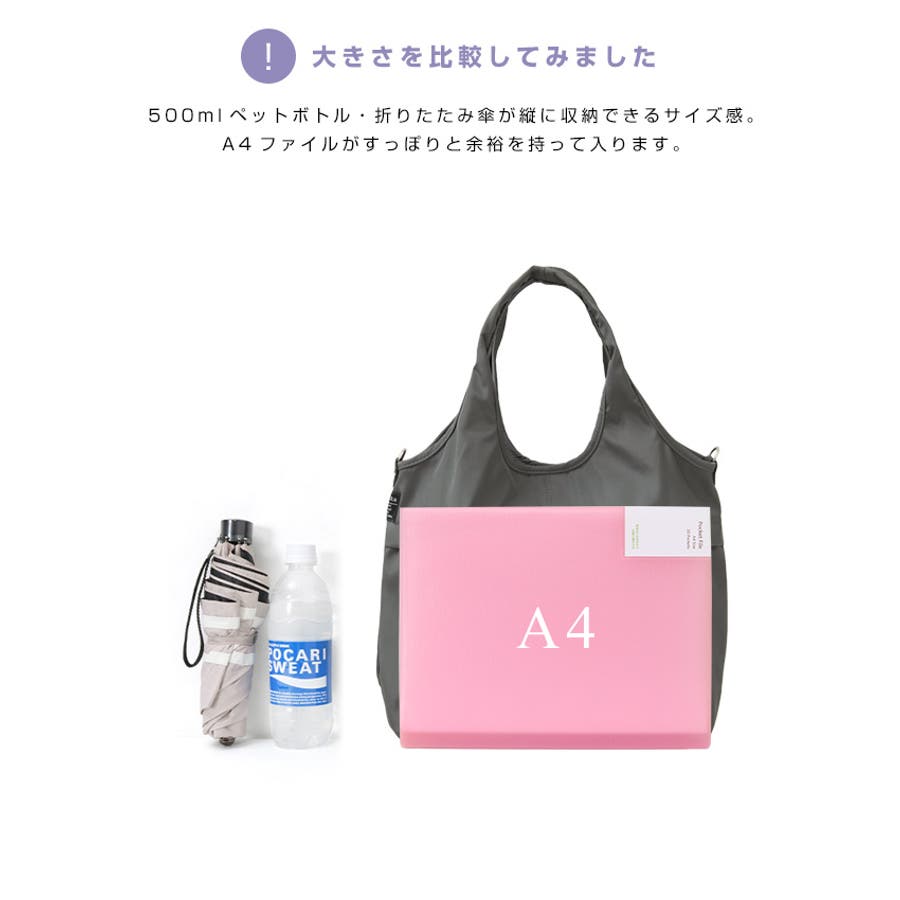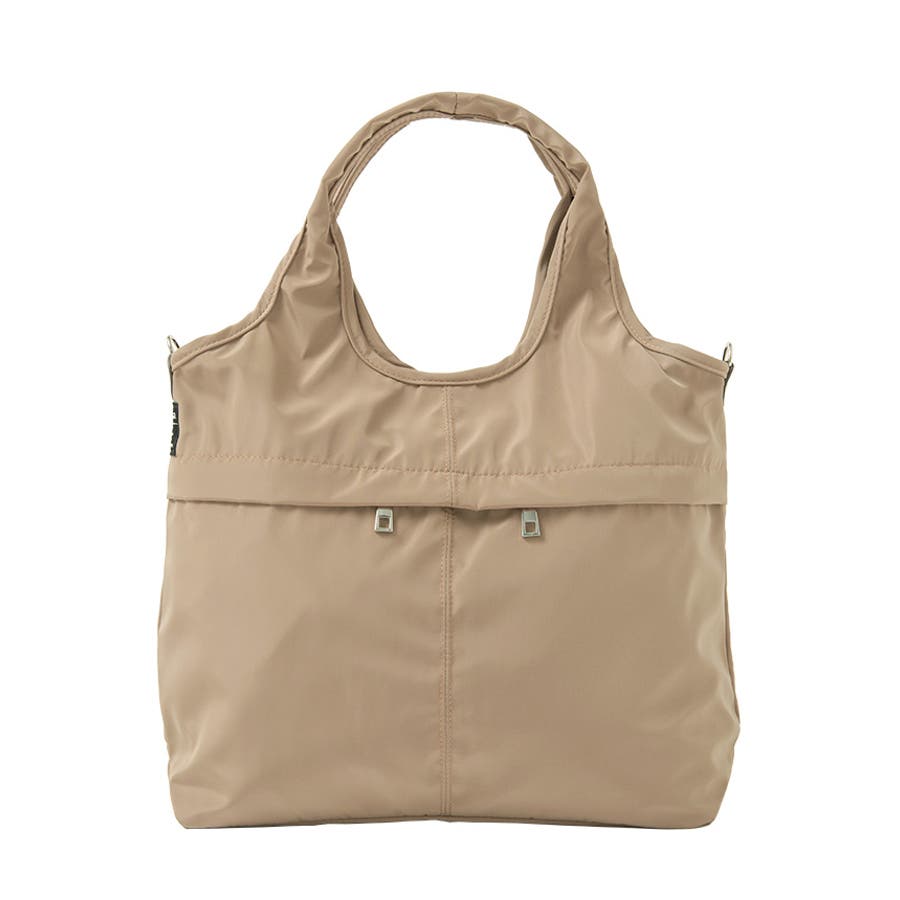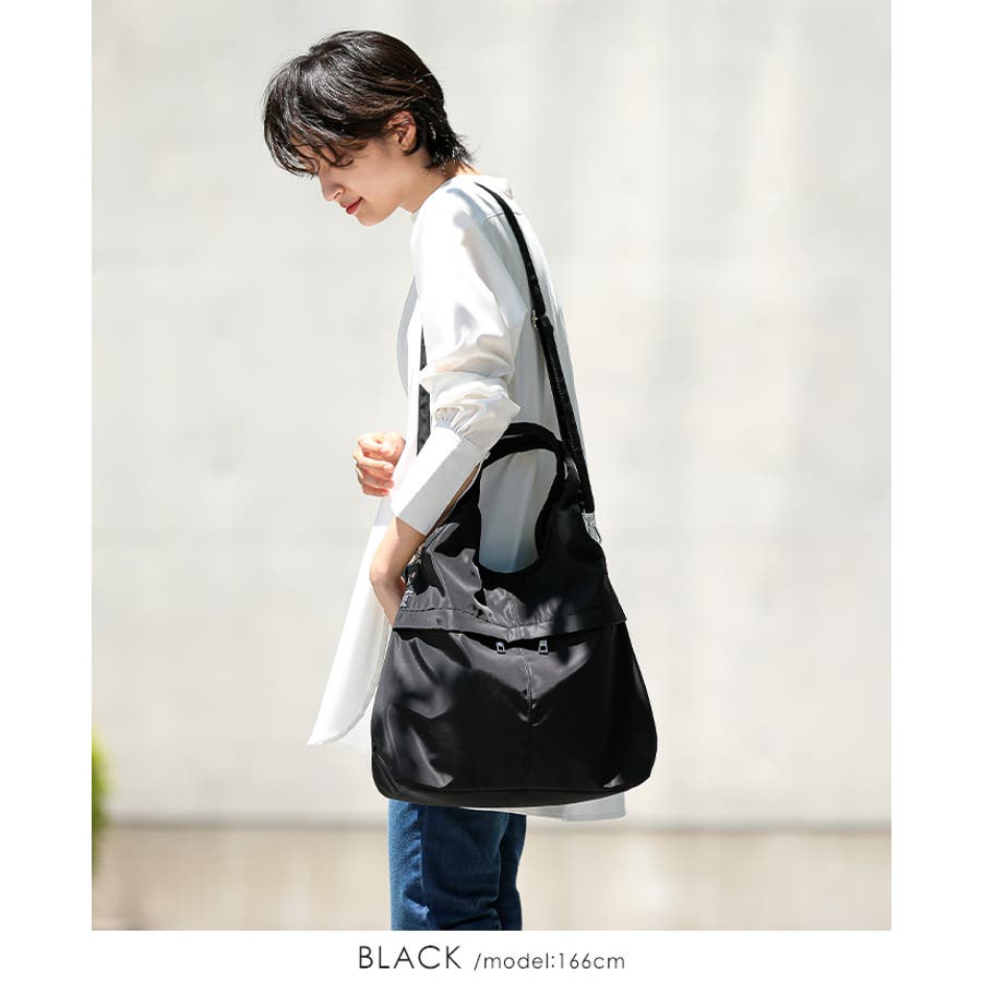 『女性らしいコーデに馴染む、機能性バッグ。』高密度ポリエステル生地を使用した、軽量の2WAYデザイン。A4サイズのファイルが横に入り、水筒や折り畳み傘が縦に入るサイズ感。マチもしっかりあり、荷物を1つにまとめられる大容量。10ポケット付きで、小物の整理がしやすいのもポイント。通勤・通学はもちろん、デイリー使いにもおすすめです。