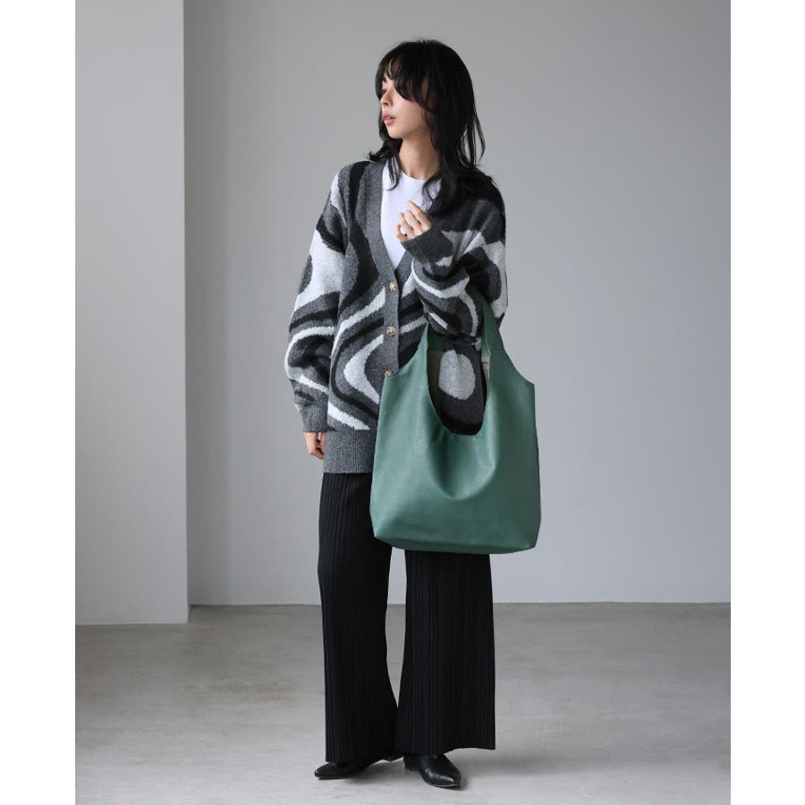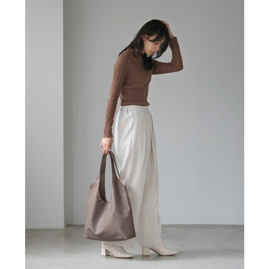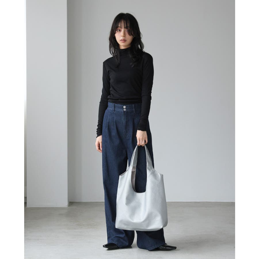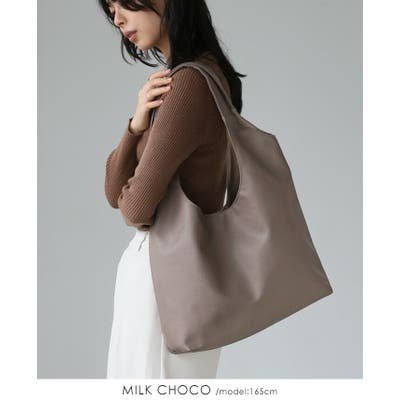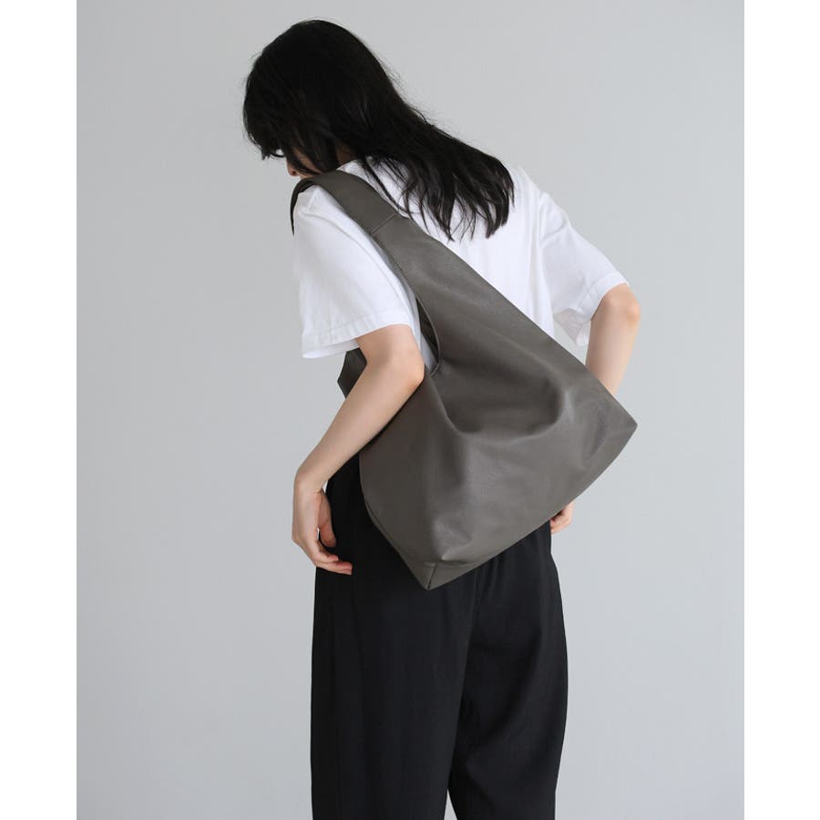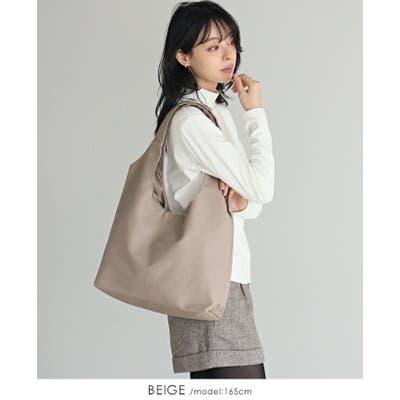 軽くて柔らかいフェイクレザー生地で、体馴染みが良いトートバッグ。