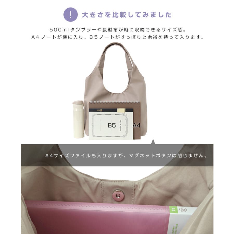 マチがしっかりあるので、お弁当箱やポーチなど嵩張る物も収納可能◎