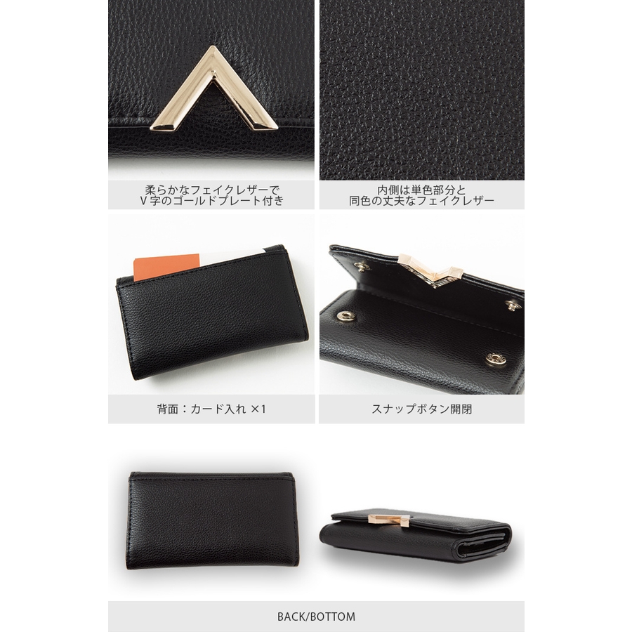 『私のスタイルに合うものが良い。』フロントのV字プレートがアクセントになったキーケース。4連のキーフックとカードを収納するオープンポケット付きで、定期券や免許証など、毎日使うものを1つにまとめることができるデザイン。シンプルで使いやすく、合皮なので季節を問わずお使い頂けます。無地から柄まで取り揃えたバリエーションにも注目です。
