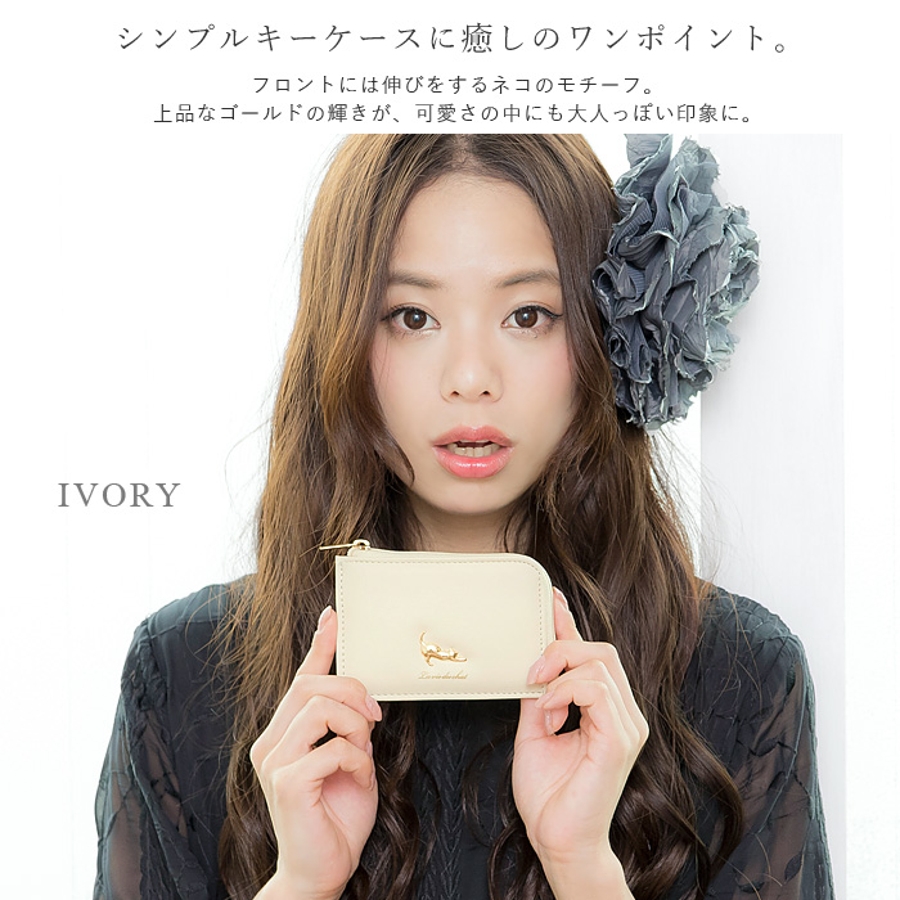 伸び猫の大人可愛いキーケース。猫モチーフキーケース キーケース 3連