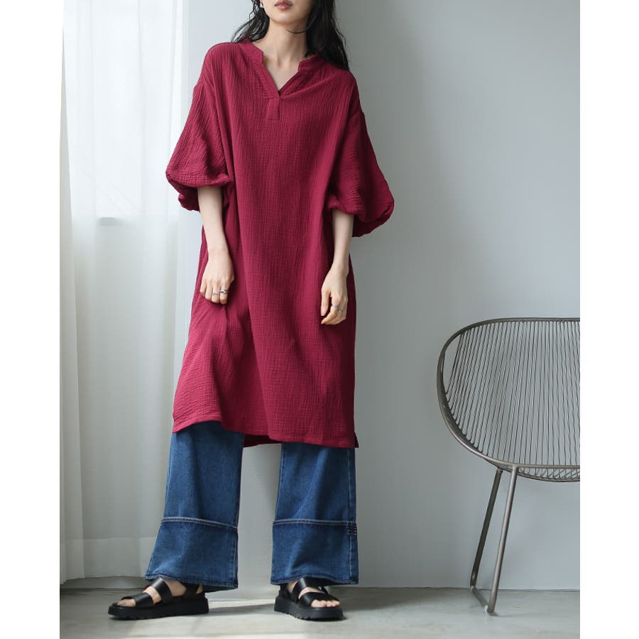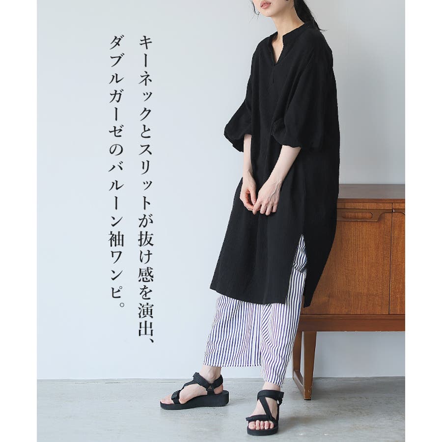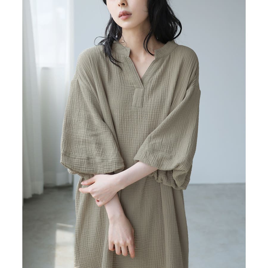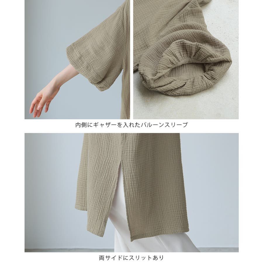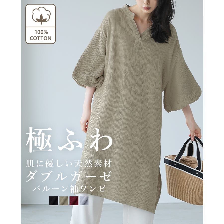 一度着たらヤミツキ!柔らかな肌触り ダブルガーゼ バルーン袖チュニックワンピ