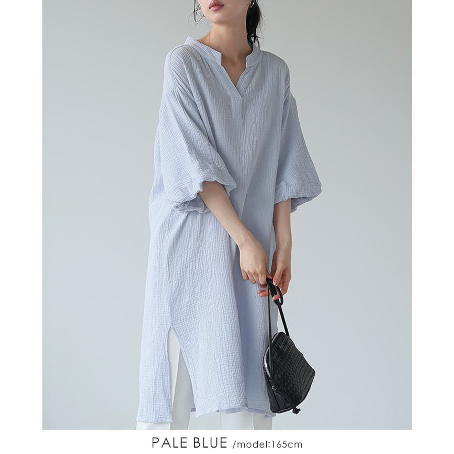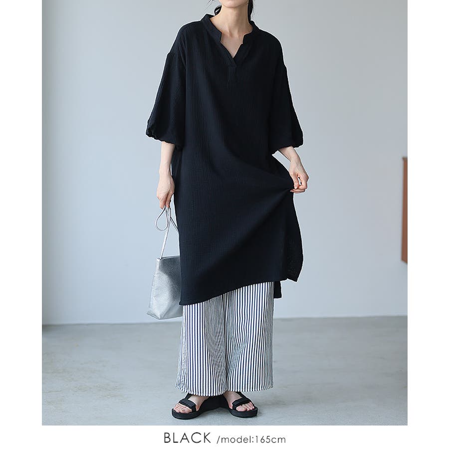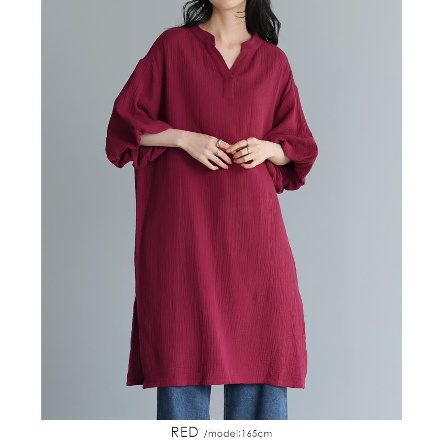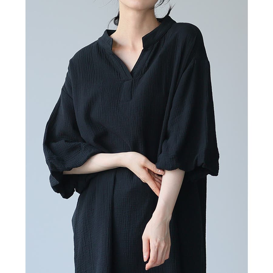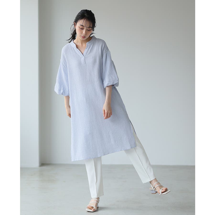 一度着たらヤミツキ!柔らかな肌触り ダブルガーゼ バルーン袖チュニックワンピ