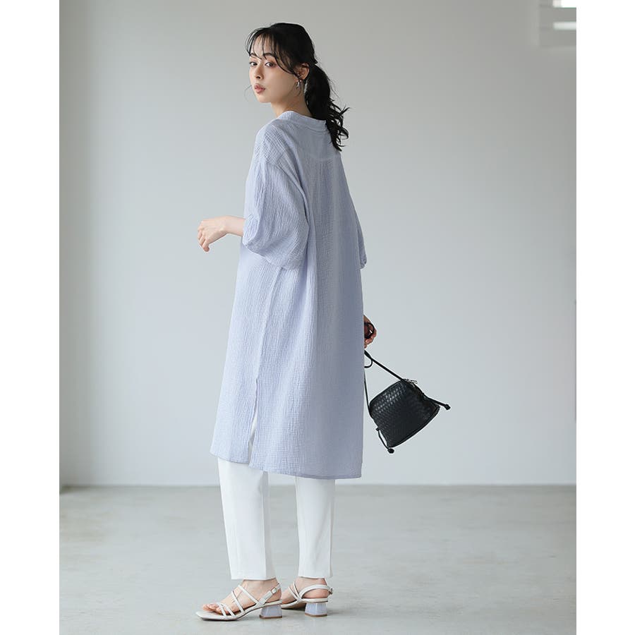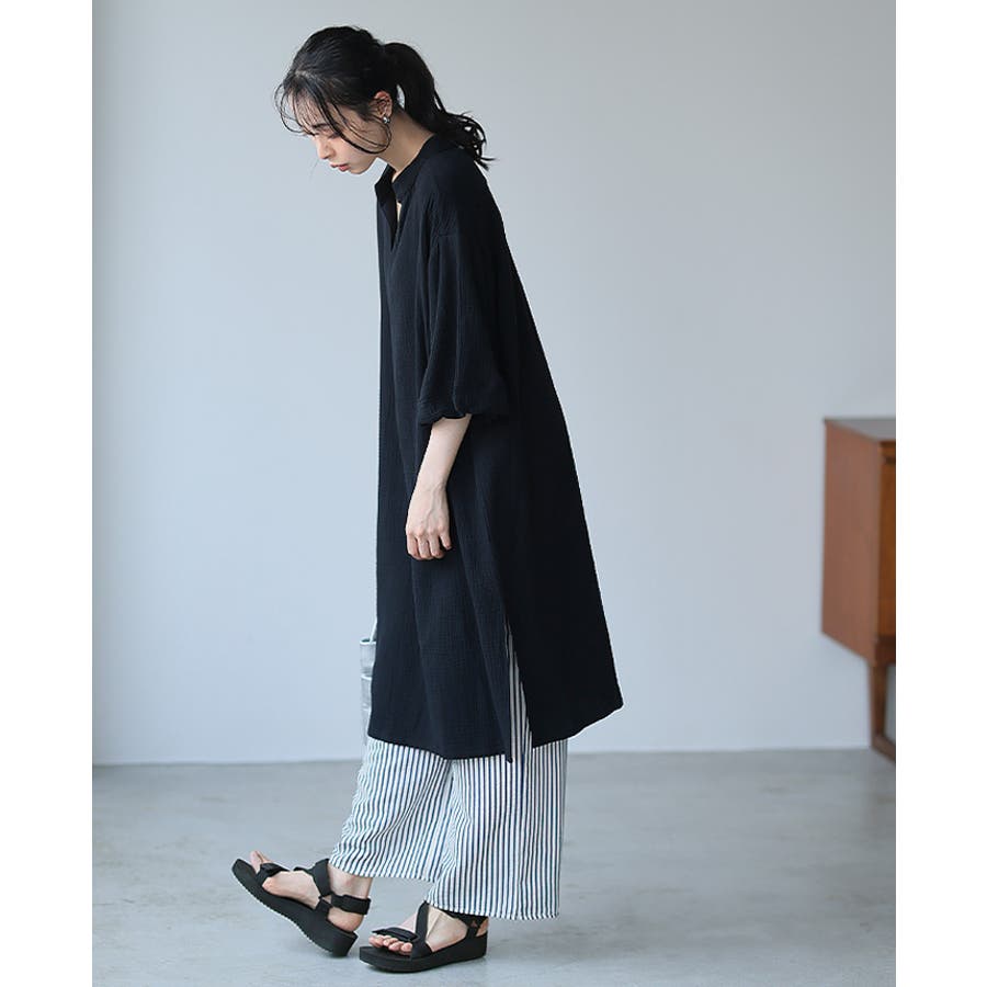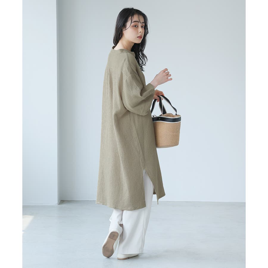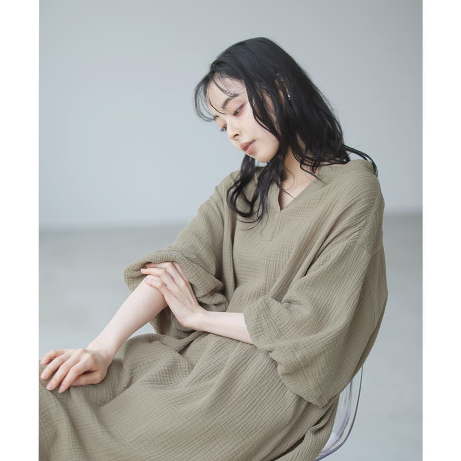 肌に優しい綿100%のダブルガーゼを使ったチュニック丈のワンピ。
