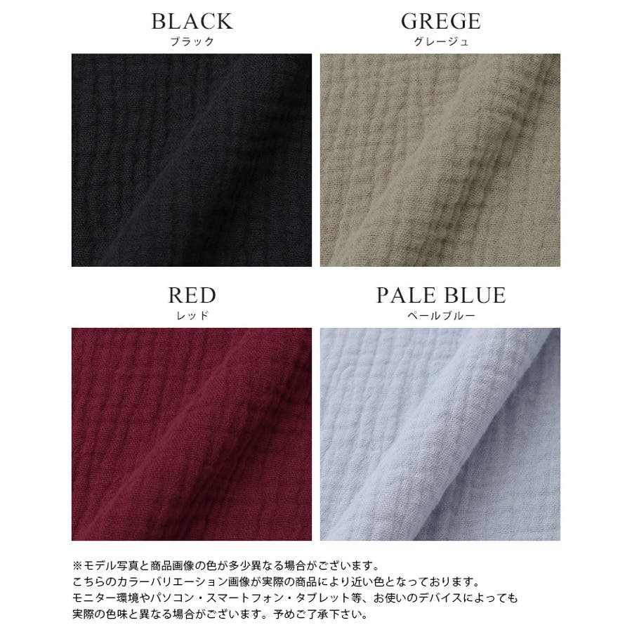 生地感:ふわっとした柔らかな手触りで、シワ感のあるダブルガーゼ生地
