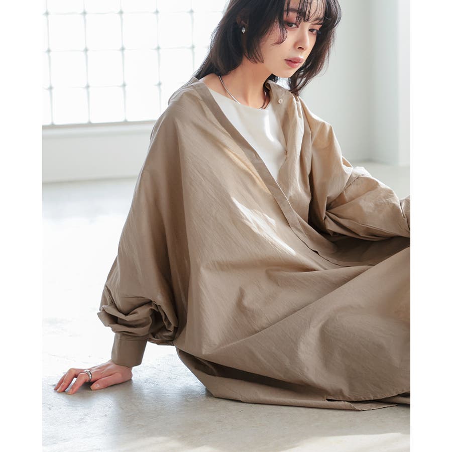 ゆったりとしたシルエットが魅力のシャツワンピース。