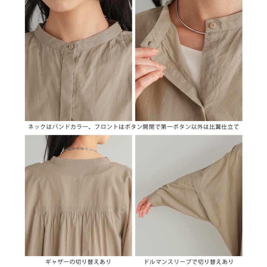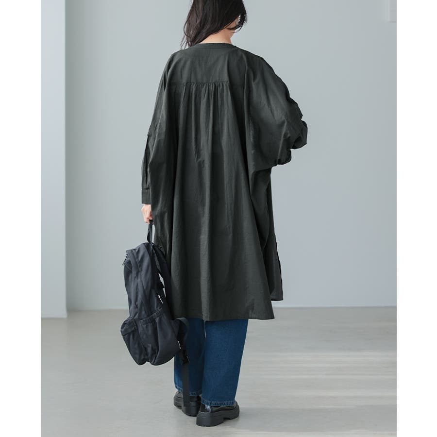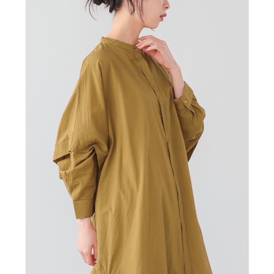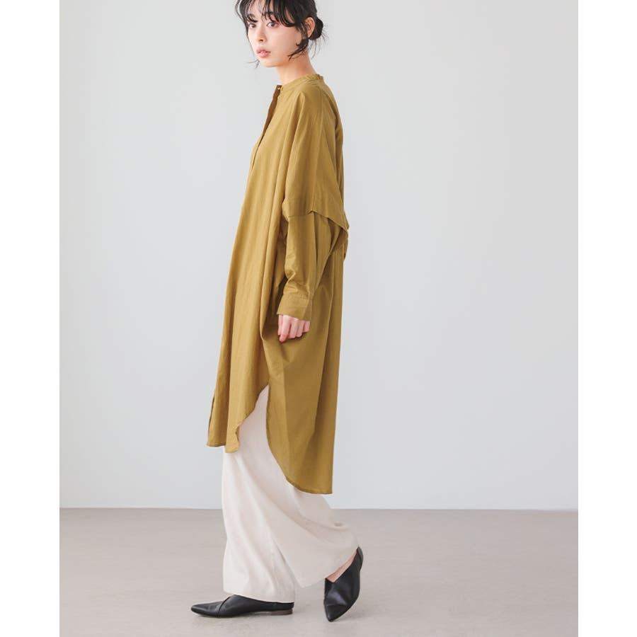 首元はバンドカラーと、サイドのスリットでスッキリ。