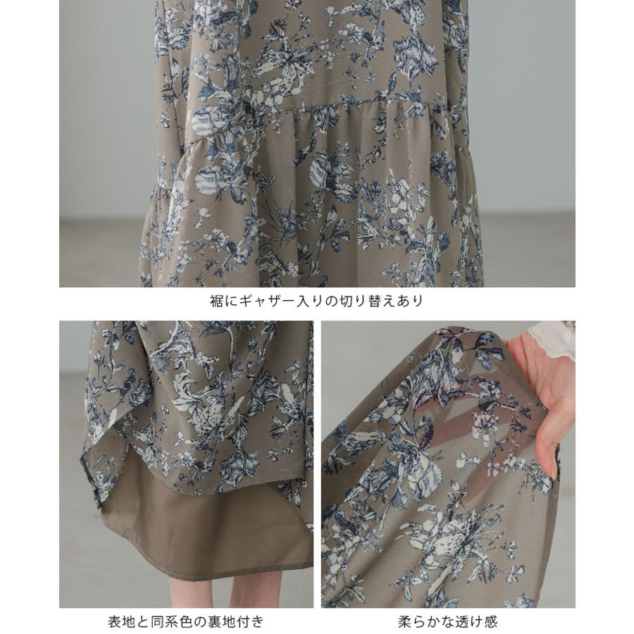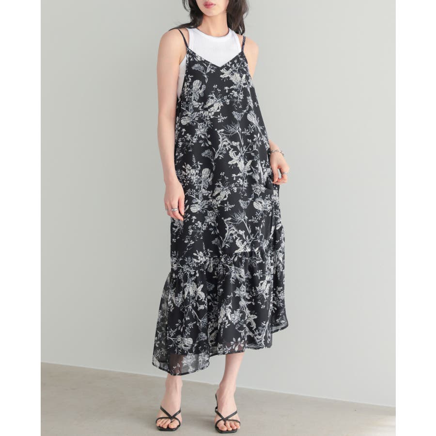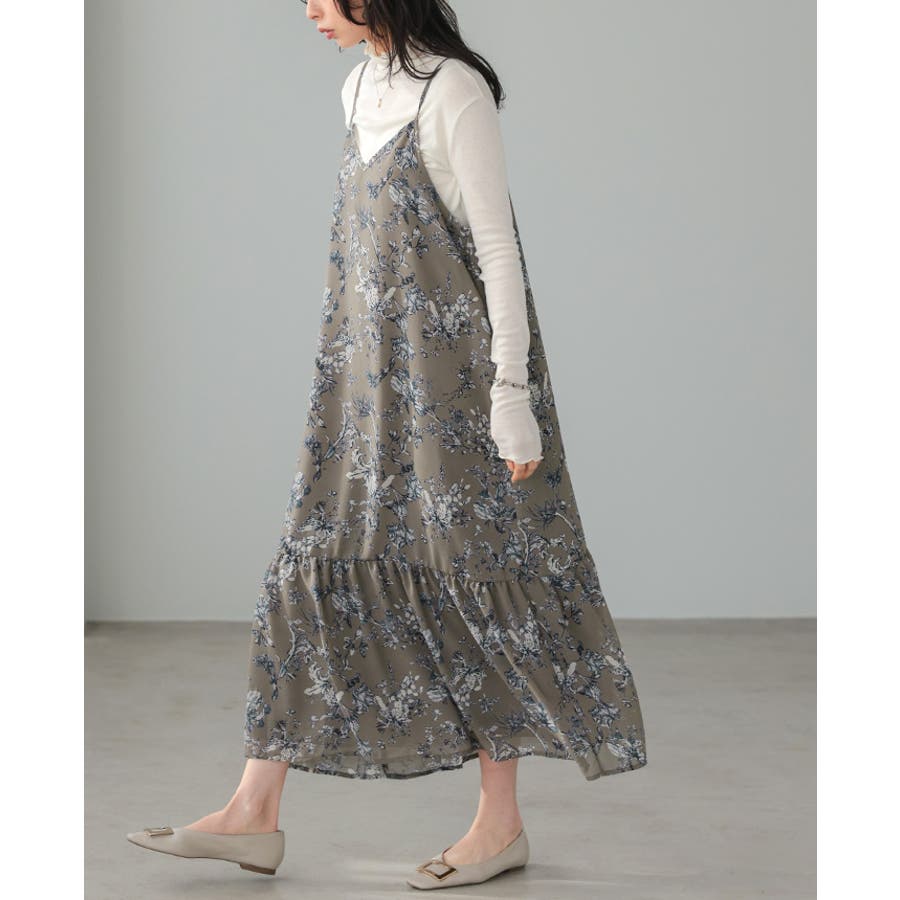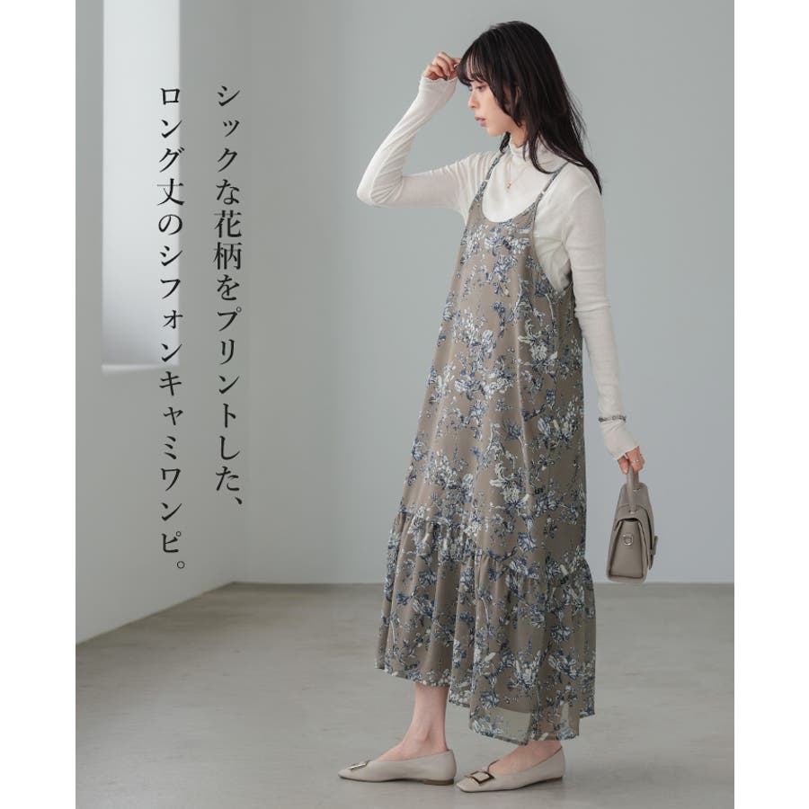 シックな大人プリント。花柄シフォンワンピース ワンピ キャミワンピ