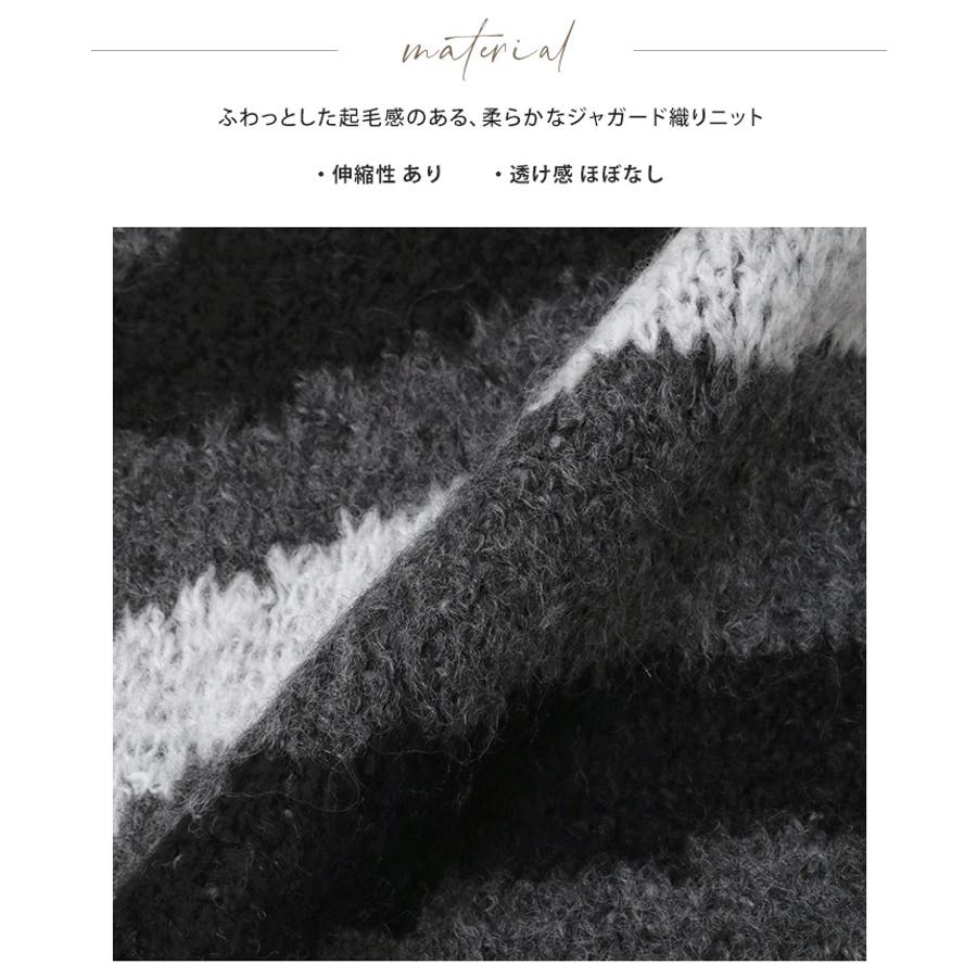 生地感:ふわっとした起毛感のある、柔らかなジャガード織りニット
