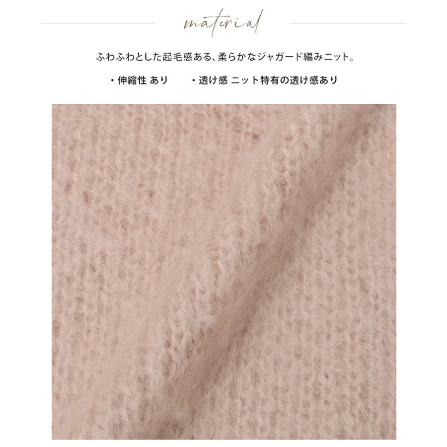 生地感:ふわふわとした起毛感ある、柔らかなジャガード編みニット