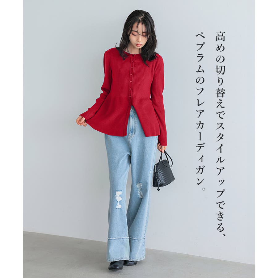 自慢のフレアシルエット。ペプラムフレアカーディガン カーデ カーディガン