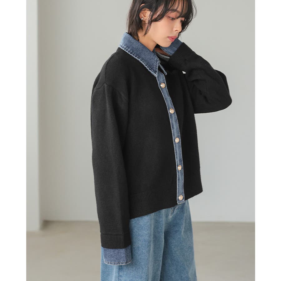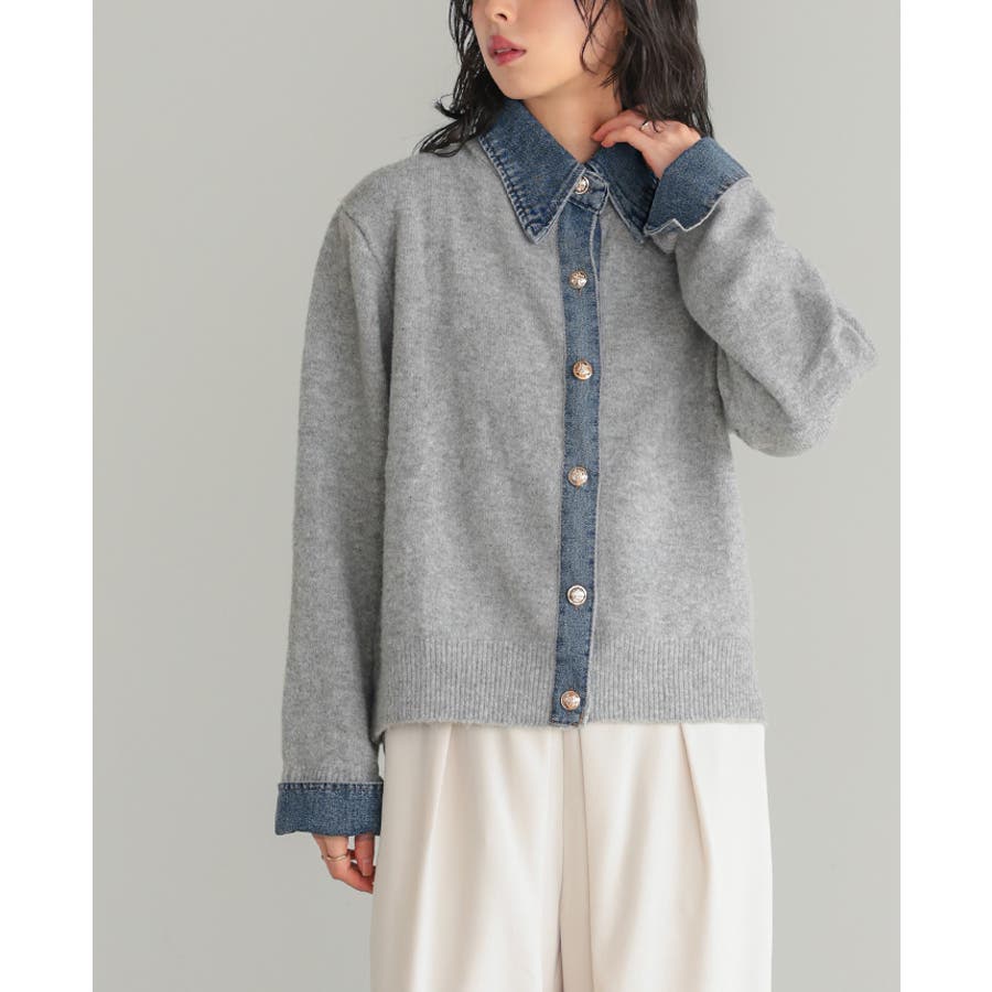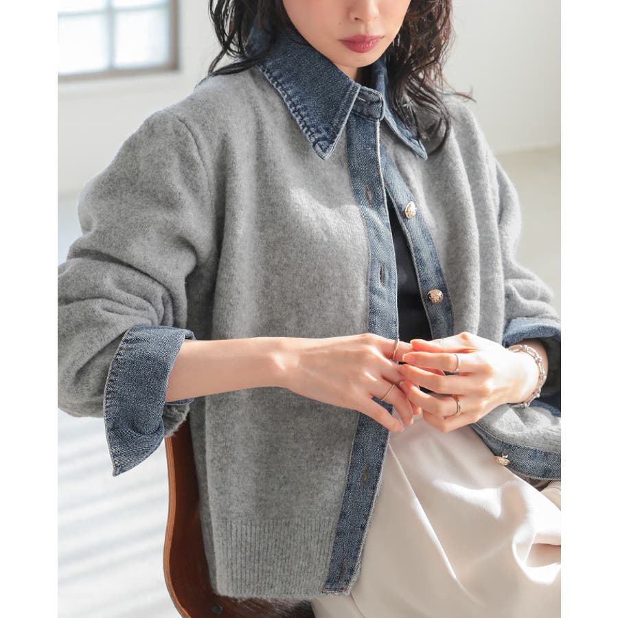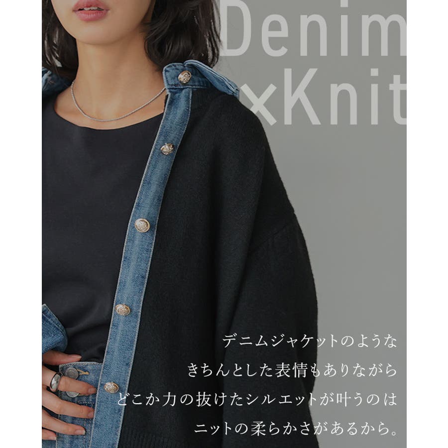 ラフなデニムと柔らかなニットを組み合わせたカーディガン。