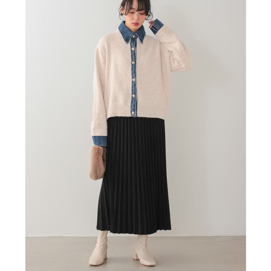 しっかりとしたデニムと、ふわっとした起毛感のあるニットが好バランス。