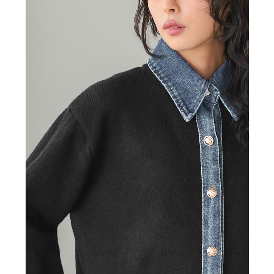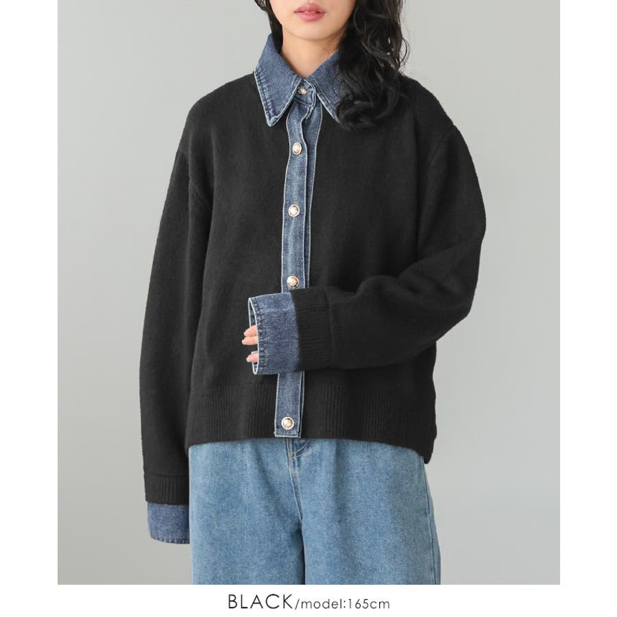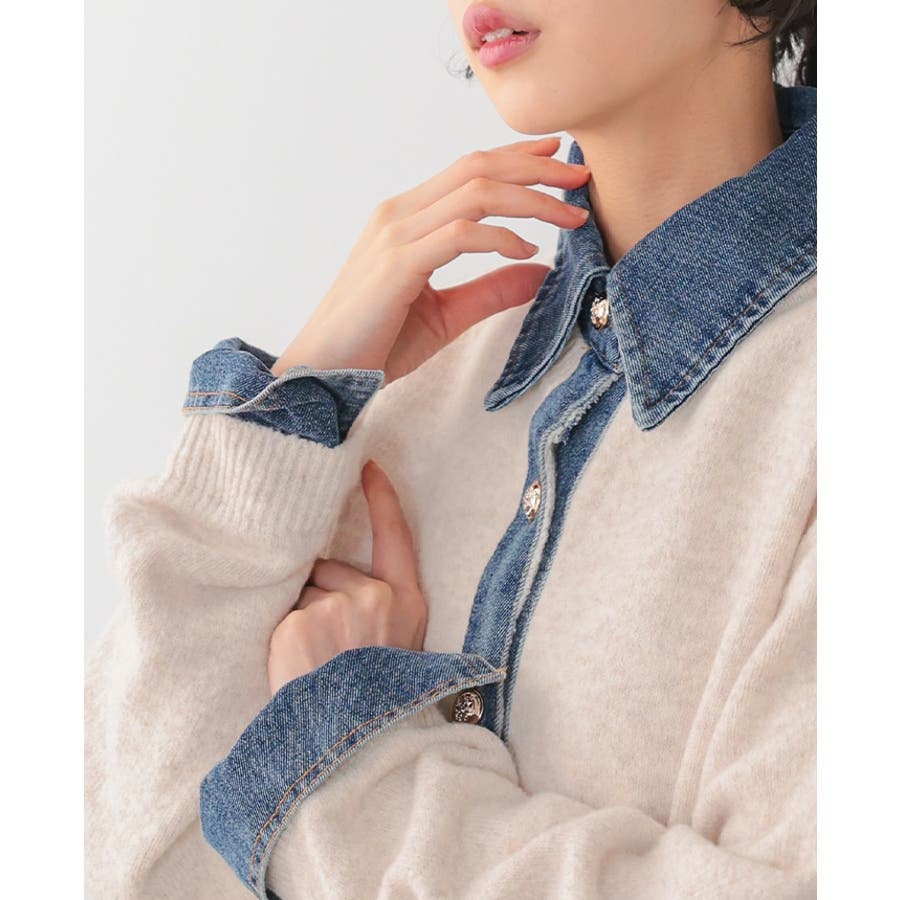 襟と袖口はデニムですが、他はニットなのでカジュアル過ぎないデザインです。