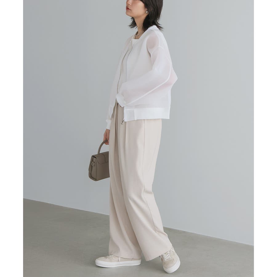 ややハリのある生地ですが、シアーなのでスッキリ見えます。