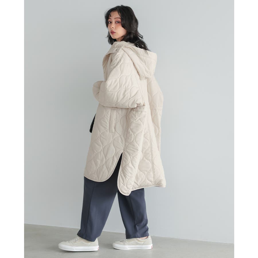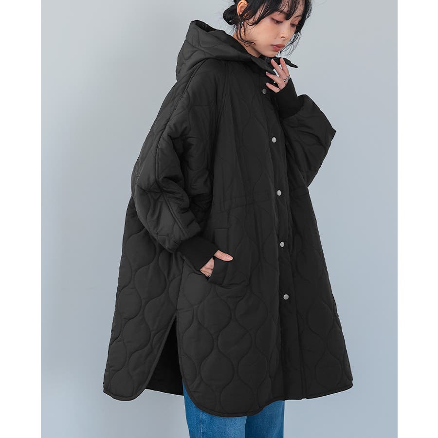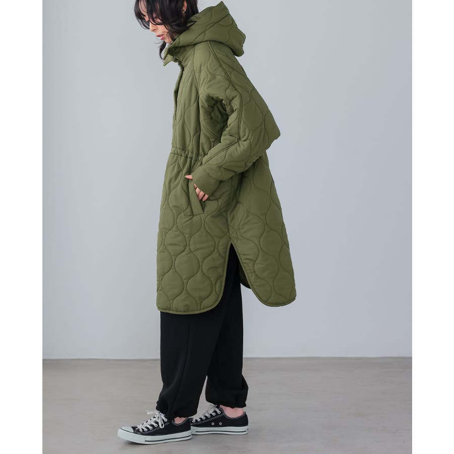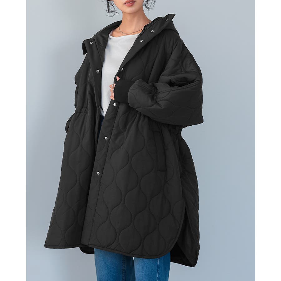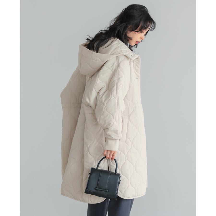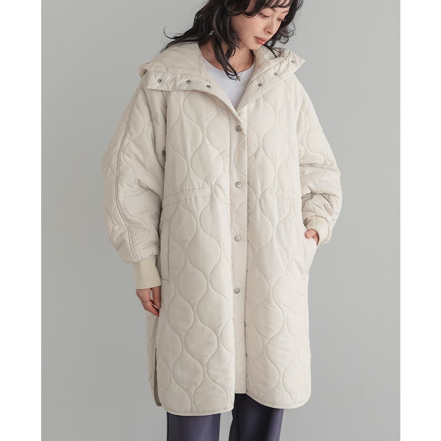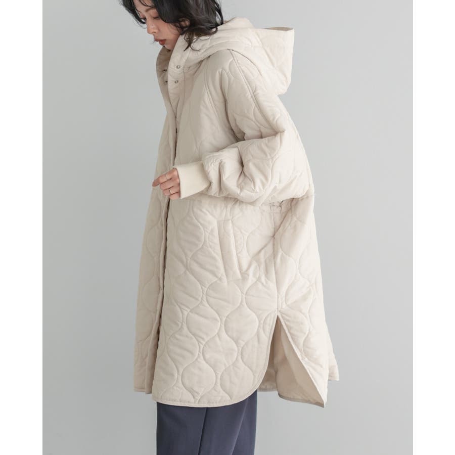 シルエットを変えれる万能アウター。キルトフード付きコート コート キルティング